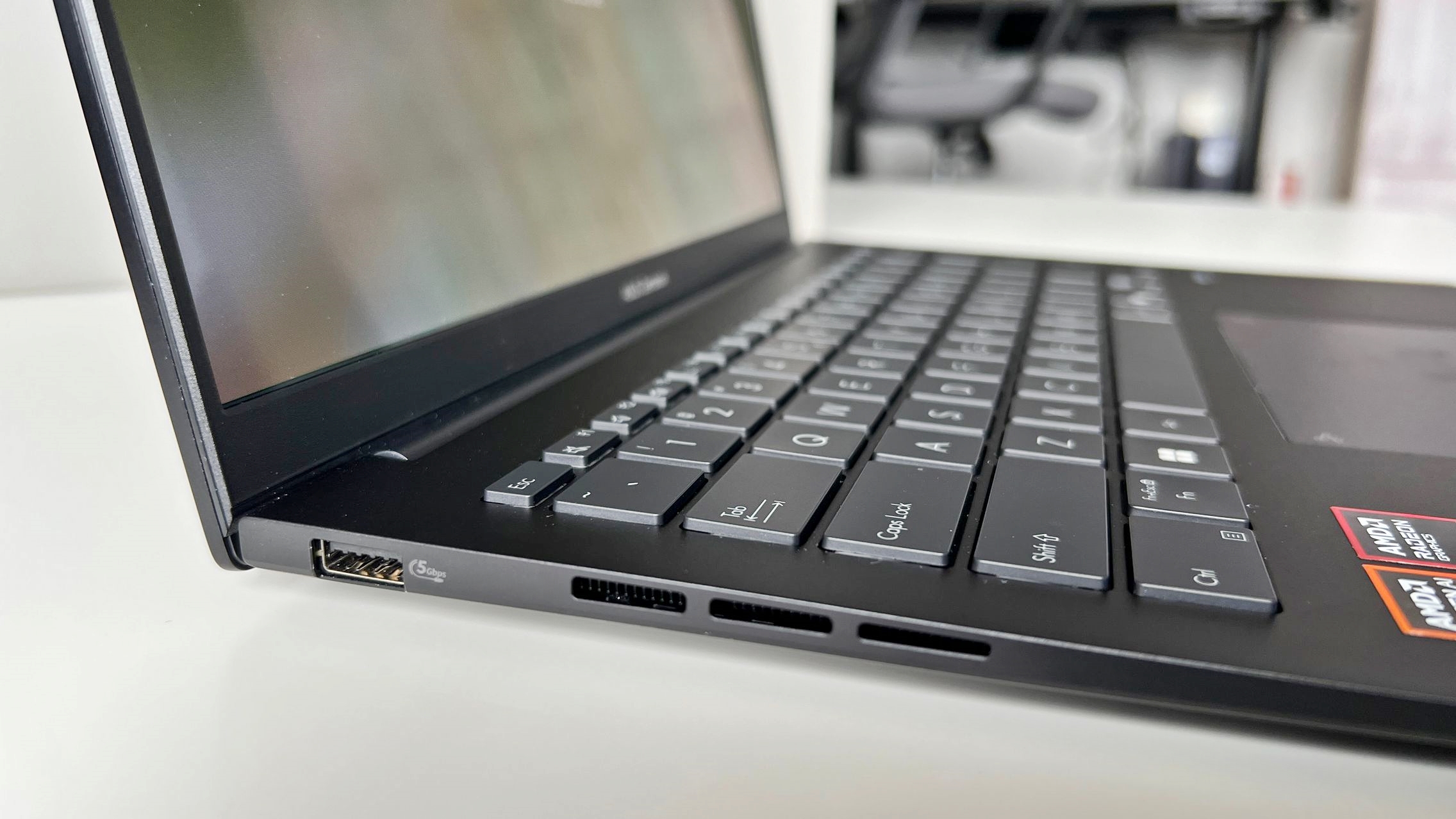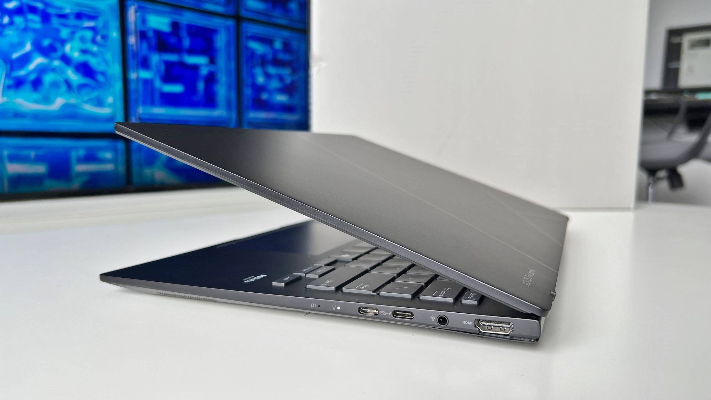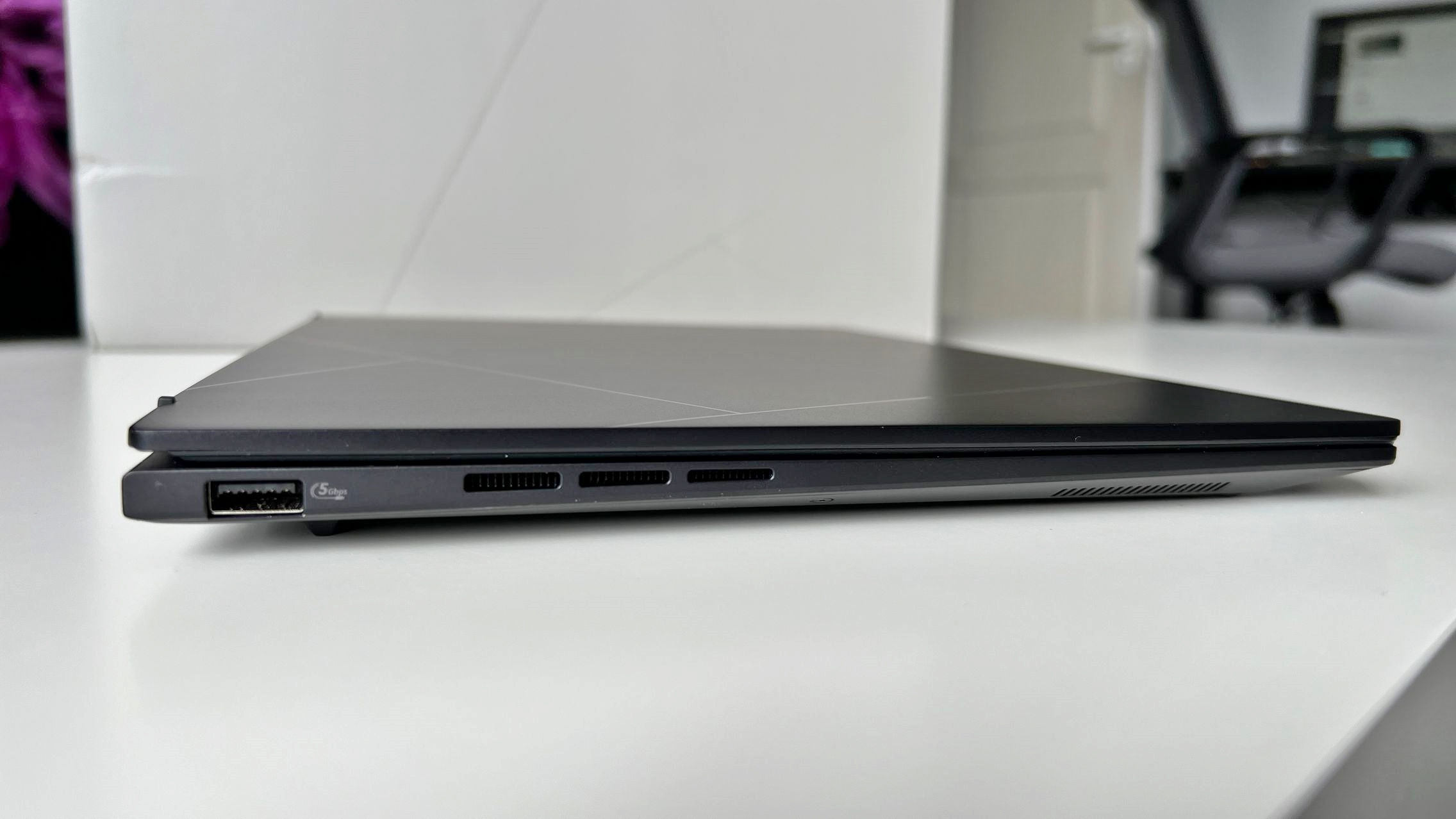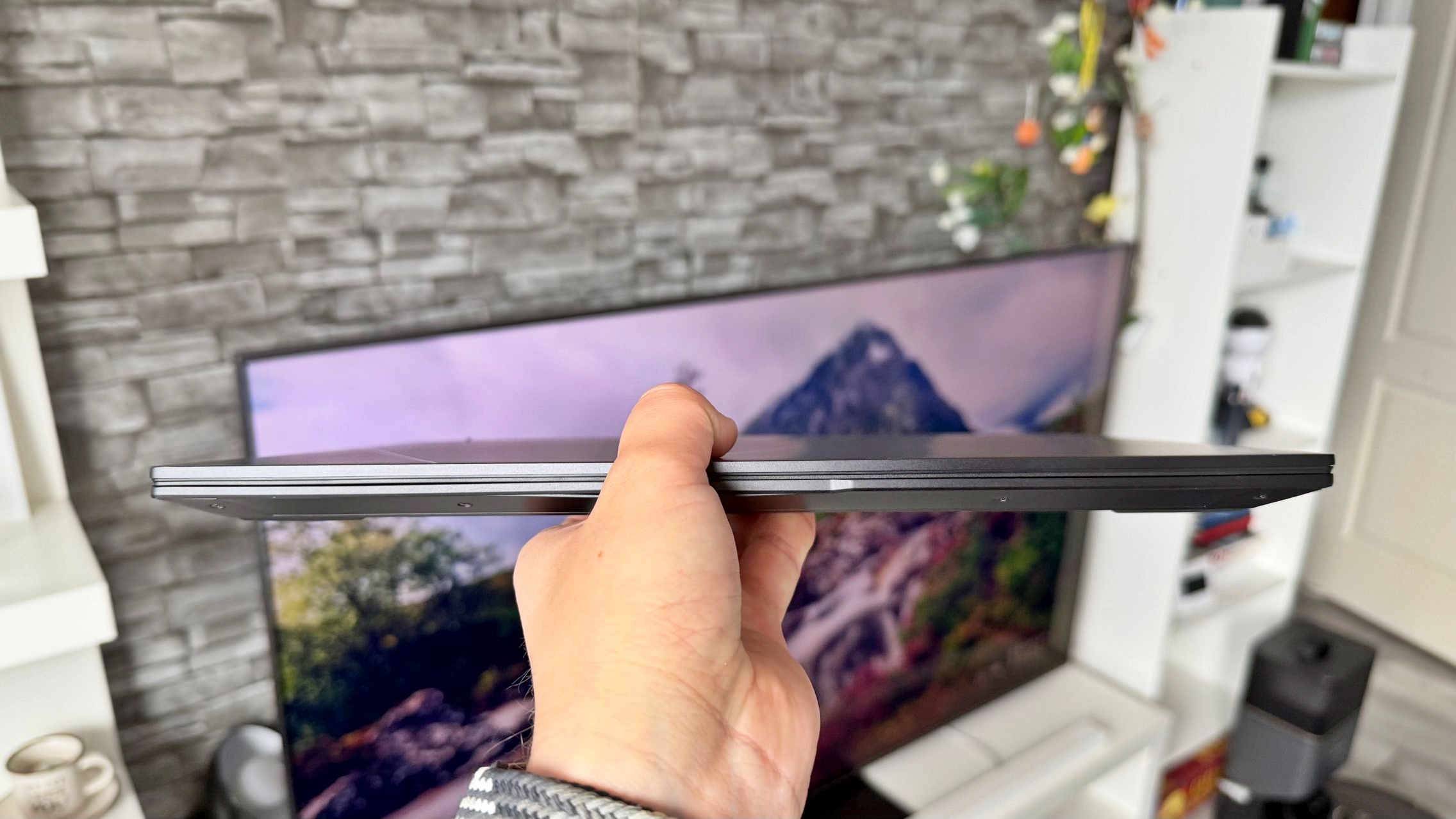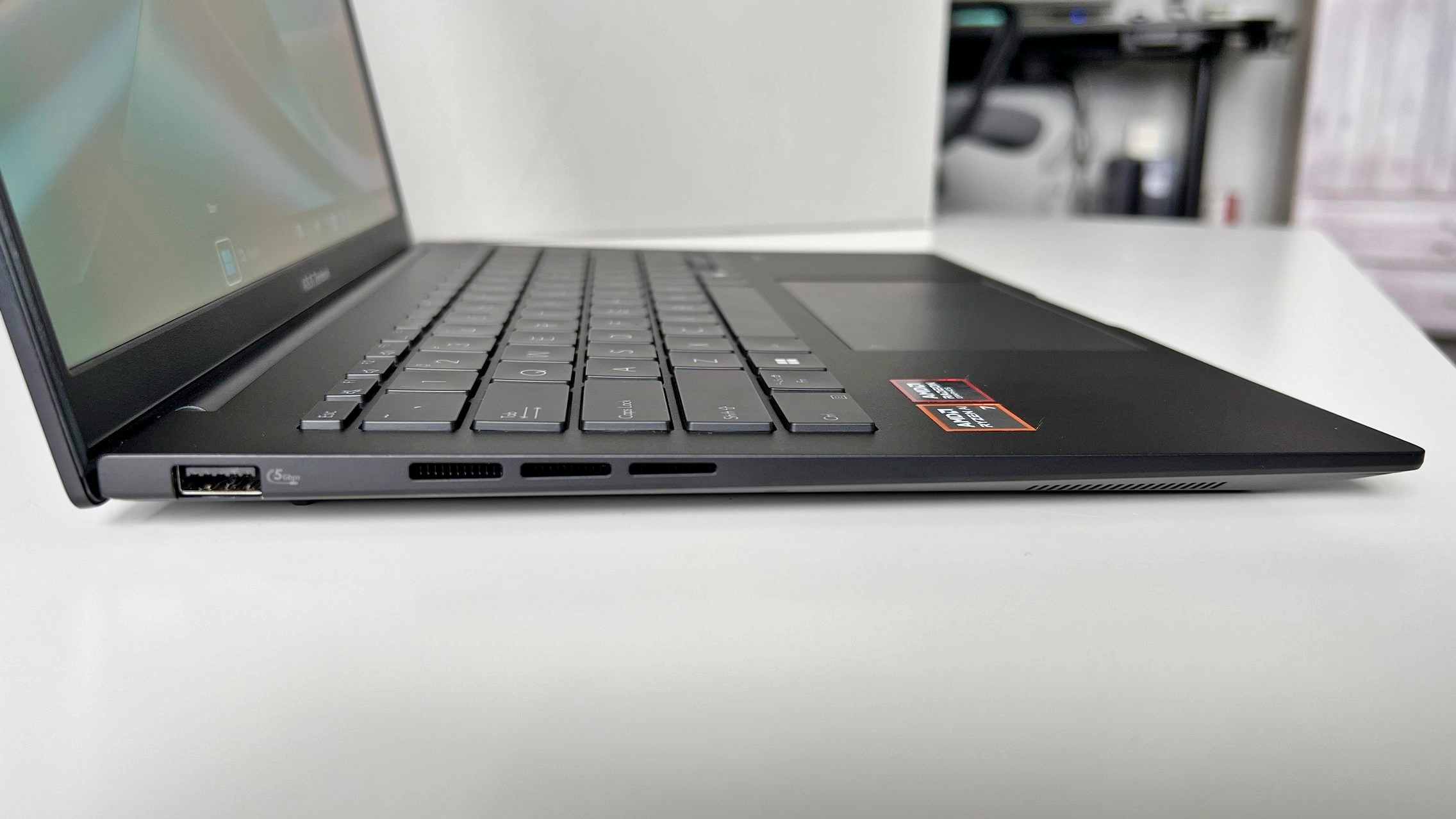 Este o experiență savuroasă, indiferent de conținutul consumat pe acest panou, plus că l-am găsit foarte luminos. ASUS spune că ajunge la până la 600 nits, dar eu nu am exagerat deloc cu slider-ul de luminozitate, setând-o pe nivel jos la interior. E semn că la exterior nu o să am deloc probleme atunci când voi lua cu mine un așa laptop. Apropo, panoul are raport corp-ecran de 87%, sunt muchii înguste și îmi surâde nivelul de imervisitate.
