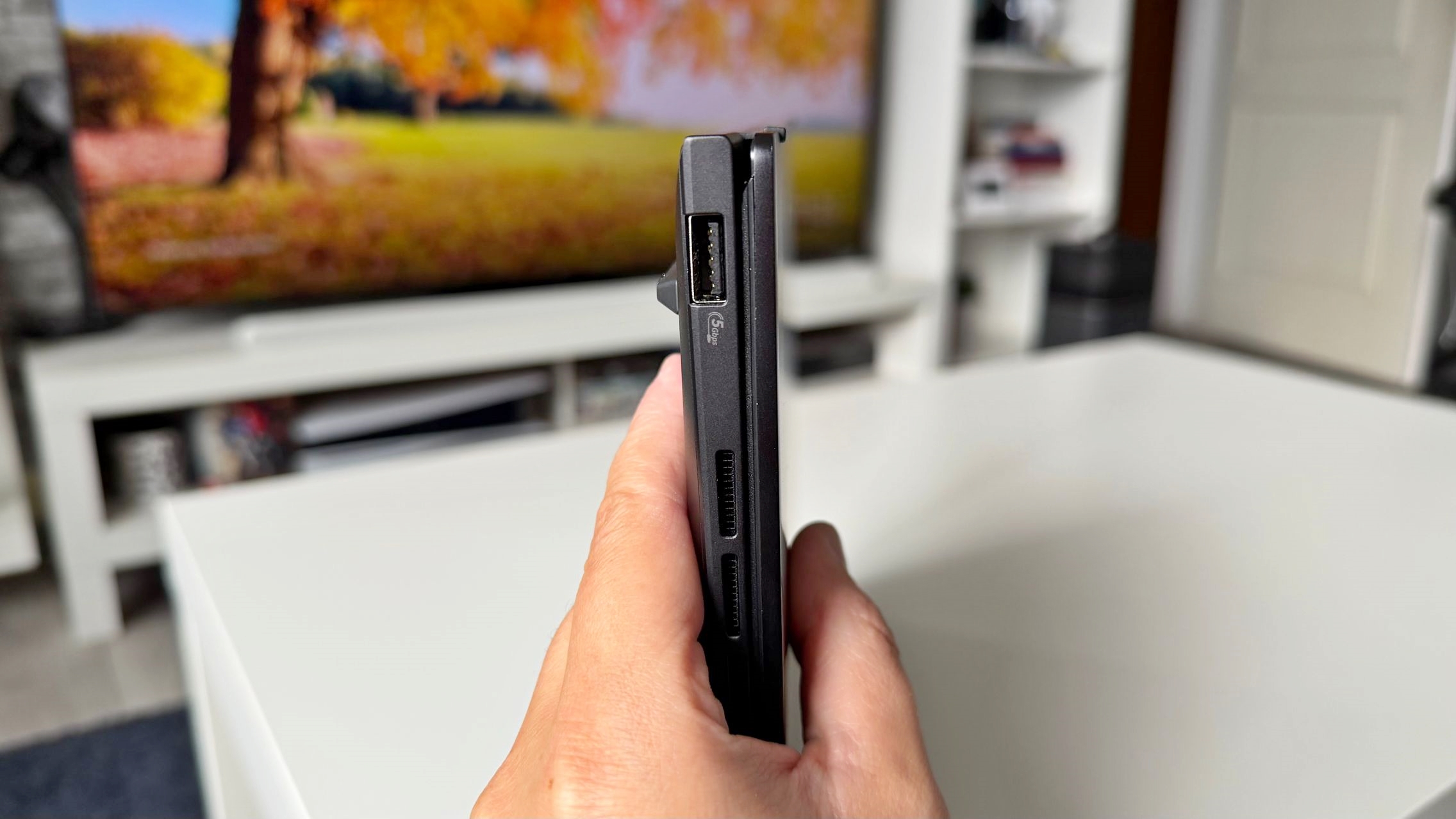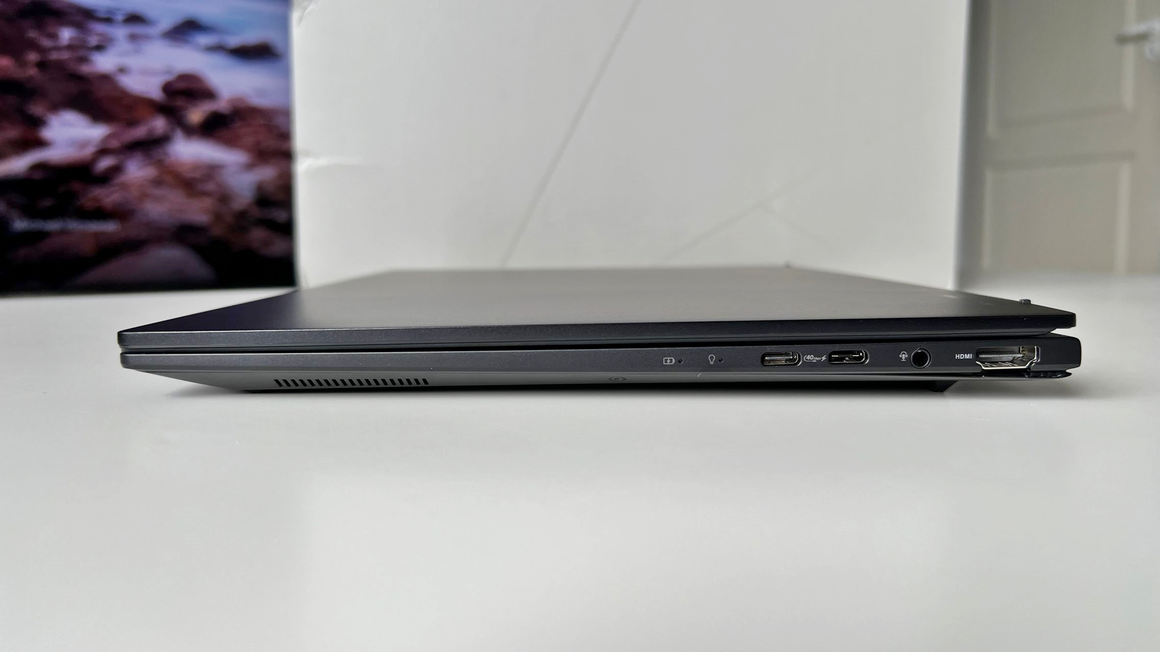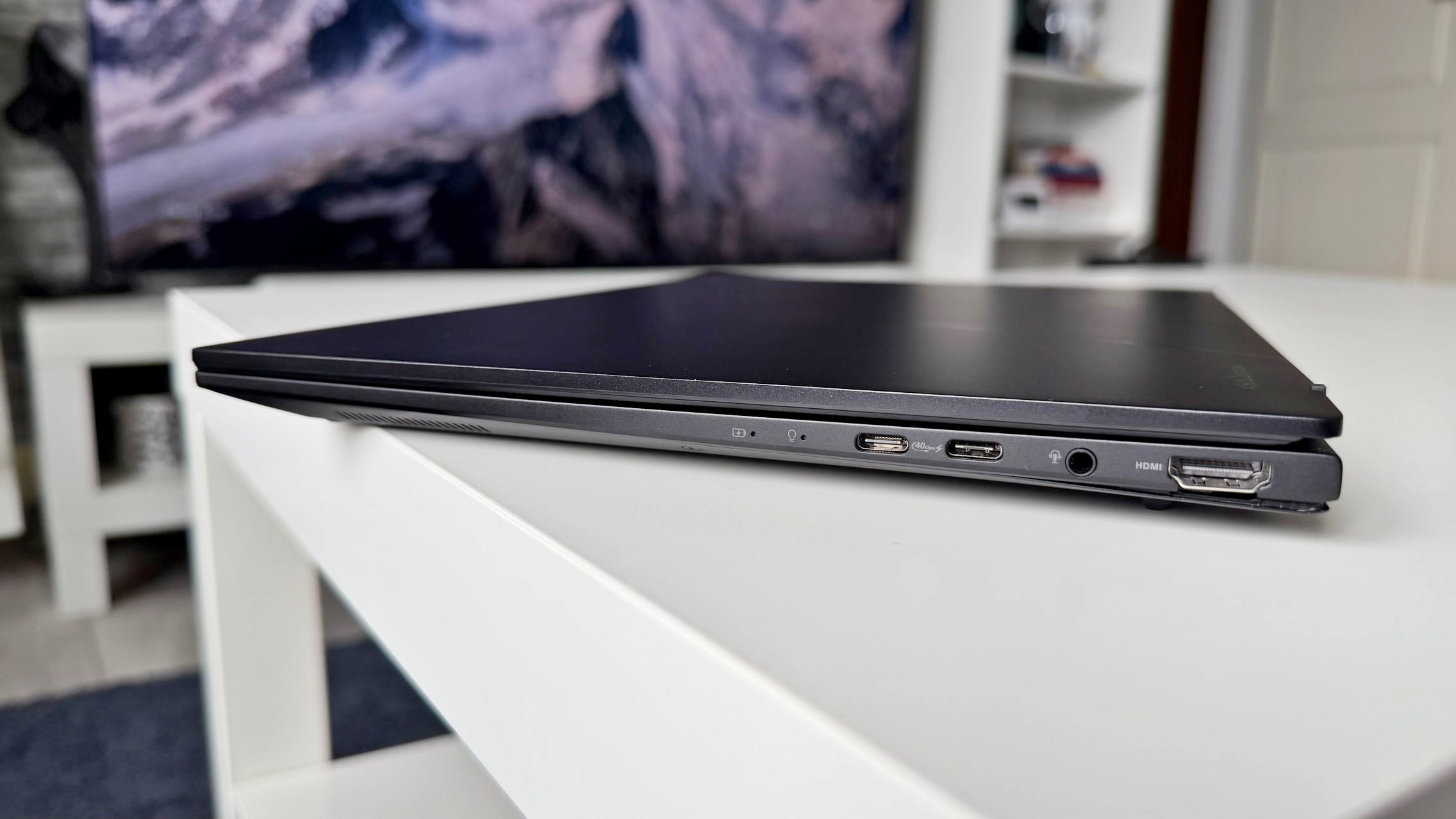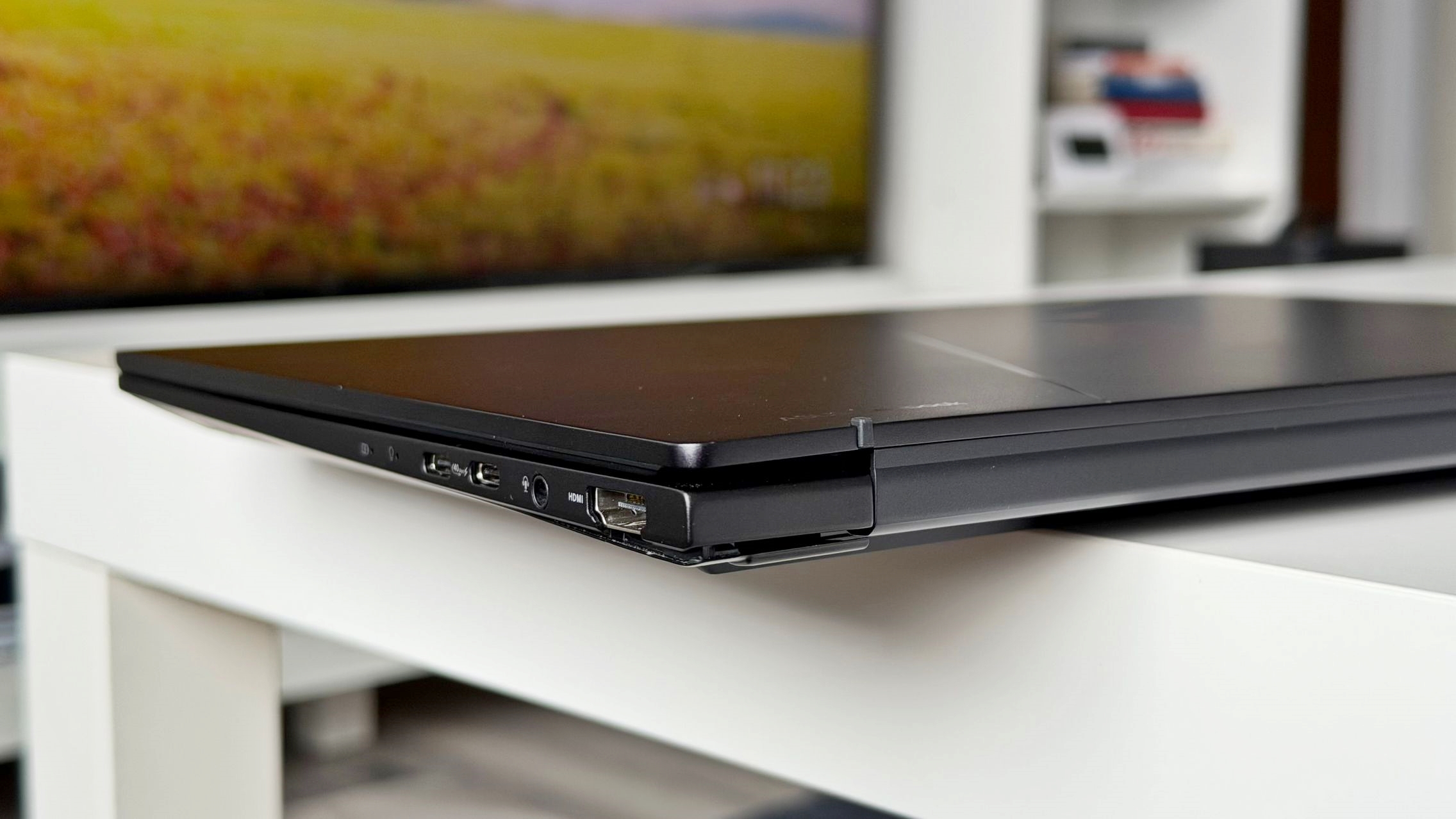 Cu mult typing la redactarea de articole m-am bucurat și de o tastatură silențioasă, care include și o zonă virtuală NumberPad chiar pe touchpad. Există chiar și shortcut pentru emoji-uri, iar legat de touchpad, acesta este cu finisaj anti-amprente. Am avut și toate porturile necesare la dispoziție, de la USB 3.2 Gen2 Type-C, USB-4 Type-C, audio combo jack, HDMI 2.1 și un USB 3.2 Gen1.
