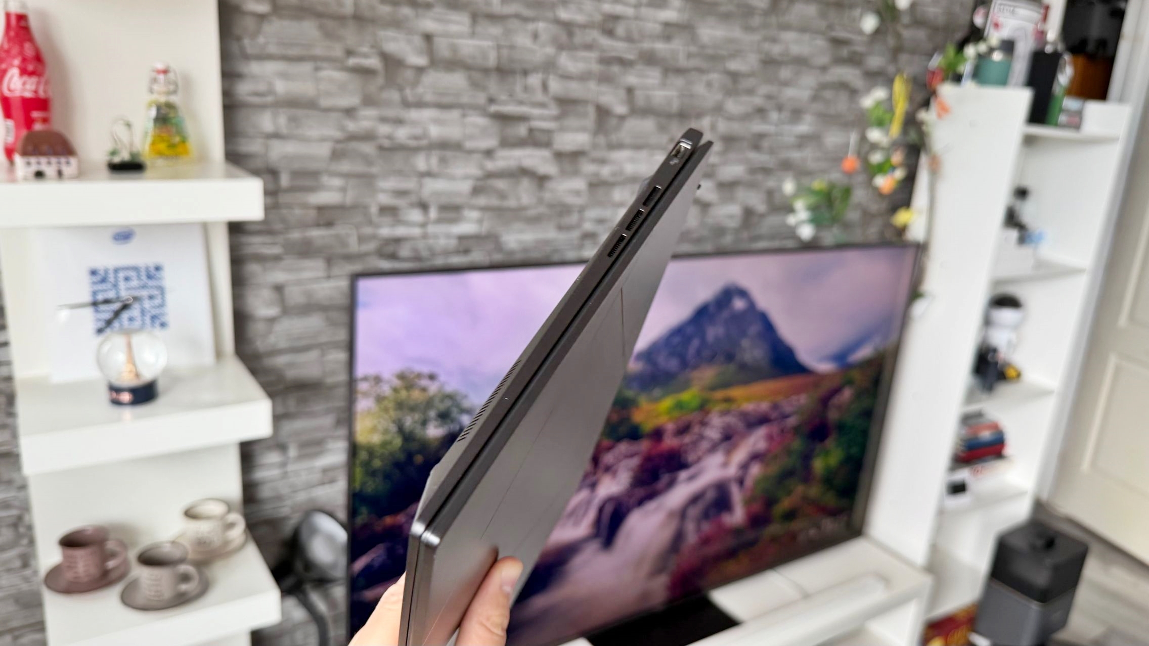 Imaginile sunt afișate în aspect 16:10, iar ceva interesant ce am descoperit este că laptop-ul aduce o sincronizare adaptivă pentru a ajusta automat rata de reîmprospătare. Dacă ești interesat de protecția ochilor, trebuie să știi că acest panou a fost certificat de SGS și TUV Rheinland pentru emisii reduse de lumină albastră. Ecranul a primit și certificarea VESA Display HDR True Black 600, astfel că îl văd util și pentru profesioniști.