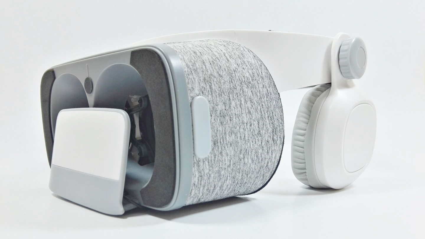 Tot dispozitivul cântărește 330 grame, iar ca dimensiuni exacte pentru cei interesați, acesta măsoară 268 x 224 x 117 mm. Are lentile reglabile pentru distanța inter-pupilară, o rotiță pentru a ajusta distanța (focalizarea), dar și un jack audio pentru a conecta telefonul vostru la căștile integrate aici. Se găsesc și perne confortabile (detașabile) pentru ca experiența de utilizare a produsului să se desfășoare într-un mod ideal, existând și un mecanism dedicat pentru a seta headset-ul pe cap în funcție de fiecare utilizator.