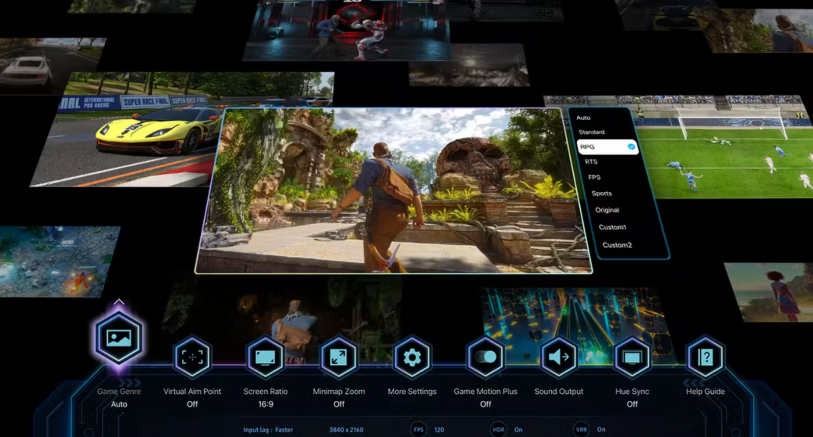 AI Auto Game Mode este un sistem inteligent care detectează automat tipul jocului și setează imaginea, sunetul, latența și framerate-ul optim. Se folosește de o bază de date AI cu pattern-uri de jocuri, recunoscând genul după: