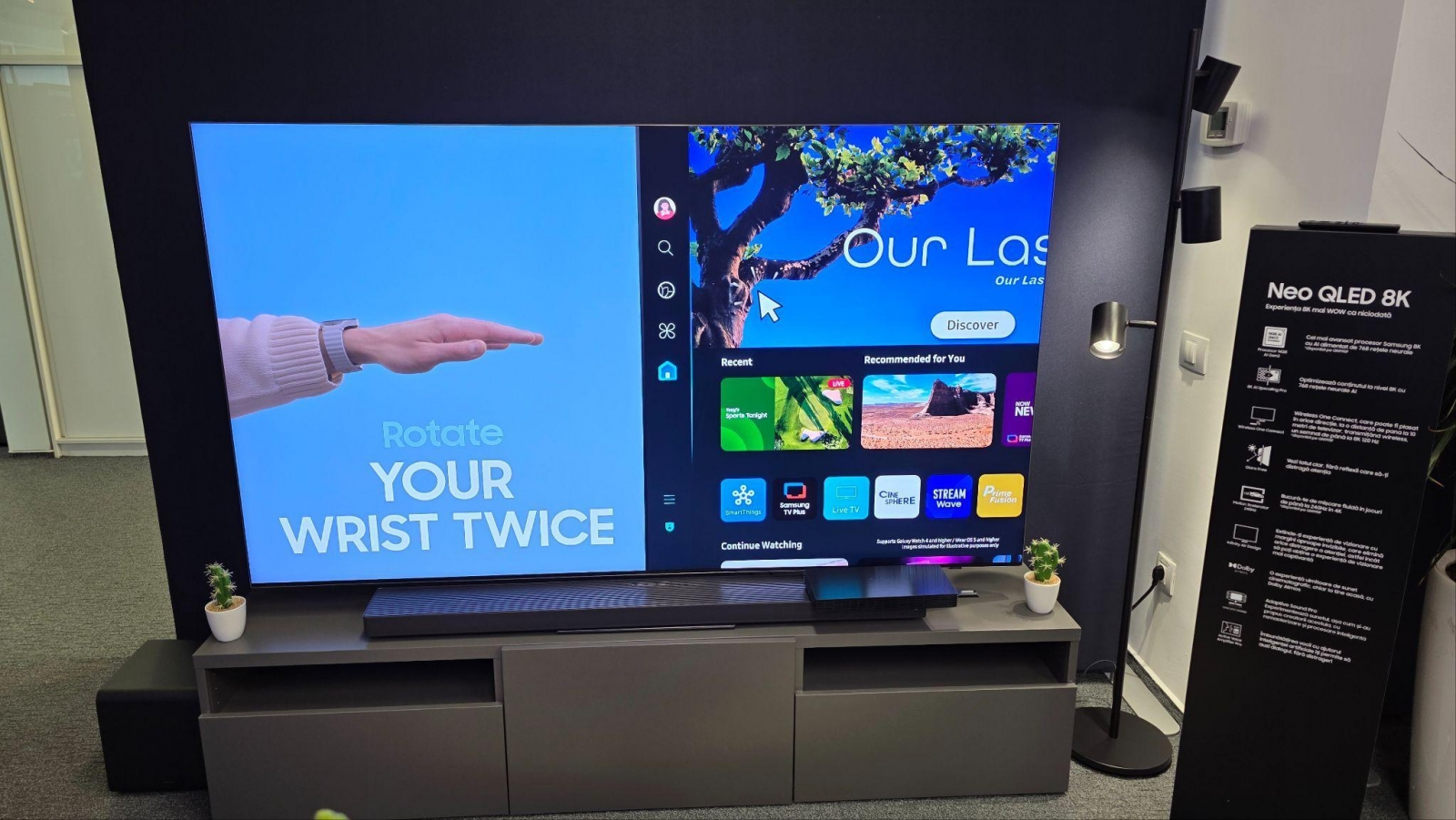 Concret? Dacă revezi un film vechi ca Matrix sau Gladiator, AI-ul umple golurile vizuale și adaugă detalii pentru o claritate apropiată de 4K. Dacă te uiți la Formula 1 sau la un film de acțiune, vocea comentatorului sau dialogurile actorilor sunt izolate automat de fundalul zgomotos. Iar dacă nu găsești telecomanda, ridici mâna și pui pauză sau schimbi canalul direct cu un gest – funcție integrată prin Galaxy Watch. Vision AI înseamnă mai puțină bătaie de cap și mai multă adaptare la ce faci tu, în fiecare moment.