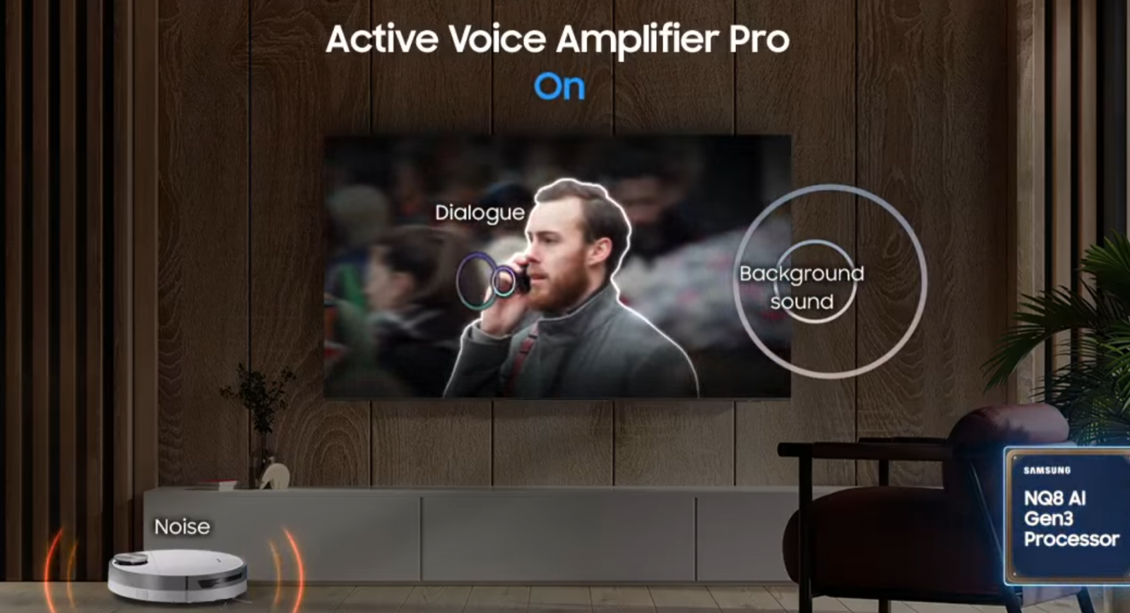 Te uiți la F1 pe noul tau TV OLED Samsung S95, iar bolizii urlă pe circuitul Monza. Sau la un film cu Vin Diesel și nu auzi replicile de la atâtea explozii. Cu Active Voice Amplifier Pro, televizorul separă inteligent vocile de fundalul sonor și le scoate în față.