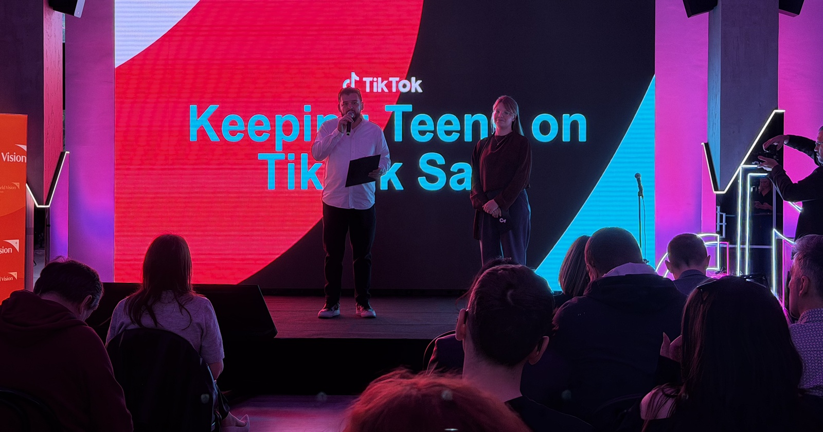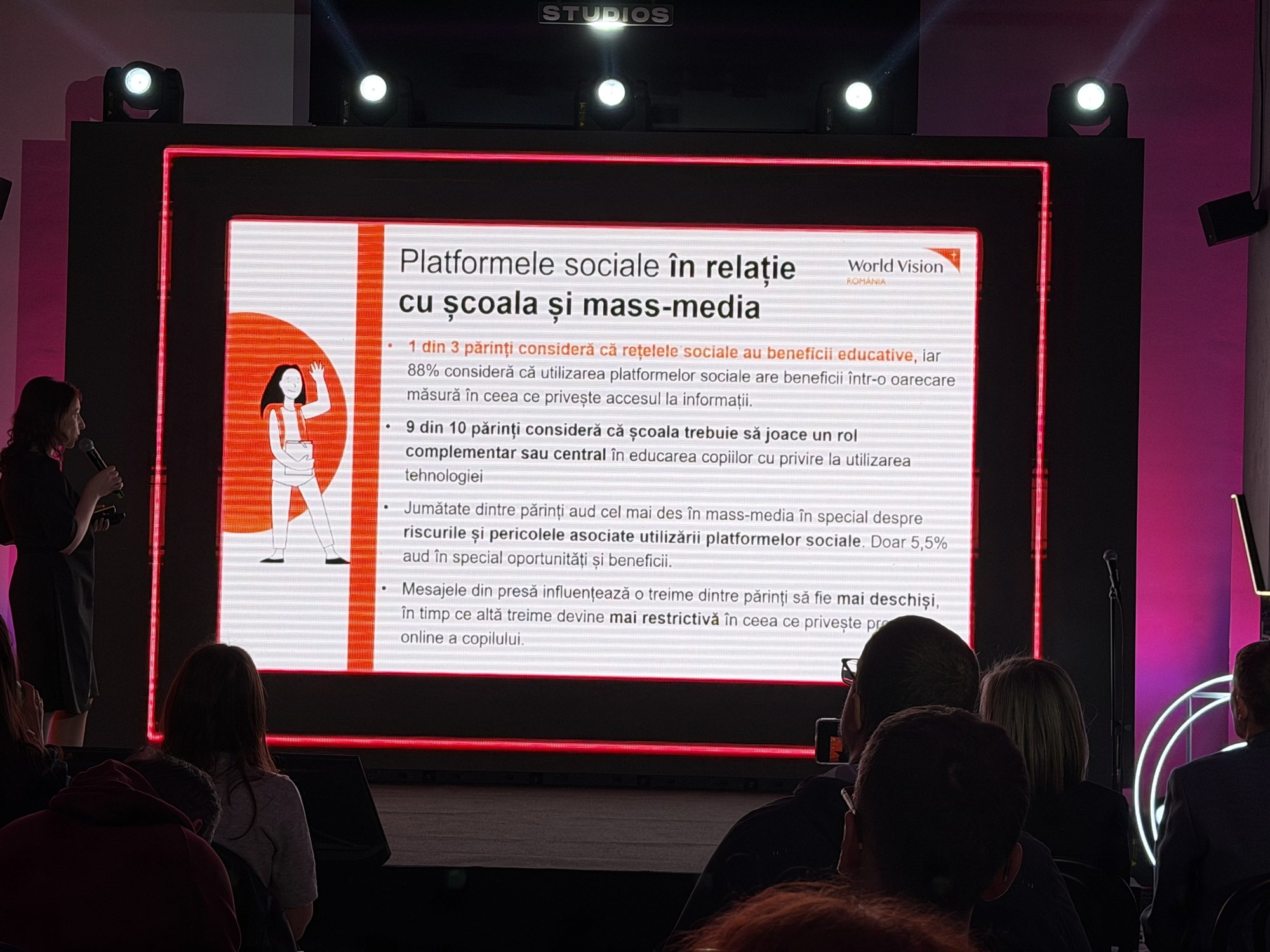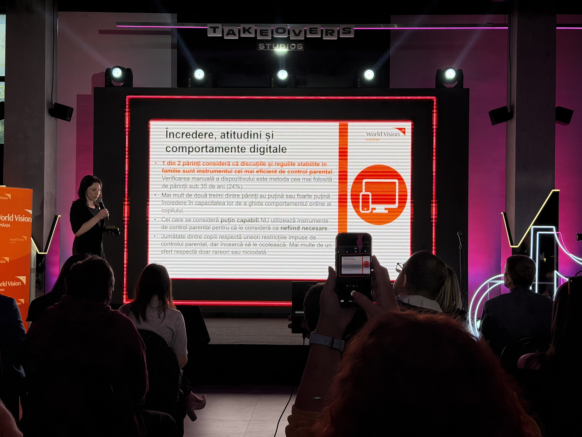 La discuţii au participat Lucian Mândruţă, ca moderator, Ministrul Educaţiei, Daniel David, dar şi Mihaela Nabar, director executiv World Vision România. Ei bine aflaţi că World Vision România şi TikTok şi-au unit forţele pentru a încuraja familiile să discute despre experienţa online şi să seteze împreună limite sănătoase.