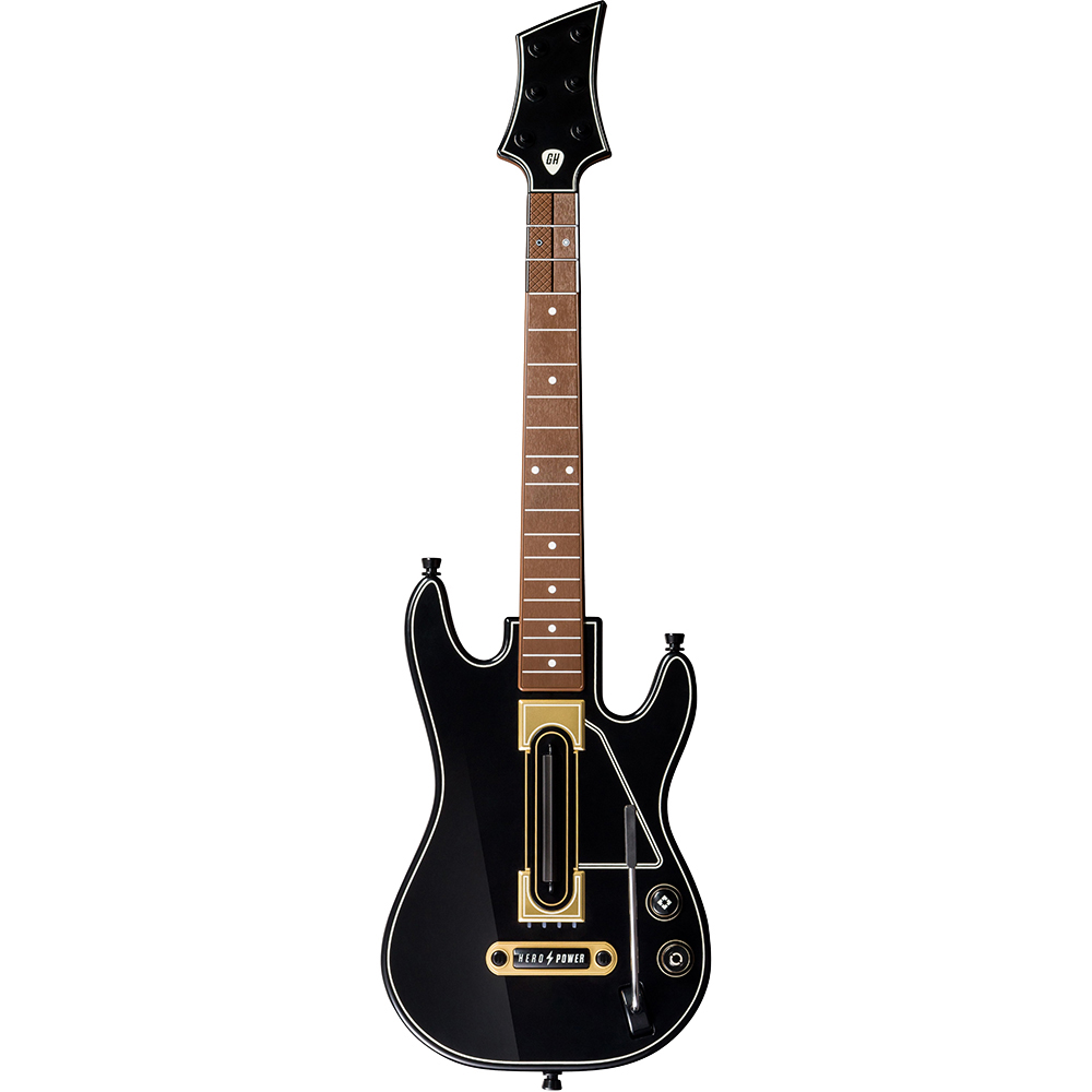 Are 6 butoane pentru note şi acorduri pe grif, o pedală pentru efecte şi două butoane pentru meniuri, dar şi unul special pentru puteri speciale ale personajelor rock. Rock on!