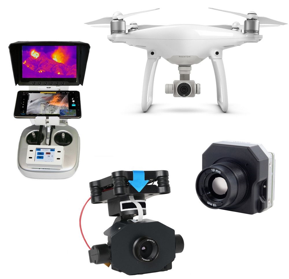 4. Pachet cameră infraroşu FLIR TAU2_R 640 radiometric 4K + drona DJI Phantom 4 asamblată + camera 4K) + cardan/gimbal 3-in-1 multifuncţional