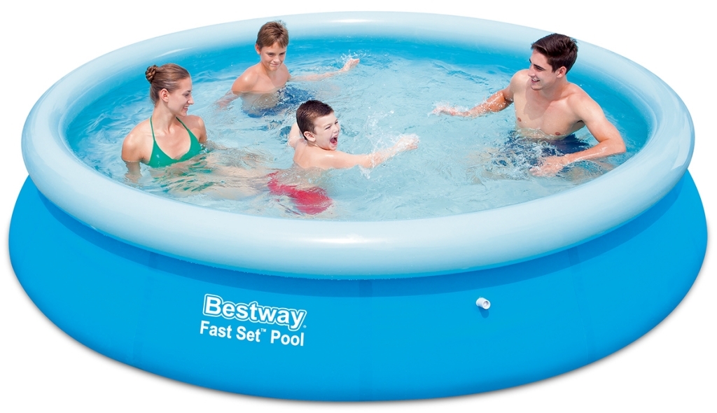 Cine vrea o piscină gonflabilă, tocmai a găsit soluţia ideală la TomTop.com. Costă 74 de dolari doar şi e mult mai comodă şi ieftină decât să staţi să săpaţi un spaţiu special în curte şi să îl umpleţi cu apă. Spaţiul acestei piscine e generos: 3.66 metri pe 76 cm şi încape lejer o familie de 4 membri la interior. Capacitatea este de 5377 litri şi marginile sunt ranforsate cu o meşă specială din poliester.