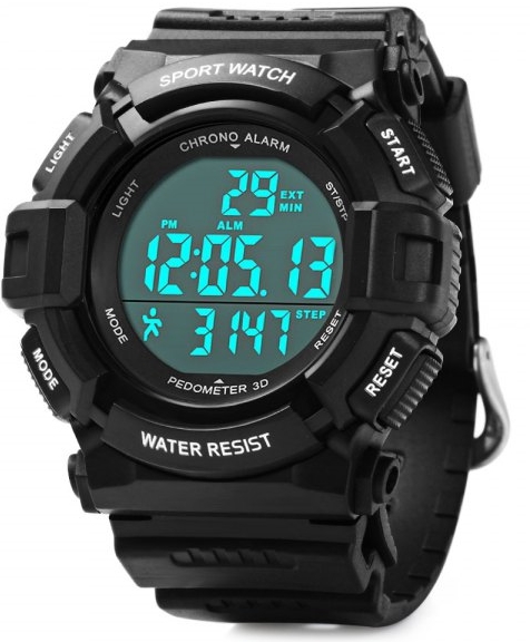 Cine vrea un ceas masiv şi butucănos gen Casio, o clonă reuşita practic, găseşte la GearBest.com acest model, care vine cu afişaj pentru zi, săptămână, calendar, cronometru şi iluminare EL. Costă 13 dolari la retailerul chinez şi este menit pentru cei cu o viaţă sportivă şi activă. Vine cu pedometru, cronometru, alarmă, rezistă la o adâncime de până la 50 de metri în apă.