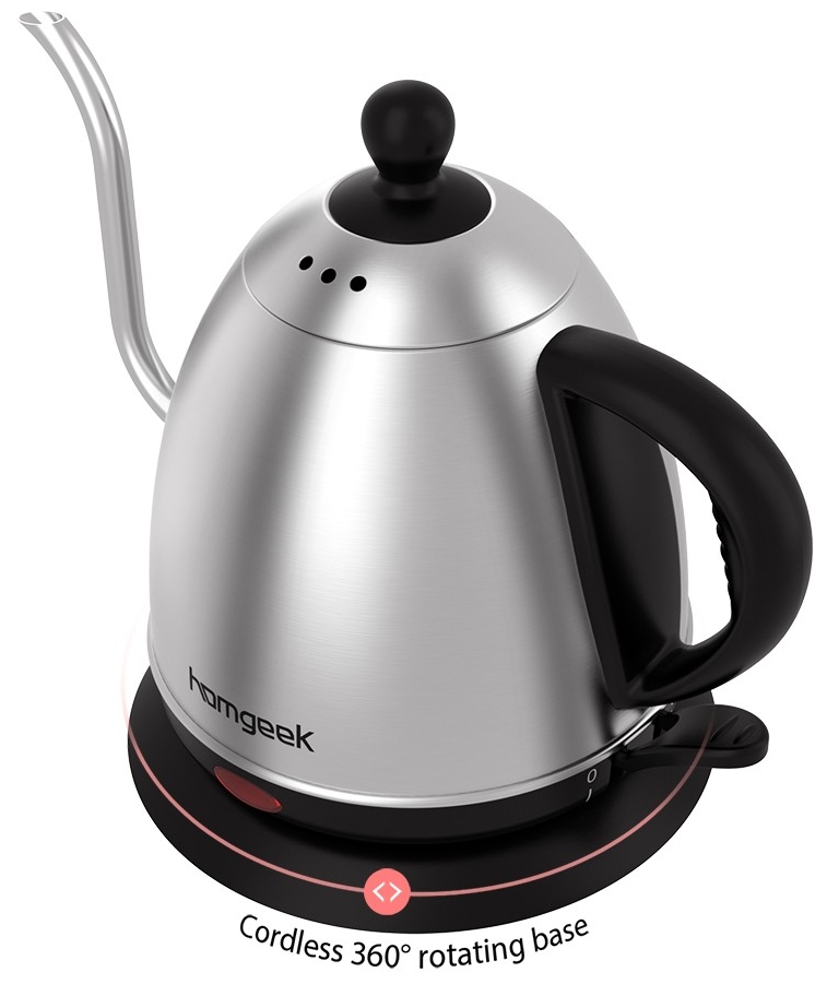 Cine vrea un ceainic clasic, cu design ca pe vremuri, dar tehnologie modernă (deci electric) va aprecia acest model Homgeek. Îl vinde TomTop.com la suma de 35.49 dolari şi vine cu termometru, încălzire rapidă, capacitate de 1 litru şi corp din oţel inoxidabil. Are o bază rotativă la 360 de grade şi strat aderent.