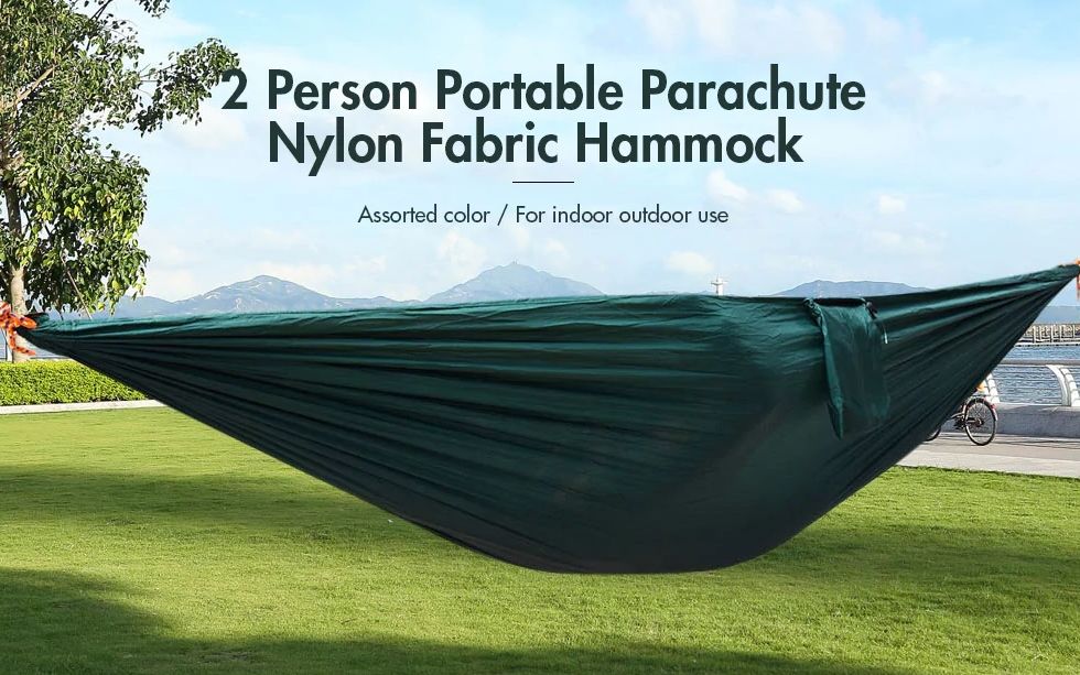 Cu gândul la primăvară şi vară am găsit acest hamac interesant de două persoane la GearBest.com. Costă doar 8.14 dolari şi este un hamac în stil "paraşută", fabricat din nylon. Nu are extra fire incomode, e uşor de agăţat şi rezistent. E uşor de împachetat şi transportat şi suportă până la 300 de kilgrame greutate. Are un material moale şi plăcut la atingere.