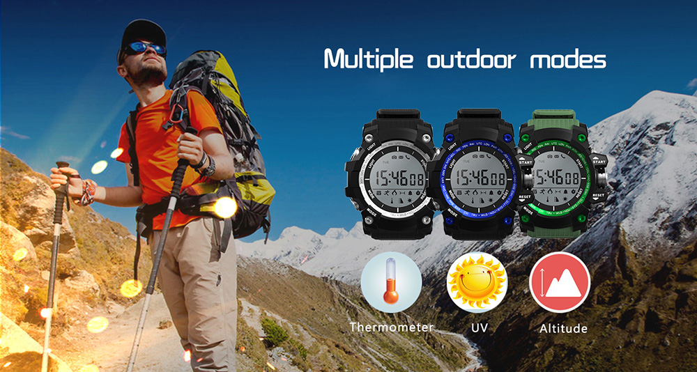 Am testat la Mobilissimo.ro vreo două ceasuri ale brandului NO. 1, dar acest F2 e ceva nou. Pe undeva înrudit cu un Casio G Shock, ceasul costă 21.80 dolari la Everbuying.com şi este excelent pentru montagnarzi. Are termometru, senzor UV, funcţie de telecomandă pentru a face poze cu telefonul şi evident are corpul rezistent la apă, praf şi intemperii. Are altimetru, cronometru, calendar, o baterie cu 2 ani de autnomomie şi afişează şi apelurile nepreluate şi notificări de la Whatsapp, Facebook, Twitter şi altele de gen. Vine și cu măsurare de calorii și pași.