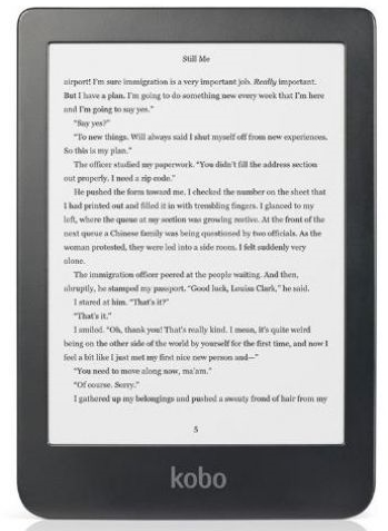 Vine cu ecran de 6 inch Carta tactil, 8 GB stocare şi suport WiFi. Are lumină de fundal, conector microUSB şi cântăreşte doar 166 de grame. Ca să aveţi mai mare încredere în Kobo, firma sa mamă, Rakuten are logo-ul pe pieptul FC Barcelona.