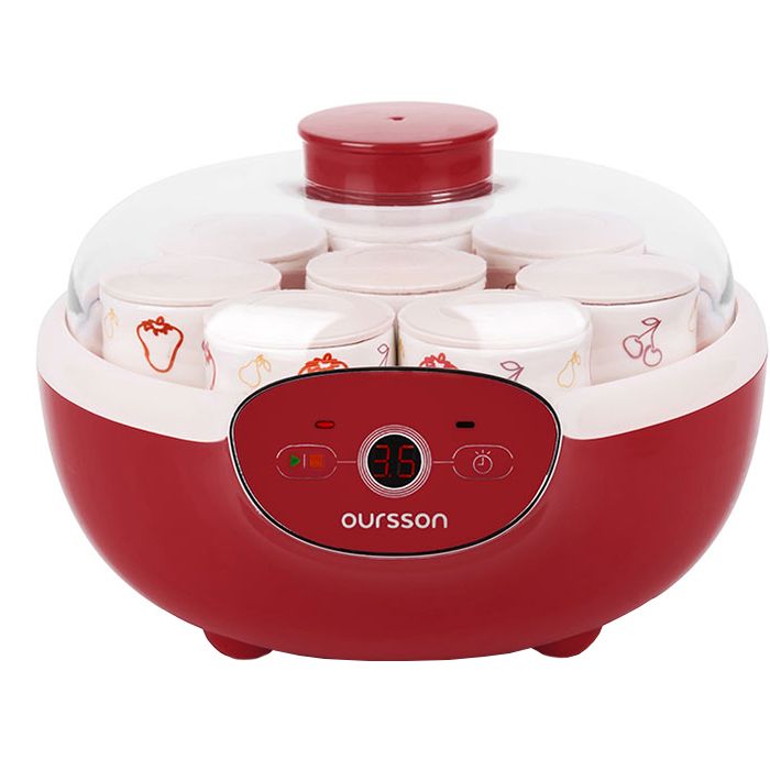 1. Iaurtiera Oursson FE1105/RD, 1.5L, LCD, Funcţie fermentare, 8 recipiente ceramică, Vişiniu