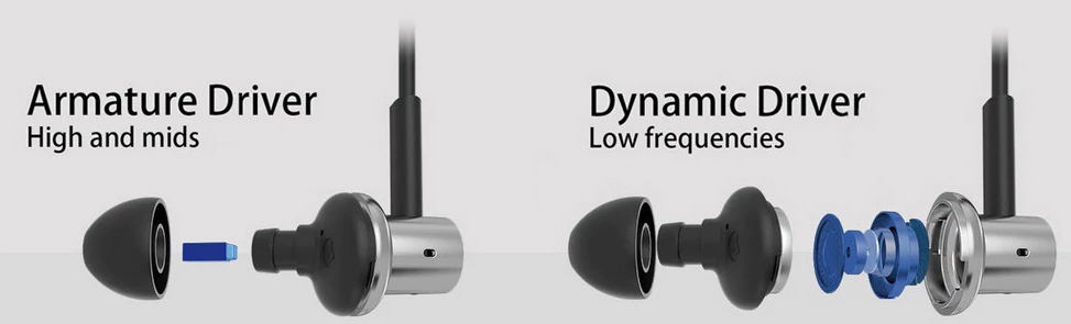 Căștile de față se remarcă atât prin design-ul modern, cât și prin capabilitățile audio. Vin echipate cu două difuzoare pe fiecare cască, unul de tip armătură pentru frecvențele înalte și medii, respectiv un altul dinamic de 10mm pentru acele frecvențe joase. Se asigură astfel o calitate superioară a sunetului tocmai prin împărțirea frecvențelor pe difuzoare cum am explicat aici.