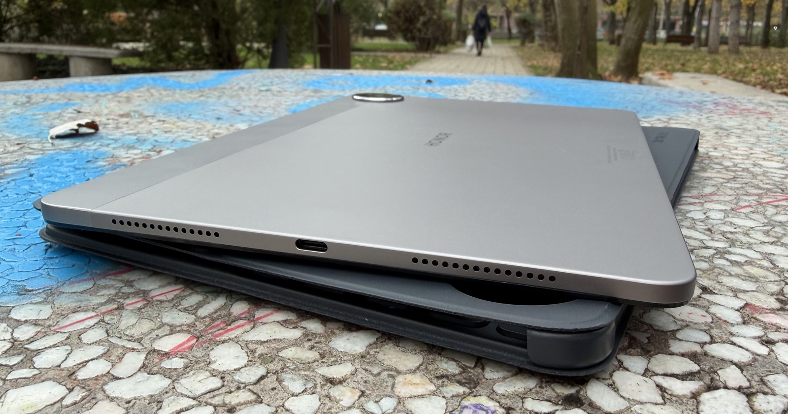 În Setări găsim HONOR Spatial Audio şi HONOR Stereo Audio. Testele cu decibelmetrul arata impresionant şi mă refer la 90.5 dBA la testul cu sample-ul acustic sus şi 88 dBA jos. Depăşim Galaxy Tab S10 FE şi Huawei MatePad 12X (2025), dar suntem sub Xiaomi Pad 6s Pro 12.4 şi Redmi Pad Pro. La testul multimedia am ajuns la 98 dBA, nu chiar record, dar nici departe, cu doar 4 decibeli sub locul întâi.