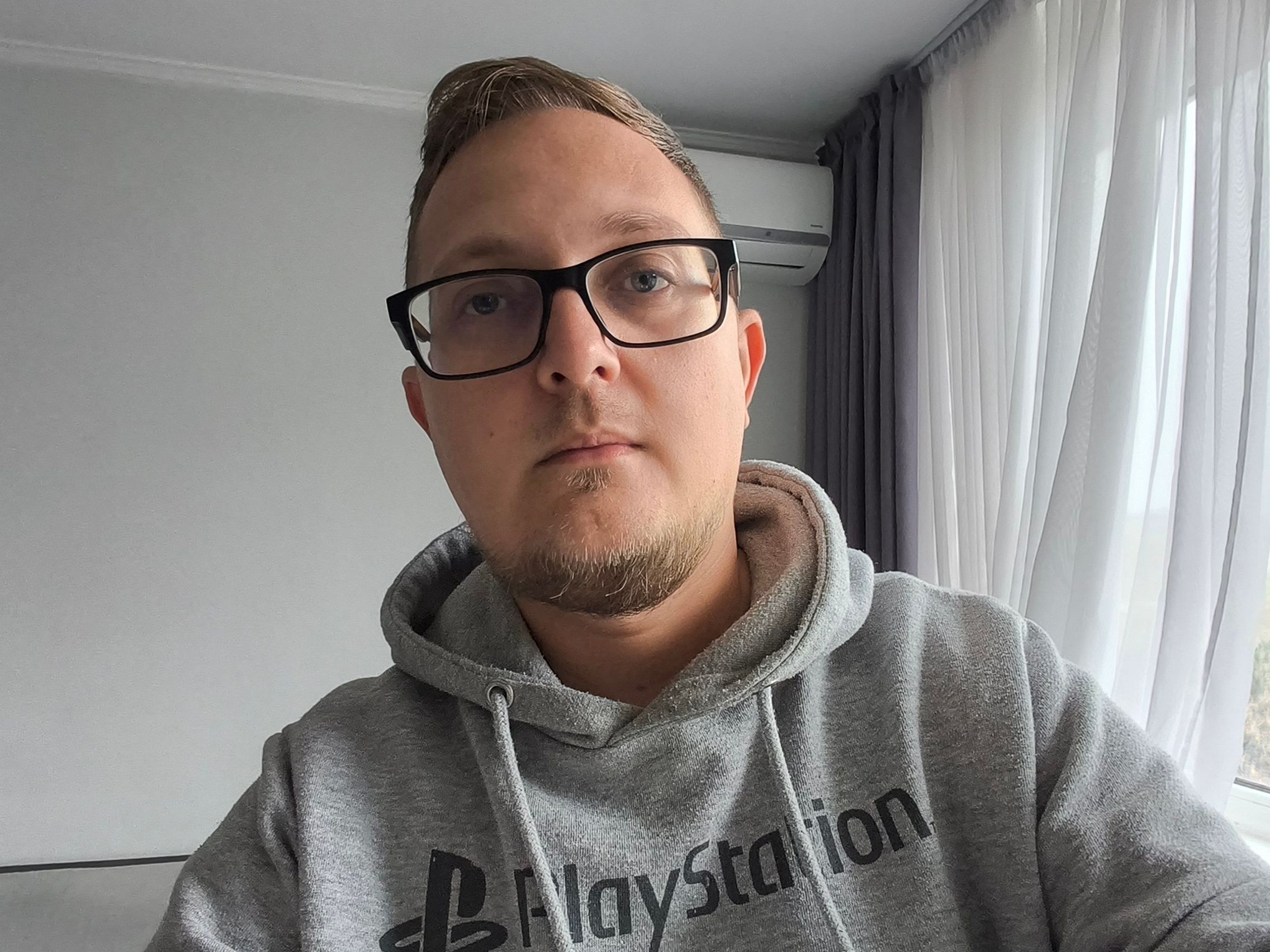 Pentru selfie-uri avem o cameră de 12 mpx, f/2.4, cu unghi ultra-wide de 120 grade și filmează și ea la rândul său 4K în 30fps, fiind bună pentru apeluri video. Nu aș zice totuși că te dă pe spate prin calitate. E decentă, pentru utilizare ocazională. În schimb, camera din spate e bună pentru fotografiat documente, cu avantajul bliț-ului LED de la posturi.