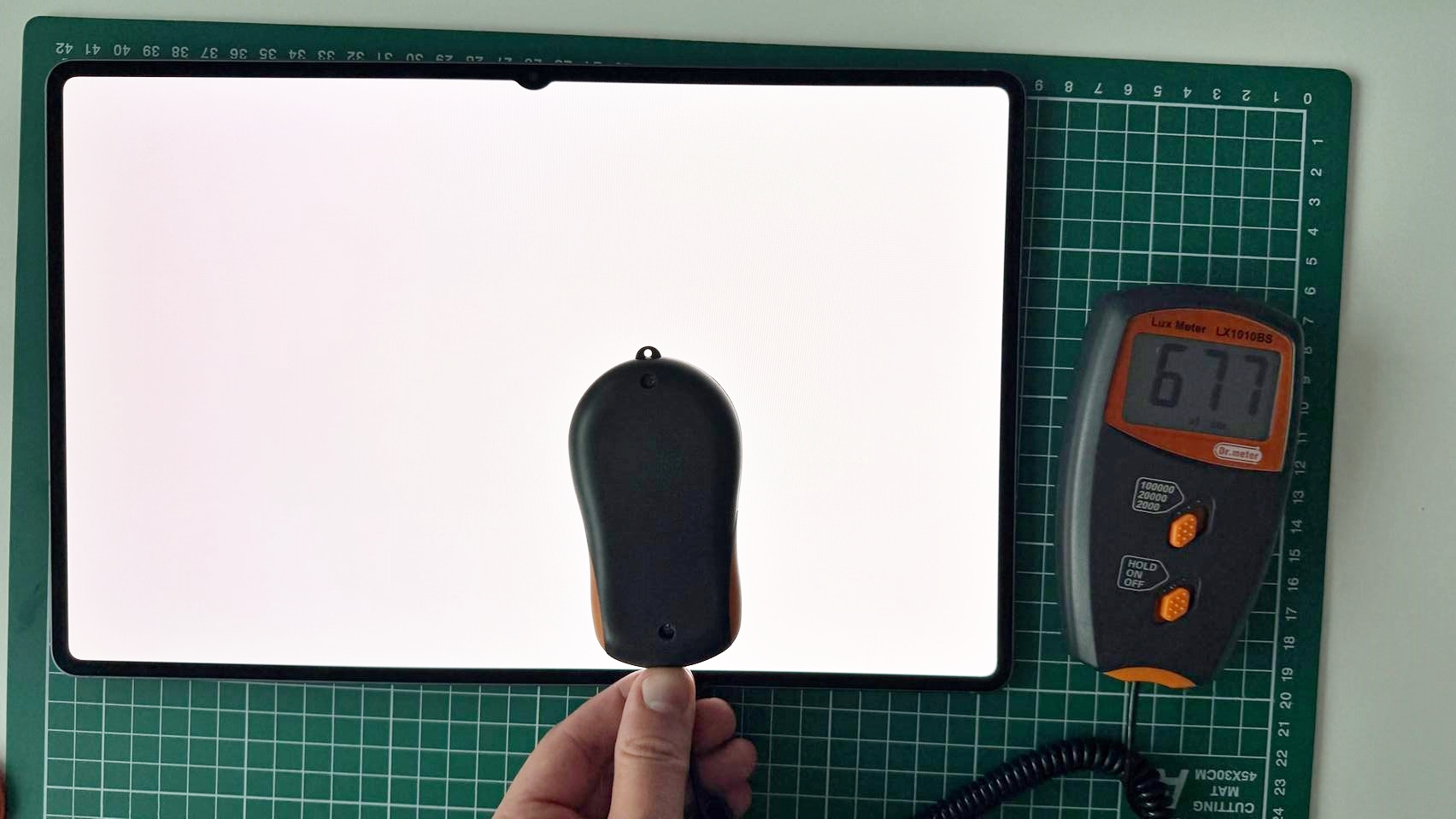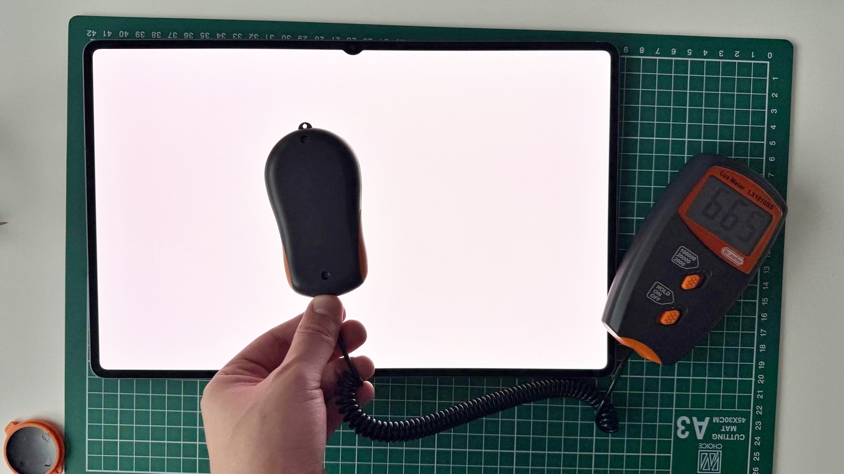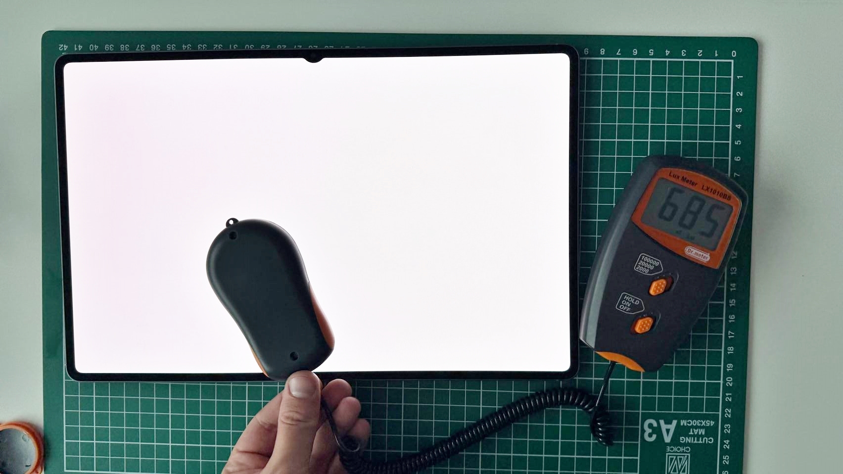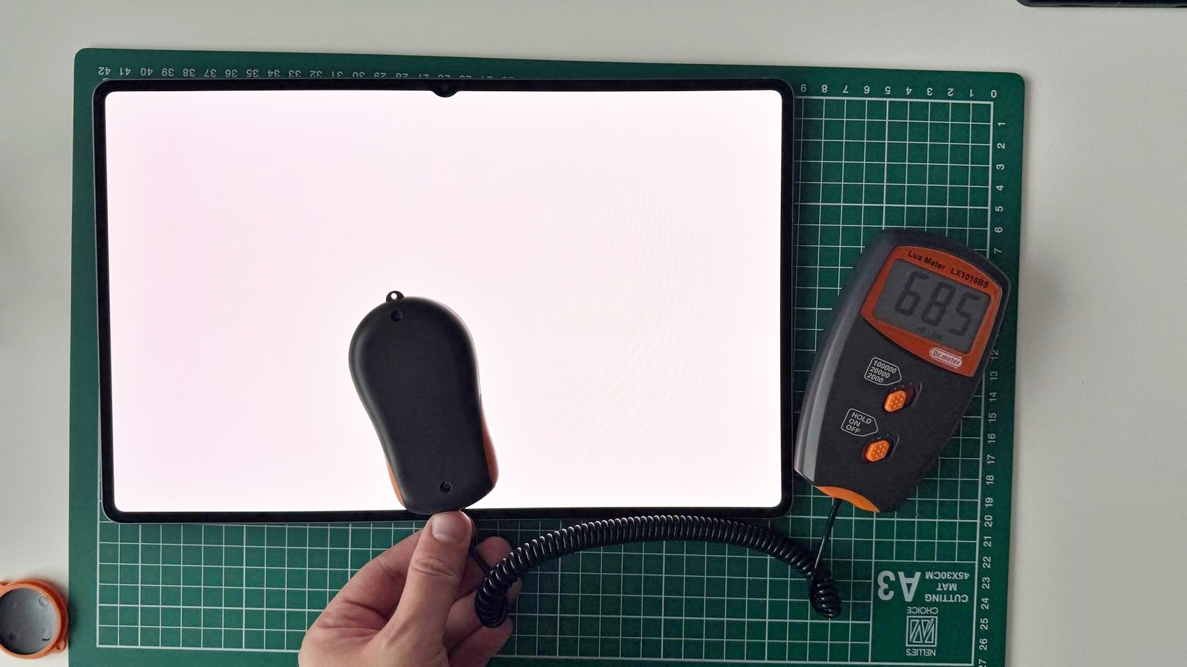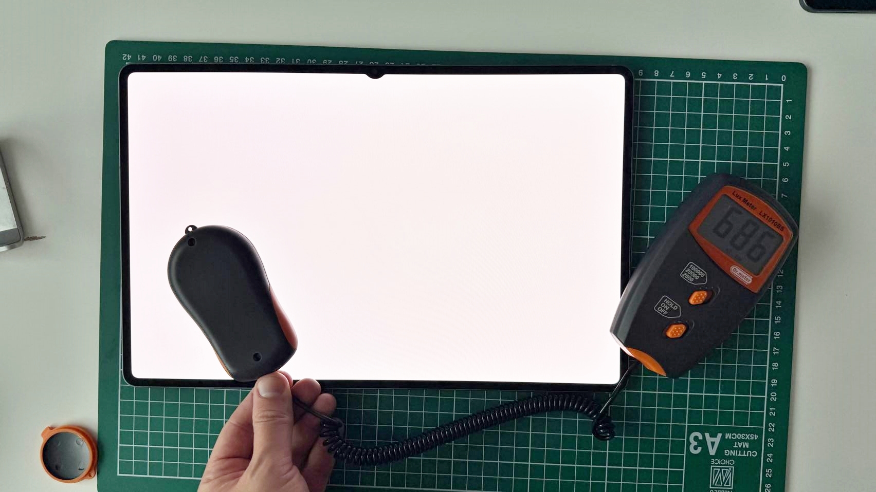 La testul cu luxmetrul am ajuns la 686 LUX, ceea ce nu e vreun record şi e clar sub Huawei MatePad Pro-urile care sar de 900 sau chiar 1400 LUX. Am întrecut iPad 10 2022 şi Huawei MatePad 11.5 (2025) şi suntem în mare la egalitate cu Tab S10 Ultra, care avea 687 LUX, deci în marja de eroare. Culmea e că Tab S10 FE e mai sus, la 847 LUX.