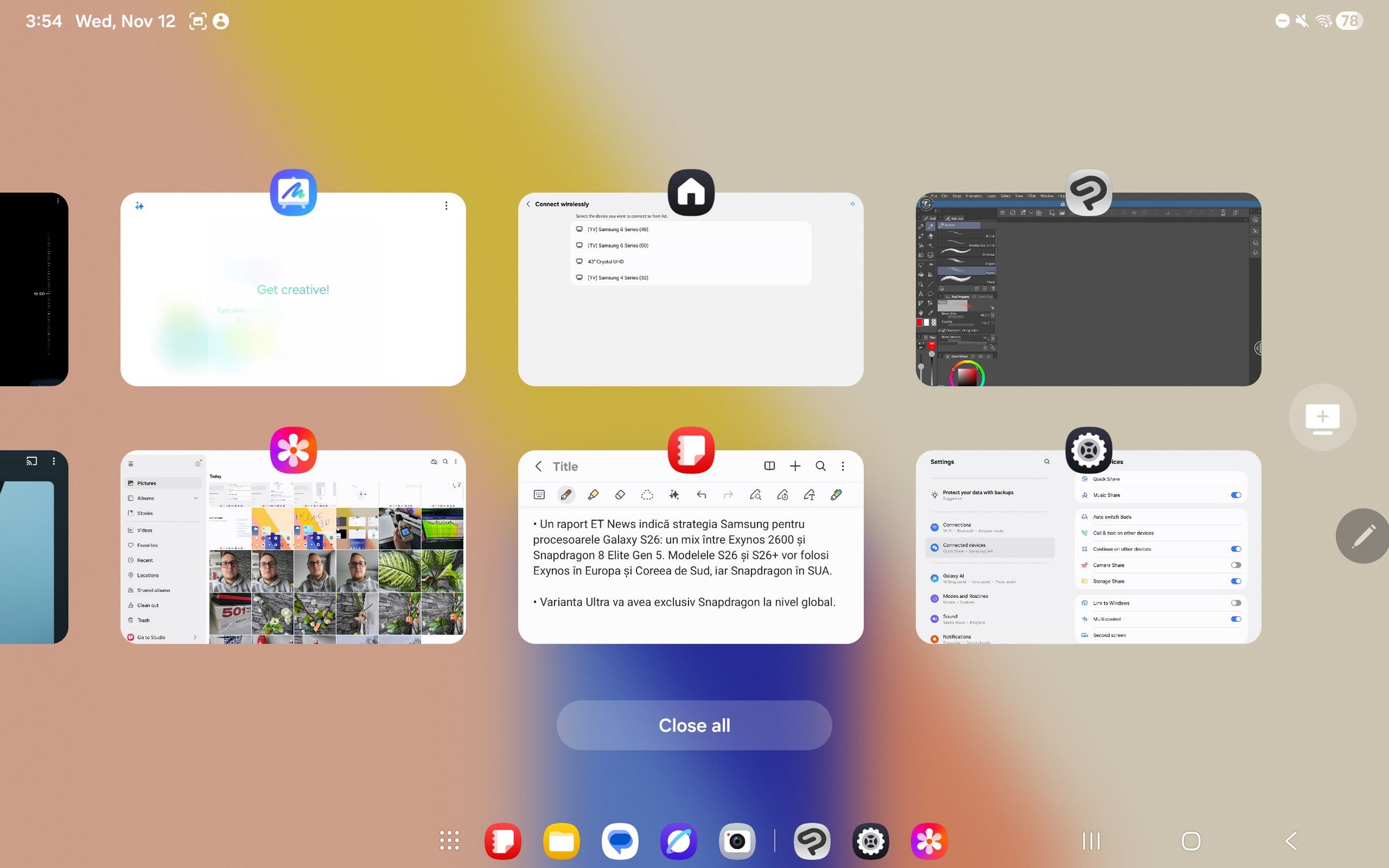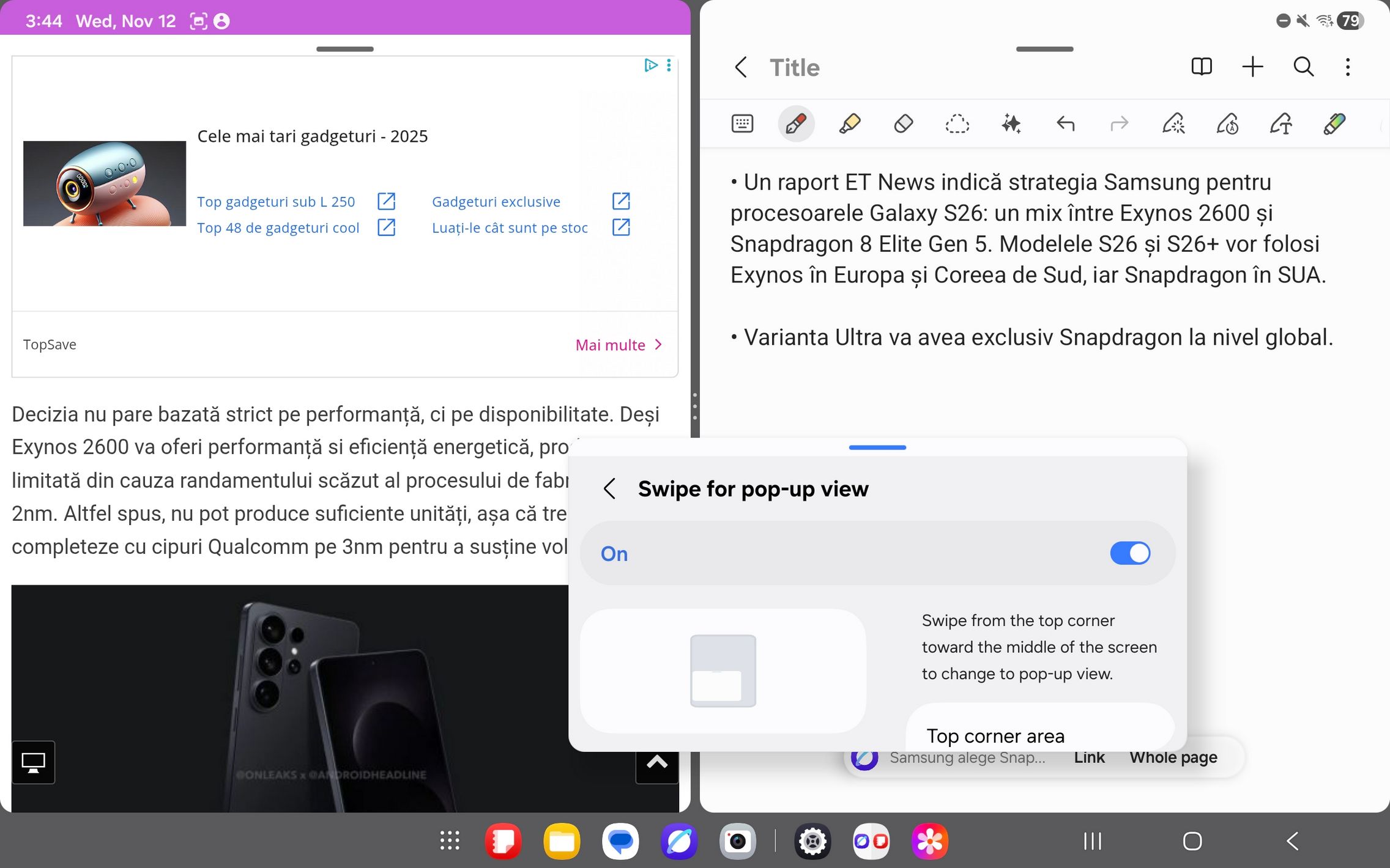 Funcționalități multitasking de pe Tab S11 Ultra: