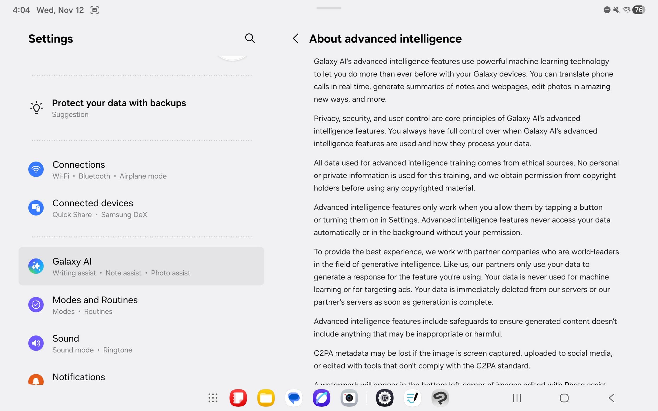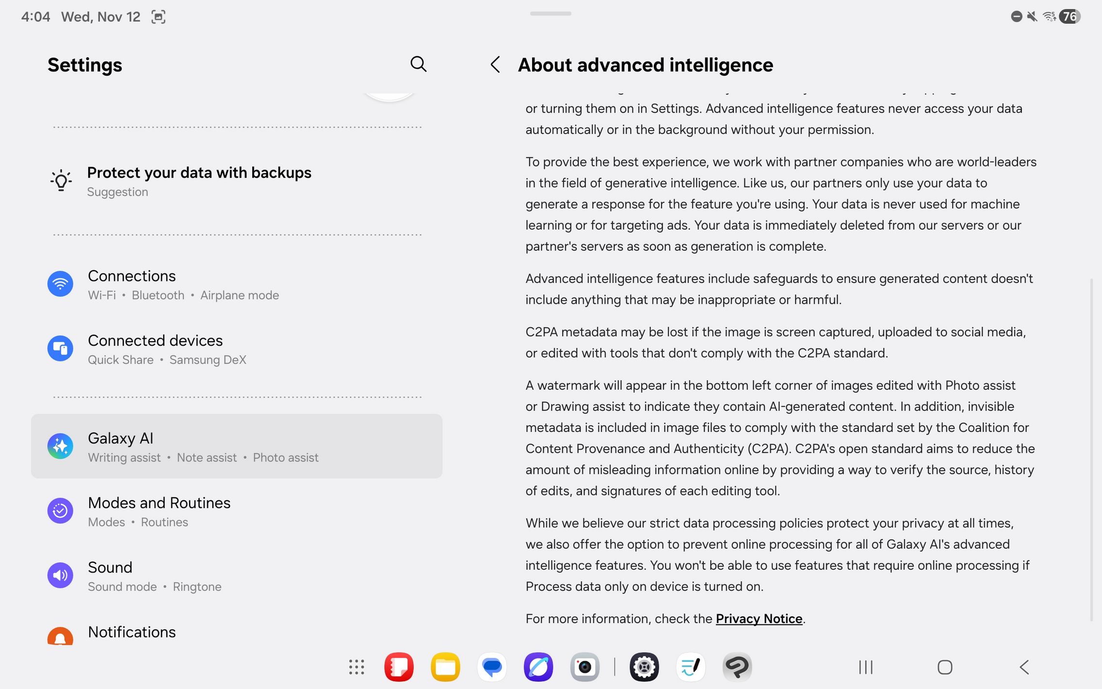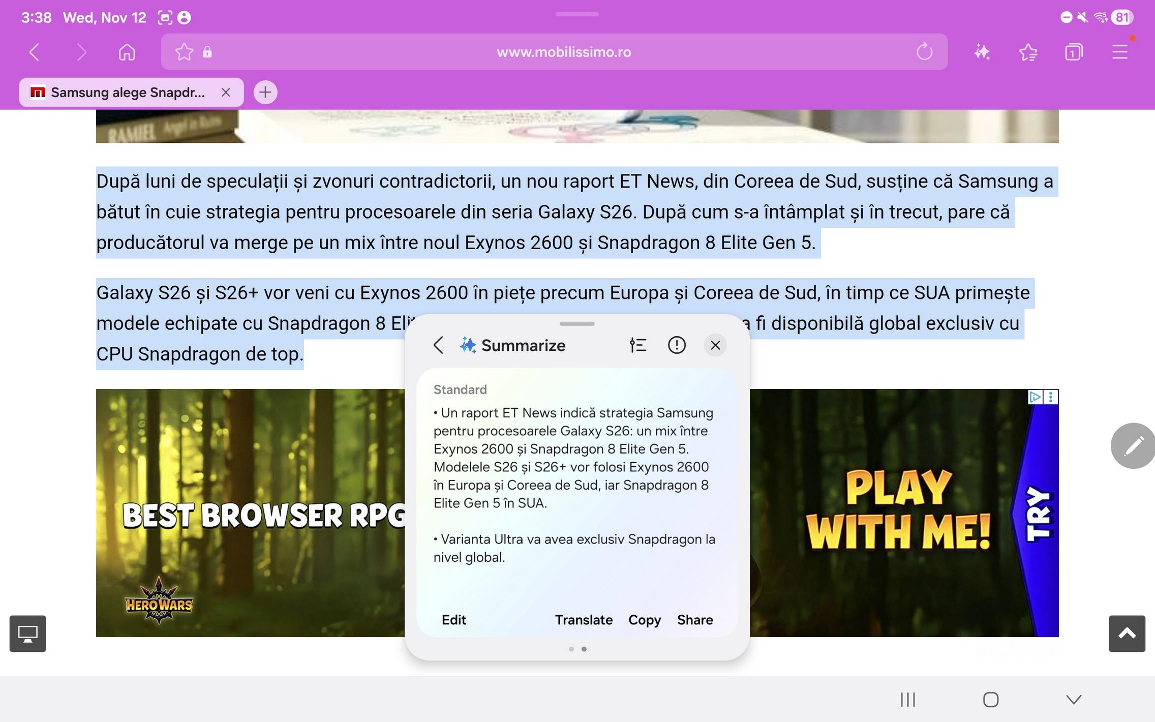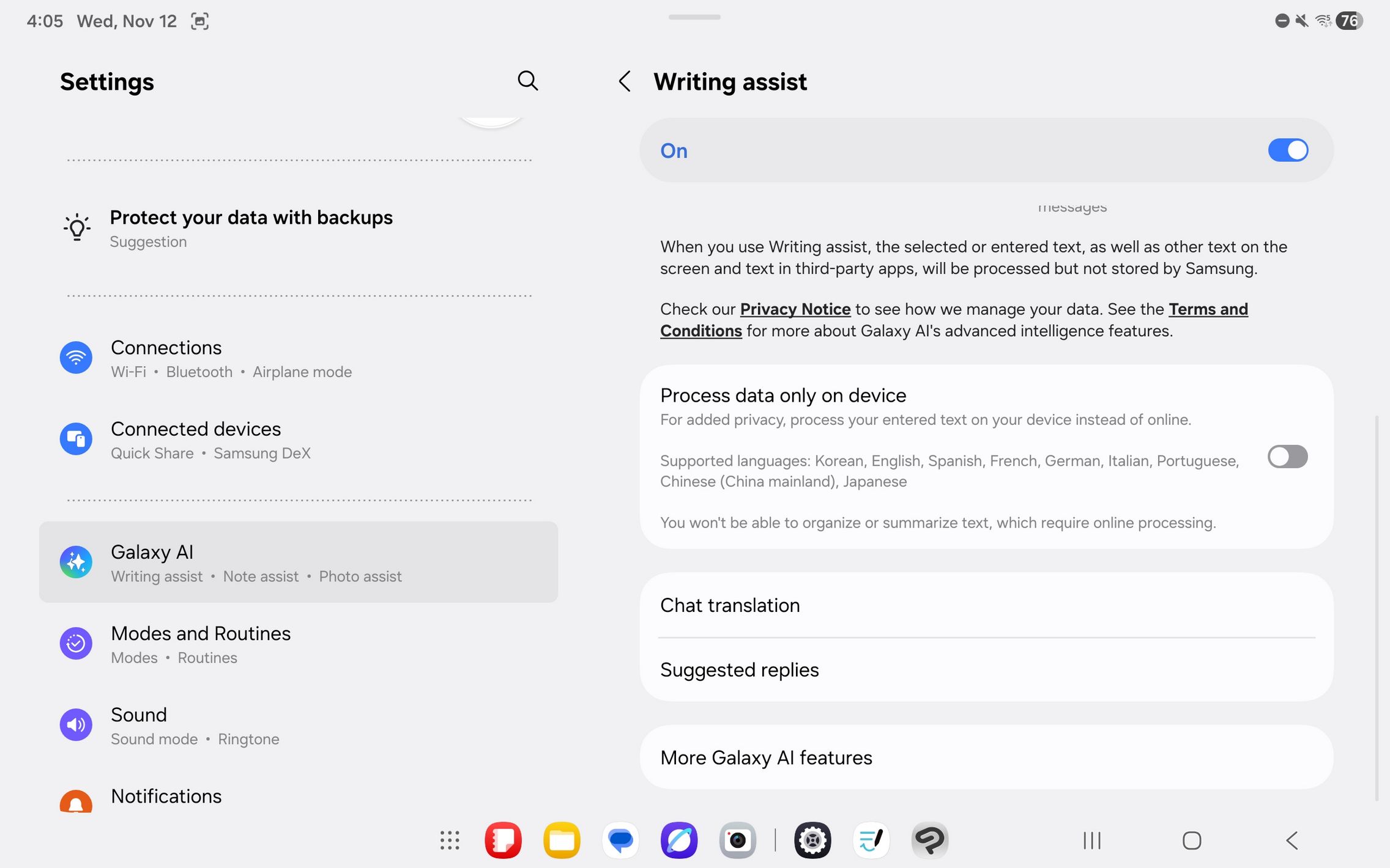 Pe Tab S11 Ultra am descoperit toată suita Galaxy AI, care e deja disponibilă în limba română. Tableta devine practic un asistent digital extins, pentru a scrie mai ușor, traduce, edita, crea rezumate, iar cu Drawing Assist transformi schițele în ceva mult mai arătos, fără să fii neapărat artist.