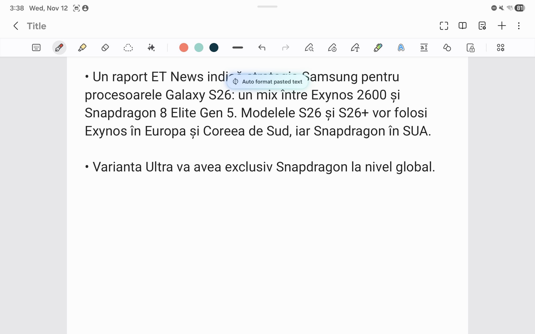 Un minus rămâne faptul că stylus-ul nu are Bluetooth și butonul nu e chiar ușor de apăsat, dar rămâne extrem de precis și răspunde excelent la comenzi. Samsung aduce pe această tabletă și o suită de aplicații compatibile cu S Pen: