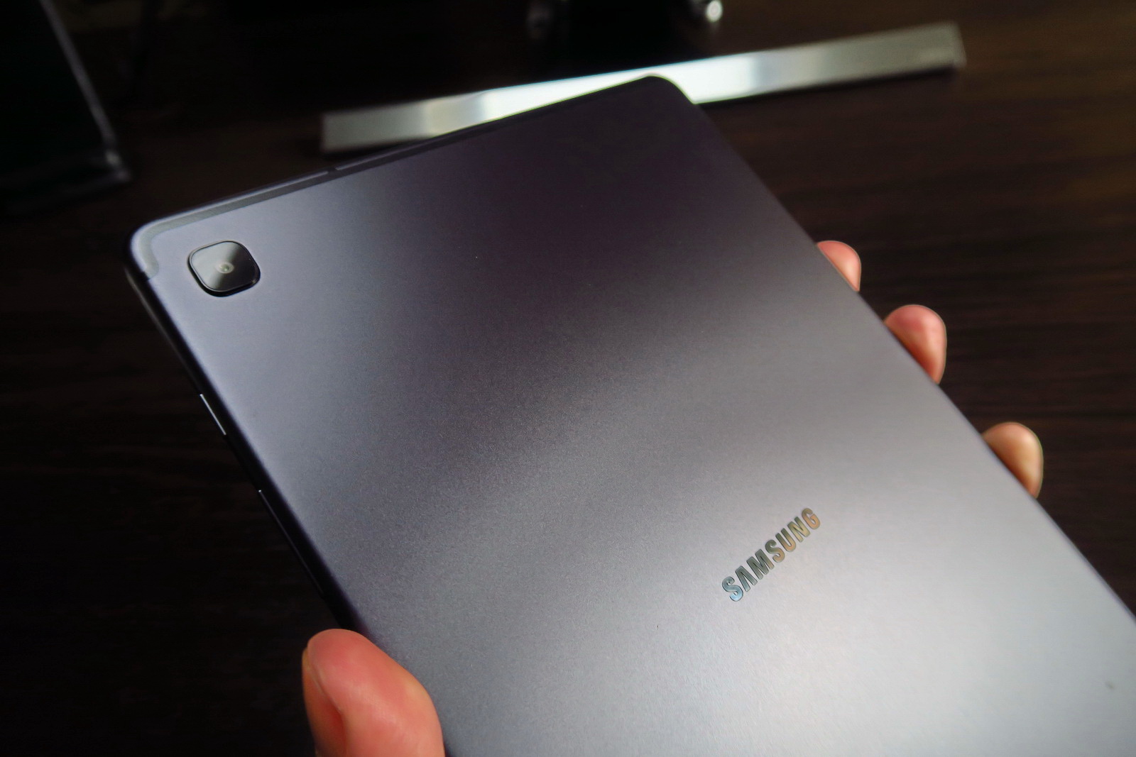 Samsung a mers pe ruta clasică atunci când a gândit designul lui Samsung Galaxy Tab S6 Lite. Tabletele unibody metalice au devenit standardul în ultimul deceniu şi la fel găsim şi aici. Avem decupaje pentru antene în spate, sus şi jos şi un corp solid din metal, bine construit. Spatele este unul cu textură plăcută la atingere (soft touch), iar aderenta este crescută.