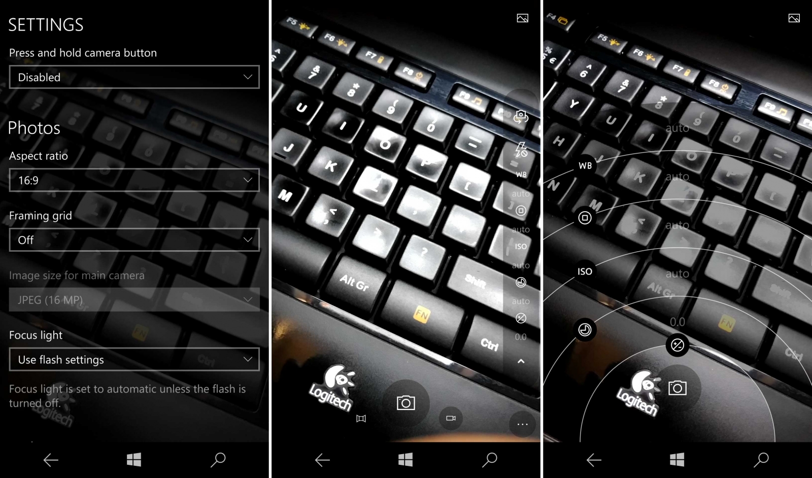 Aplicaţia Camera porneşte rapid, focalizează destul de greu şi durează bizar de mult să fie realizate fotografiile, atât ziua, cât şi noaptea. Schimbarea de expunere e violentă şi ceea ce vedem pe viewfinder şi rezultatul final uneori nu coincid, cel puţin ca nivel de iluminare. Zoomul e rezonabil de fluid totuşi. În zona superioară a interfaţei se afla opţiuni ca HDR, blitz, shortcut pentru camera frontală, balans de alb, ISO, focalizare, shutter şi expunere, iar în rest găsim şi Timer şi acele lenses, care adăuga noi funcţii camerei.