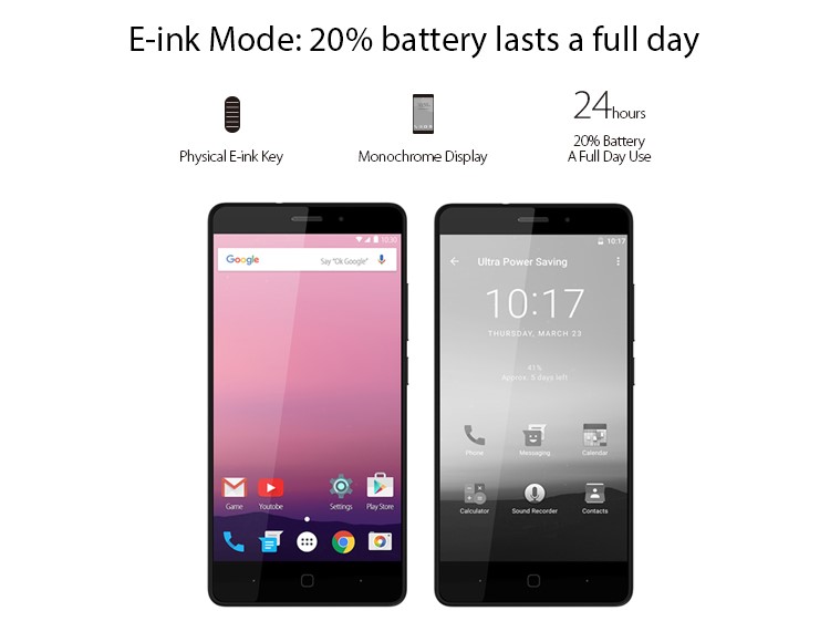 Există și un mod special E-ink ce poate fi acționat prin apăsarea butonului fizic dedicat din lateral, mod prin care vom beneficia de 24 ore de autonomie la un nivel de 20% al bateriei. Luminozitatea va fi micșorată automat, ecranul va afișa nuanțe alb-negru iar unitățile CPU și GPU vor intra în underclocking pentru a reduce serios consumul de energie.
