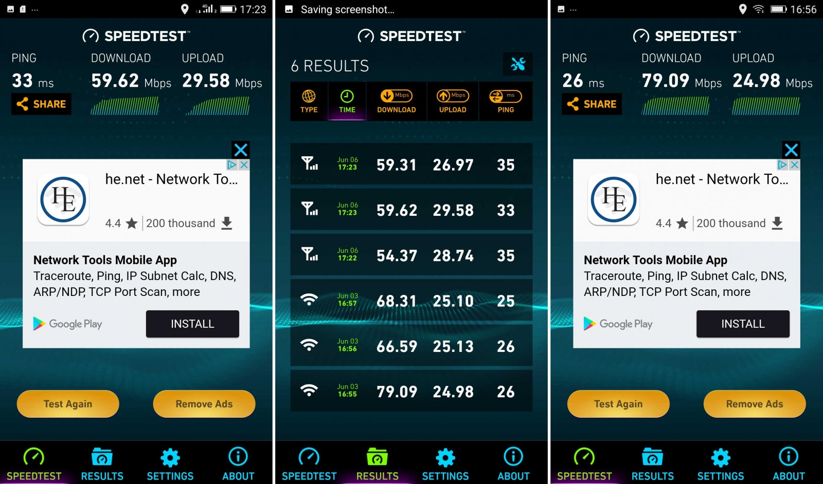 Dialerul vine cu funcţie Speed Dial şi Black List, iar apelurile au volum ridicat şi claritate bună. Am făcut şi un SpeedTest, atingând 59 Mbps download 4G şi 29 Mbps upload. La WiFi avem 79 Mbps la download şi 25 Mbps la upload. Suntem în grafic şi în limitele normale.