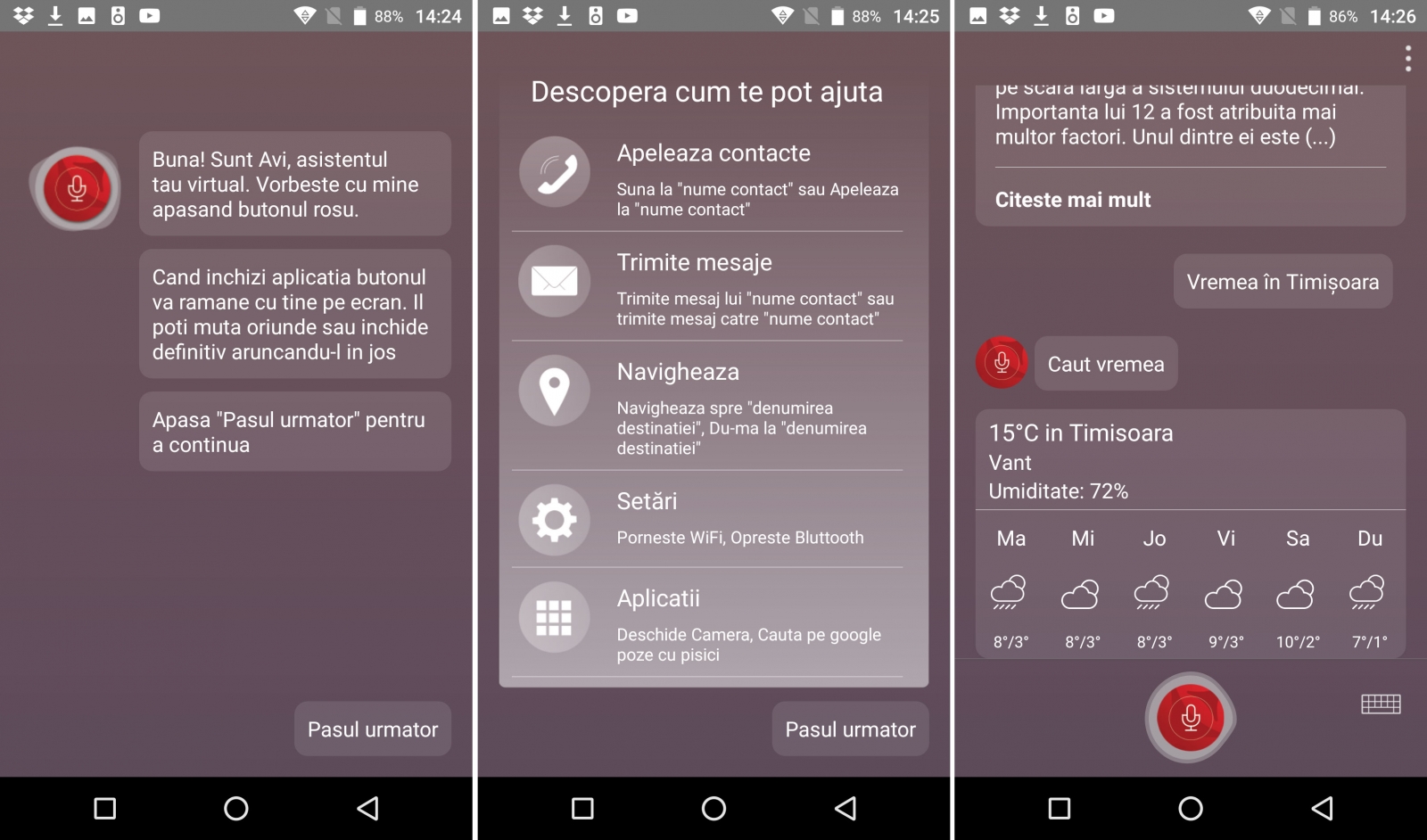 AVI e la posturi, ca asistent vocal în limba română, dar ştie şi engleză nu vă faceţi griji. Apelează la Wikipedia pentru cultura generală şi ştie să trimită SMS-uri, să seteze remindere şi să deschidă camera. Pe lista de aplicaţii preinstalate mai găsim şi Bitdefender Mobile Security, Excel, Word, Powerpoint, Skype şi Phone Manager, cu functii ca Lock, Freeze şi Clear.