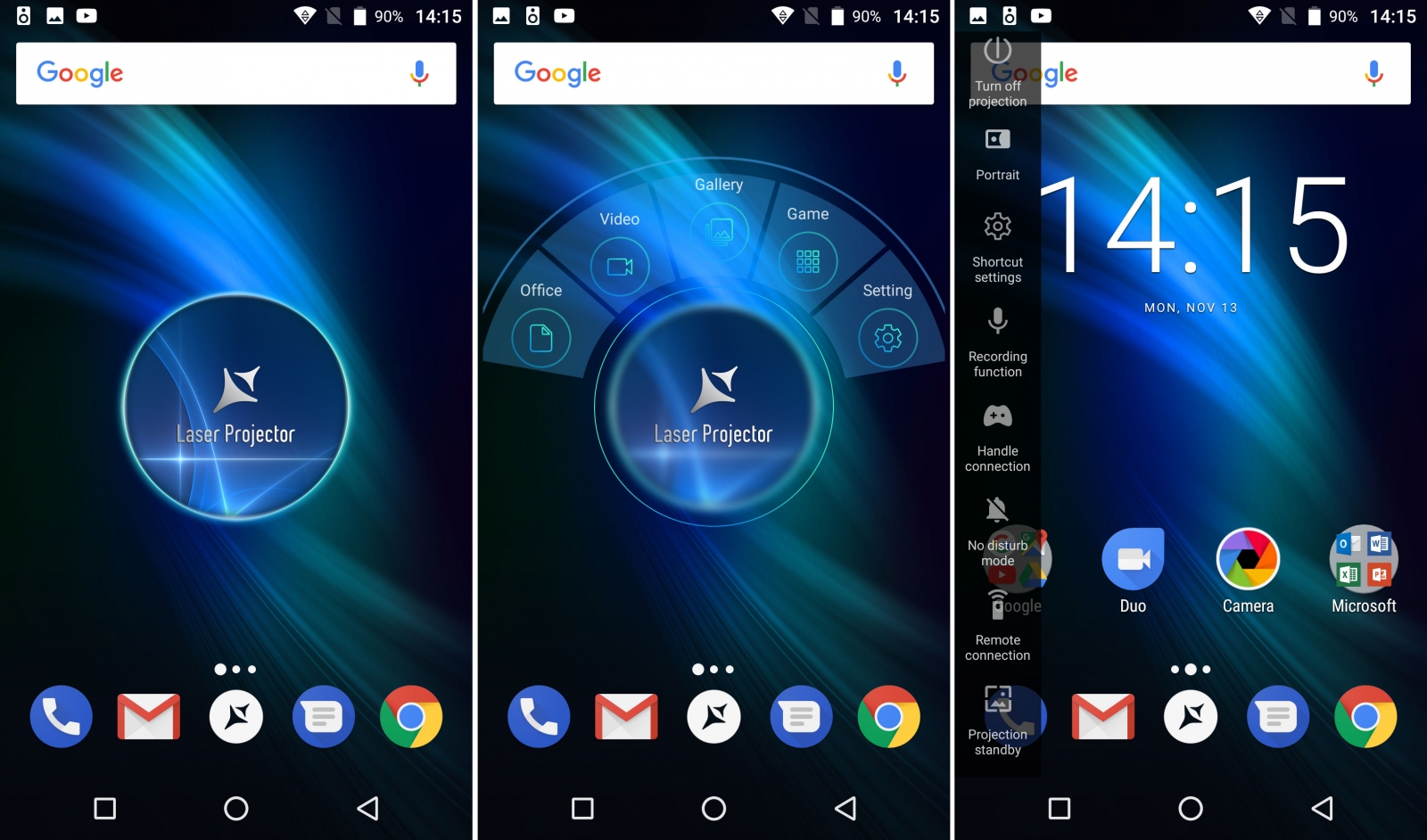 În mod surprinzător primim şi un Game Center aici, mai degrabă o colecţie de shortcut-uri către jocuri. Despre funcțiile proiectorului v-am vorbit în secțiunea "multimedia" aici, unde de altfel găsiți și un scurt demo cu această funcție.