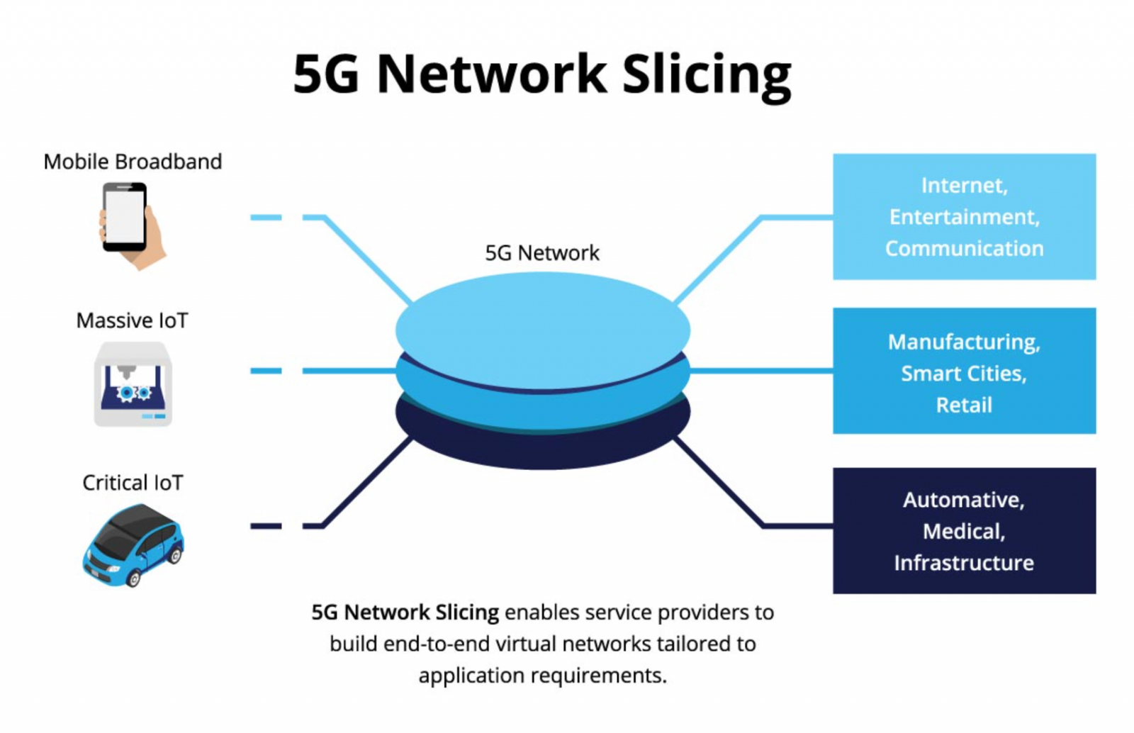 Rețeaua mobilă poate fi împărțită în segmente dedicate pentru diverse aplicații. Un segment poate fi rezervat pentru streaming și utilizatori de smartphone, altul pentru aplicații industriale sau pentru dispozitive RedCap.