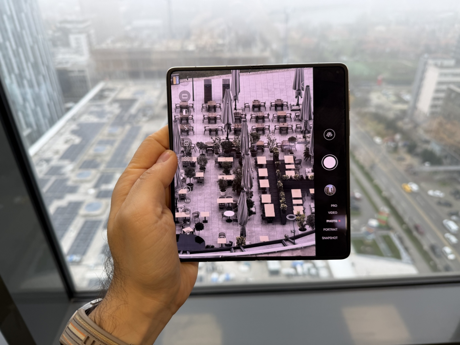 Pe înţelesul tuturor: ai dynamic range mai larg, chiar şi când e foarte lumină sau foarte întuneric. Iar umbrele vor fi mai clare şi detaliate. O altă noutate este camera periscop telephoto, acum cu zoom optic 3.5X, faţă de 4X cât avea Mate X6. Asta nu ar trebui să vă sperie, am făcut şi capturi 10X arătoase din acea clădire turn în care eram.
