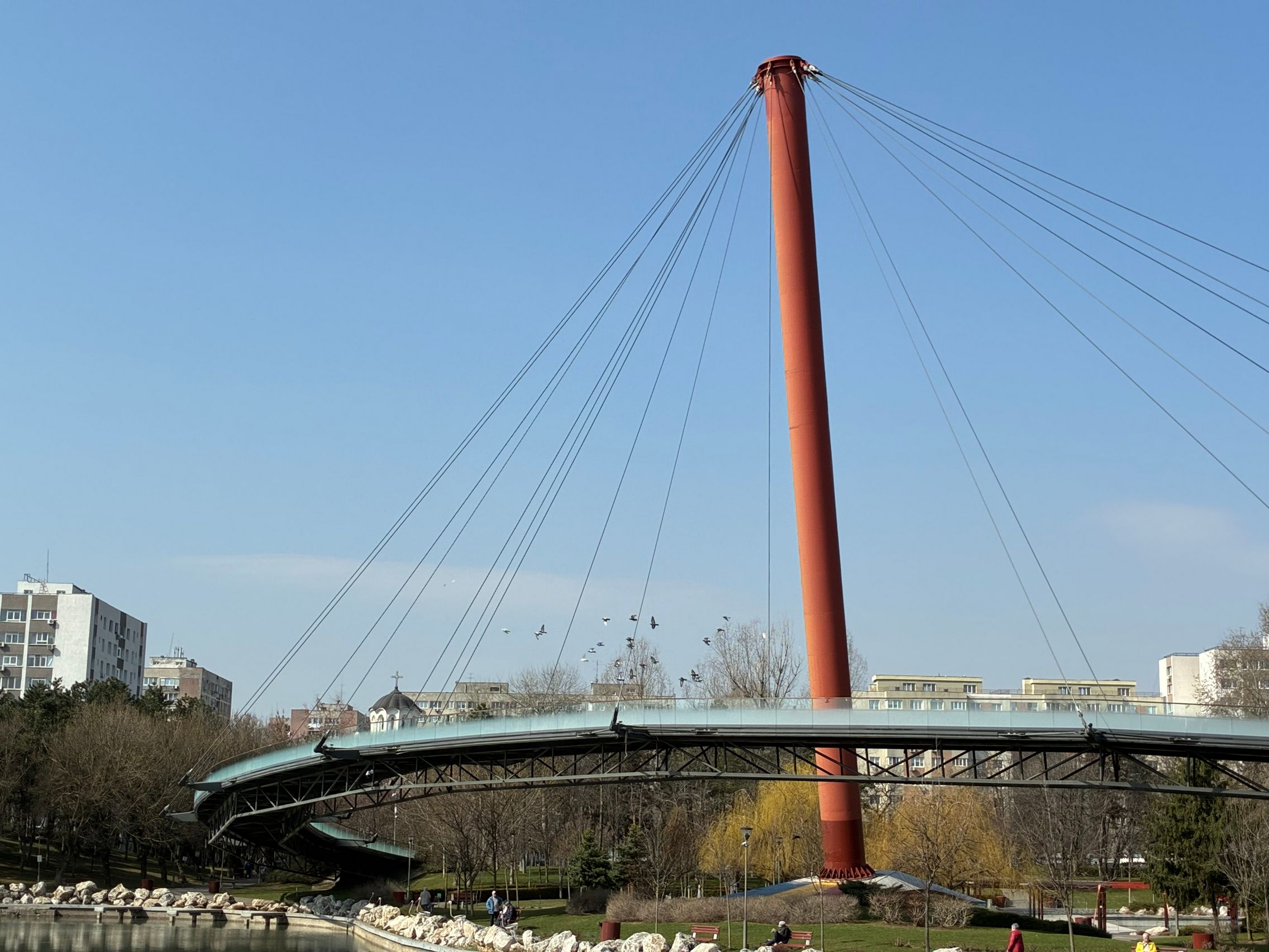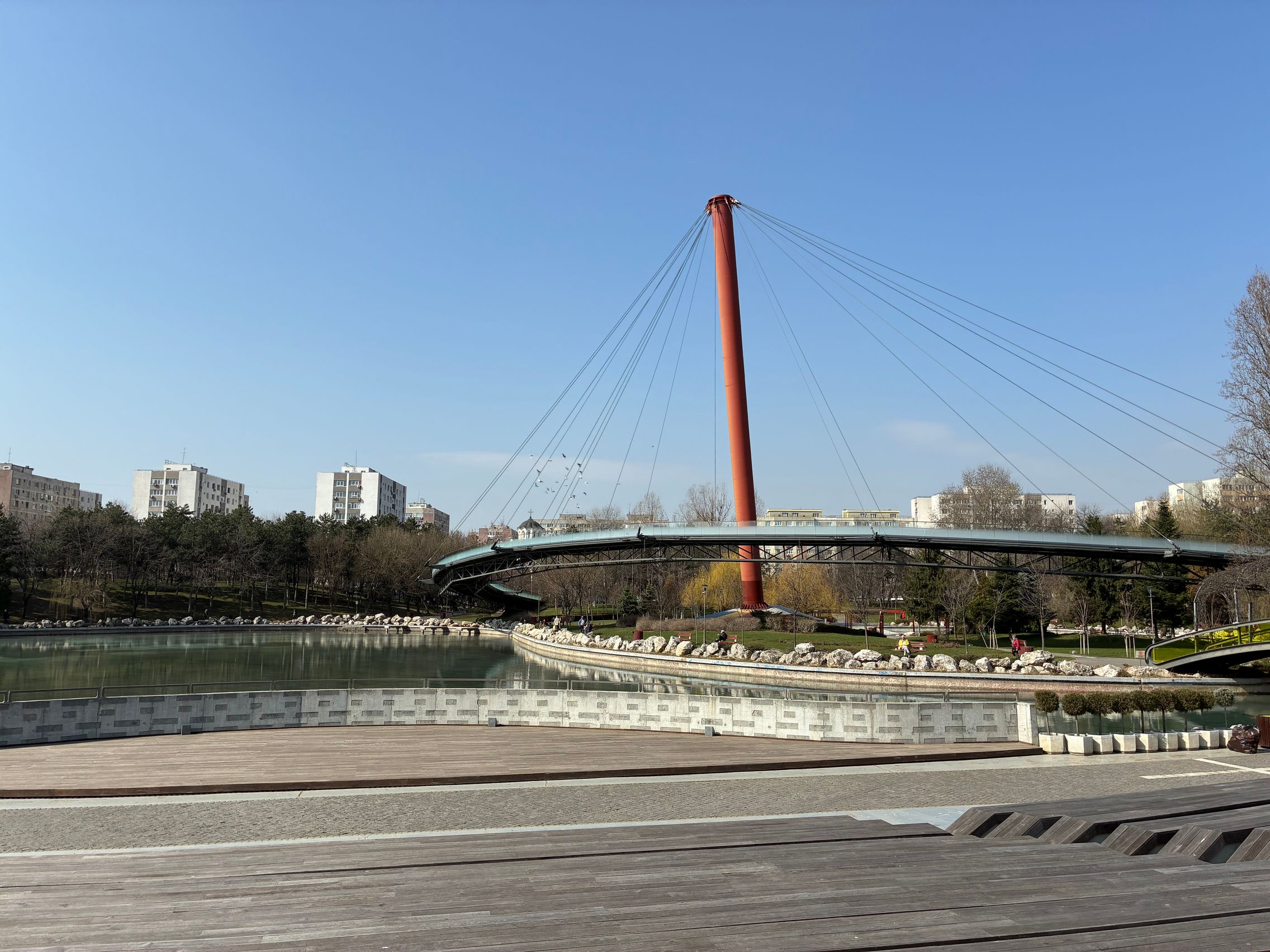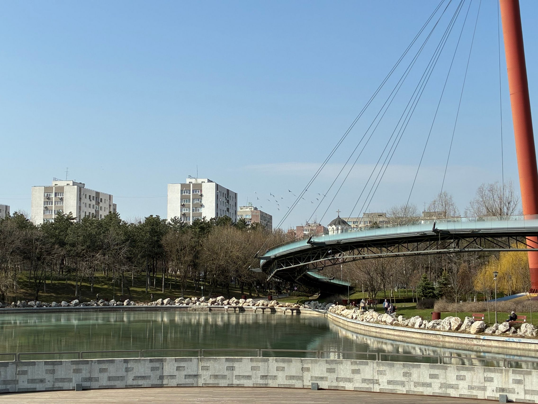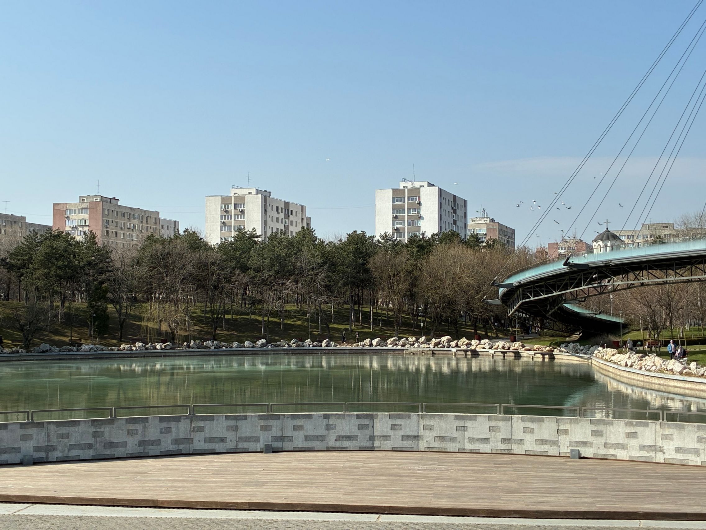 Avem dynamic range bun în fotografiile din această galerie, iar legat de HDR, singurul moment în care a fost derutat, a fost la stația de autobuz când elementele din fața camerei au rămas întunecate, cu soarele sus pe cer în cadru. Prin parc arhitectura a fost prinsă în armonie cu natura, podul răsare de printre copacii înverziți iar apa este cristalină, cu un lac proaspăt alimentat.