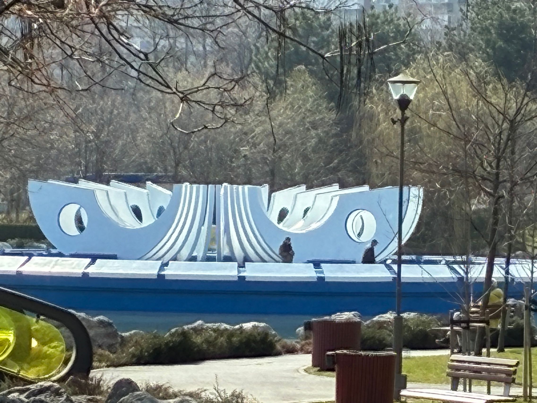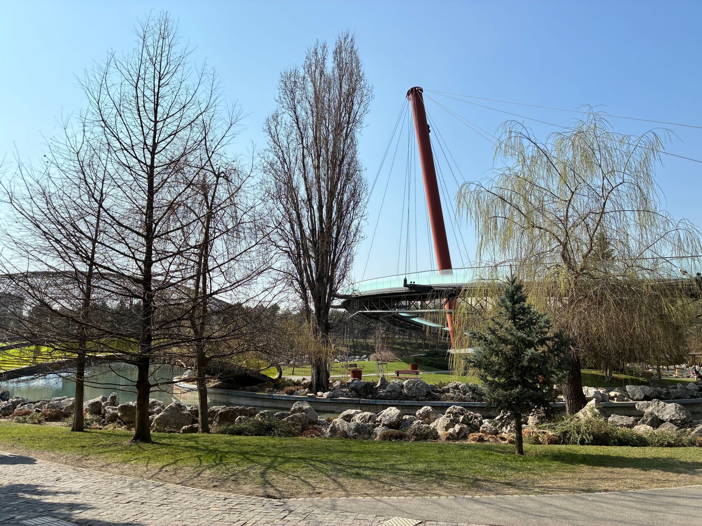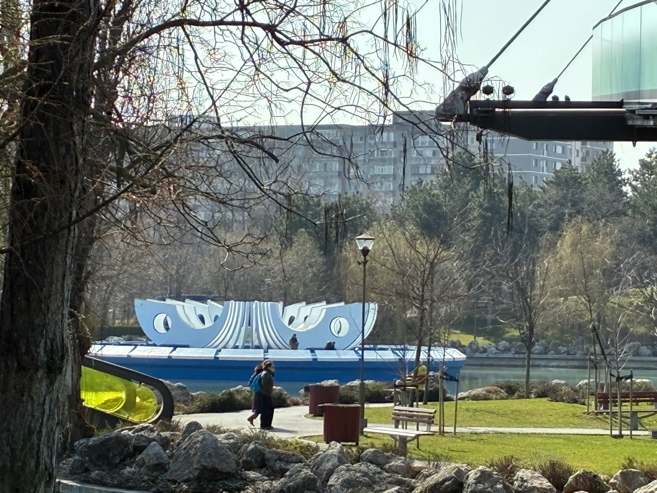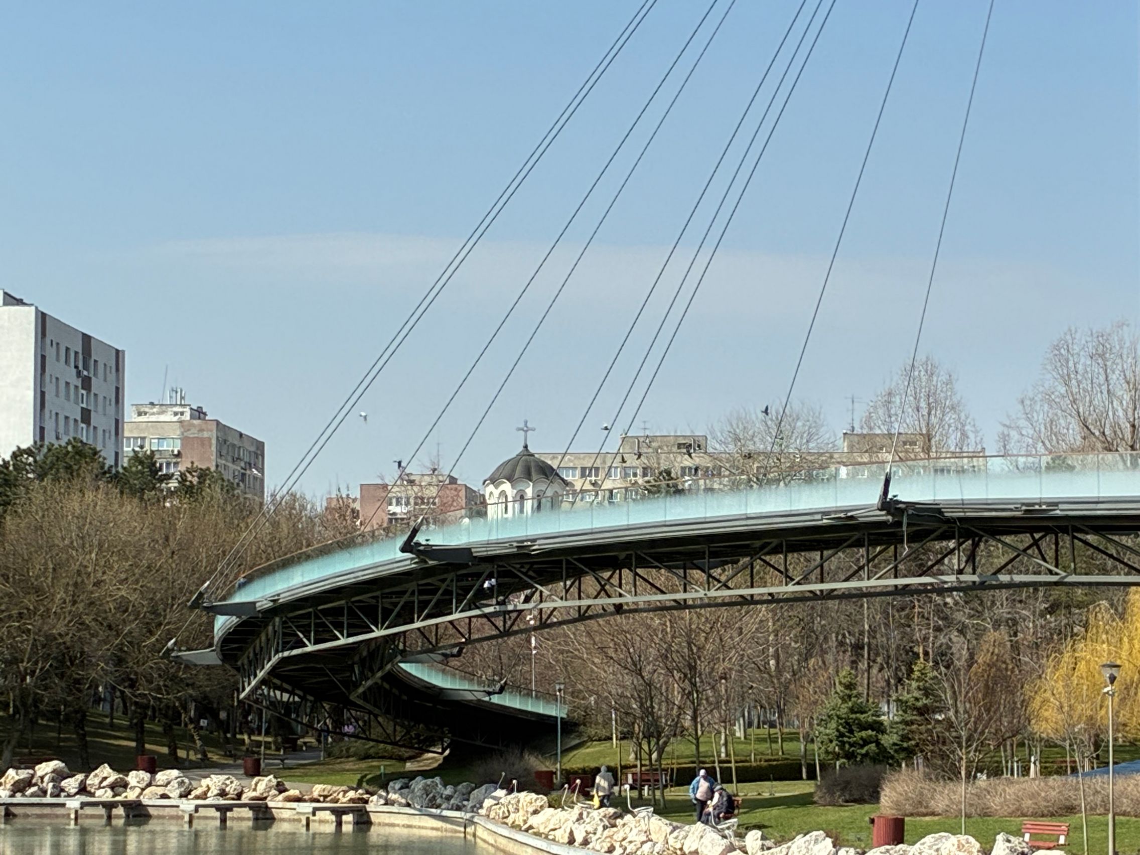 Avem dynamic range bun în fotografiile din această galerie, iar legat de HDR, singurul moment în care a fost derutat, a fost la stația de autobuz când elementele din fața camerei au rămas întunecate, cu soarele sus pe cer în cadru. Prin parc arhitectura a fost prinsă în armonie cu natura, podul răsare de printre copacii înverziți iar apa este cristalină, cu un lac proaspăt alimentat.