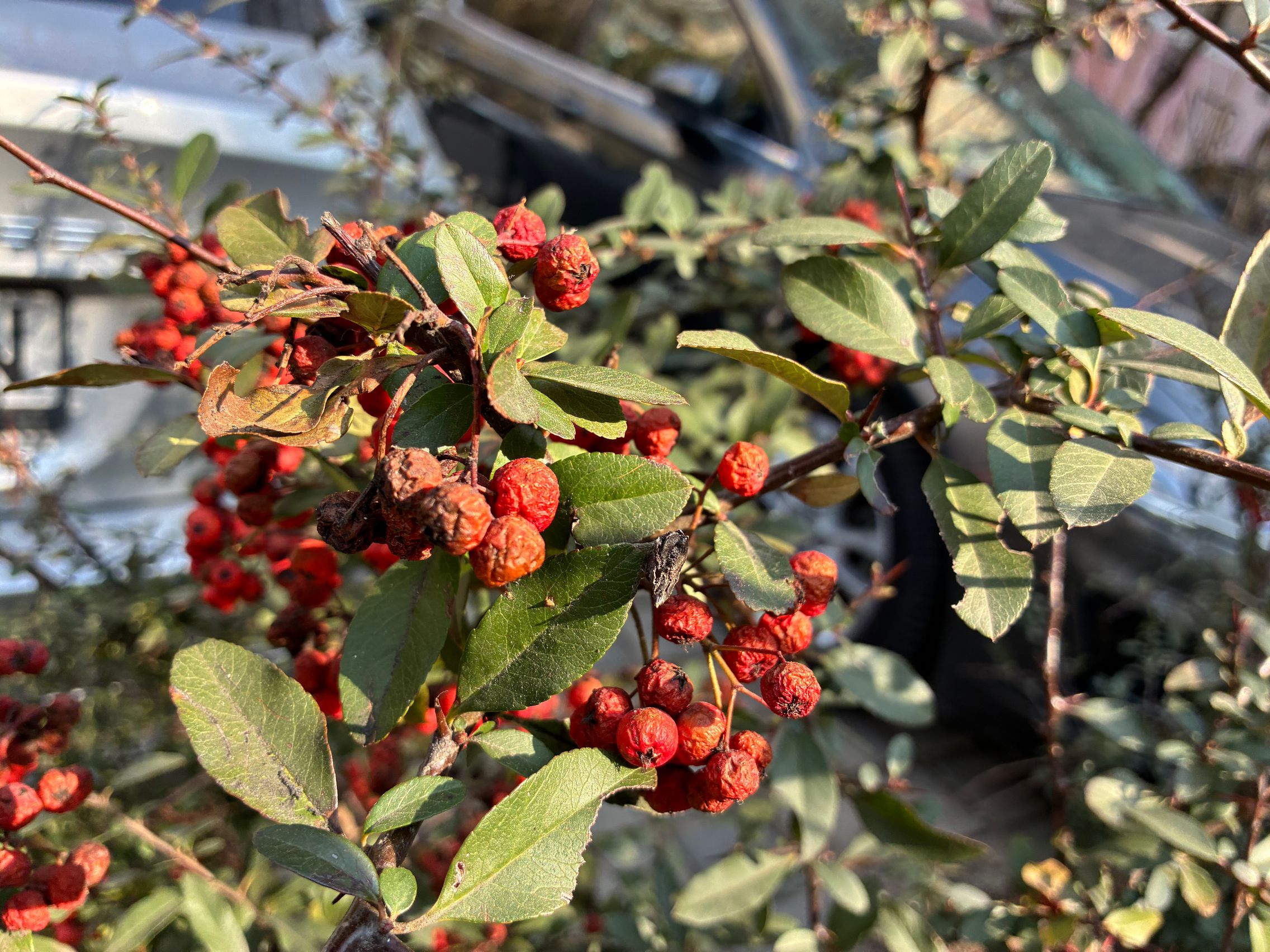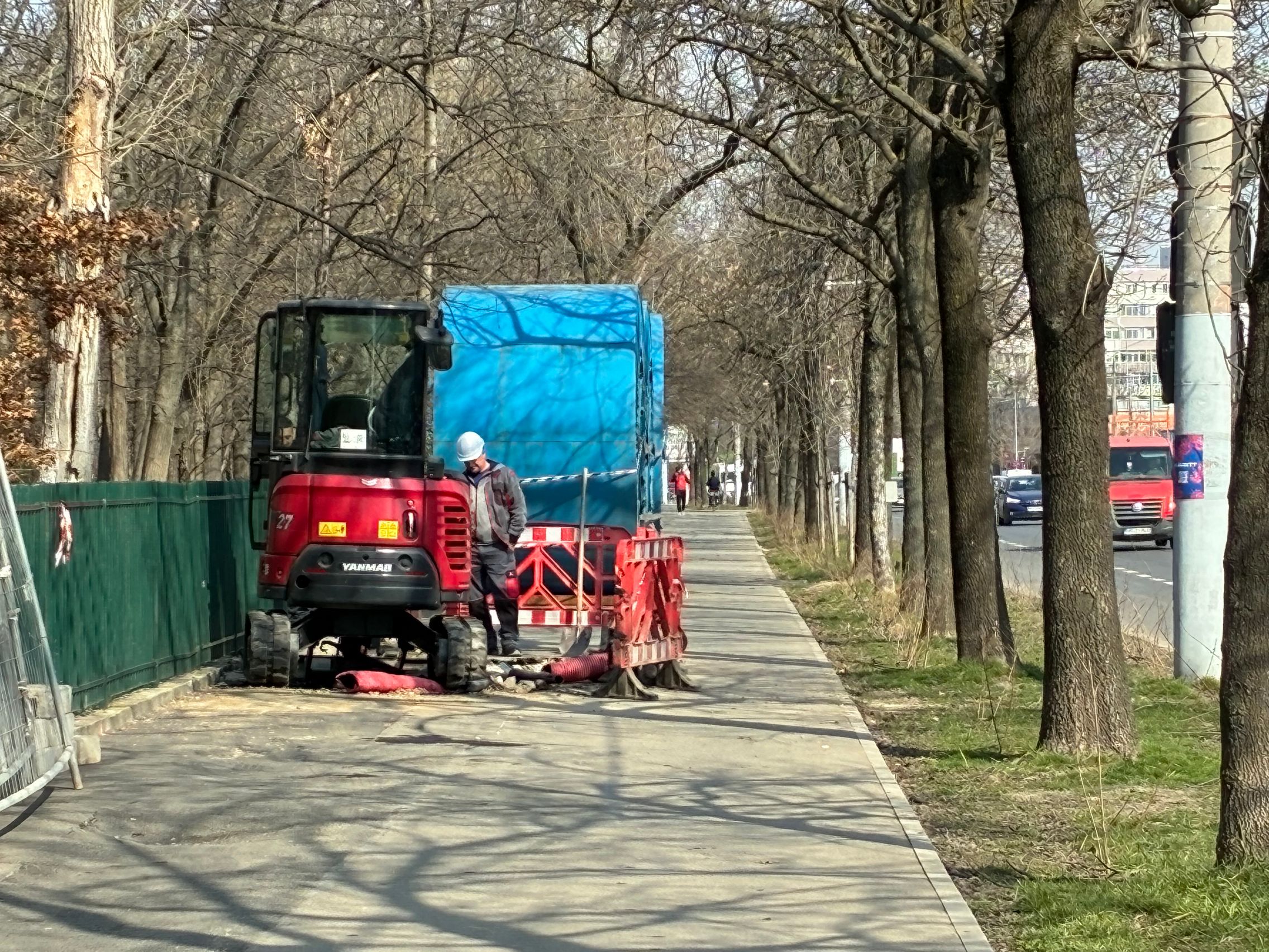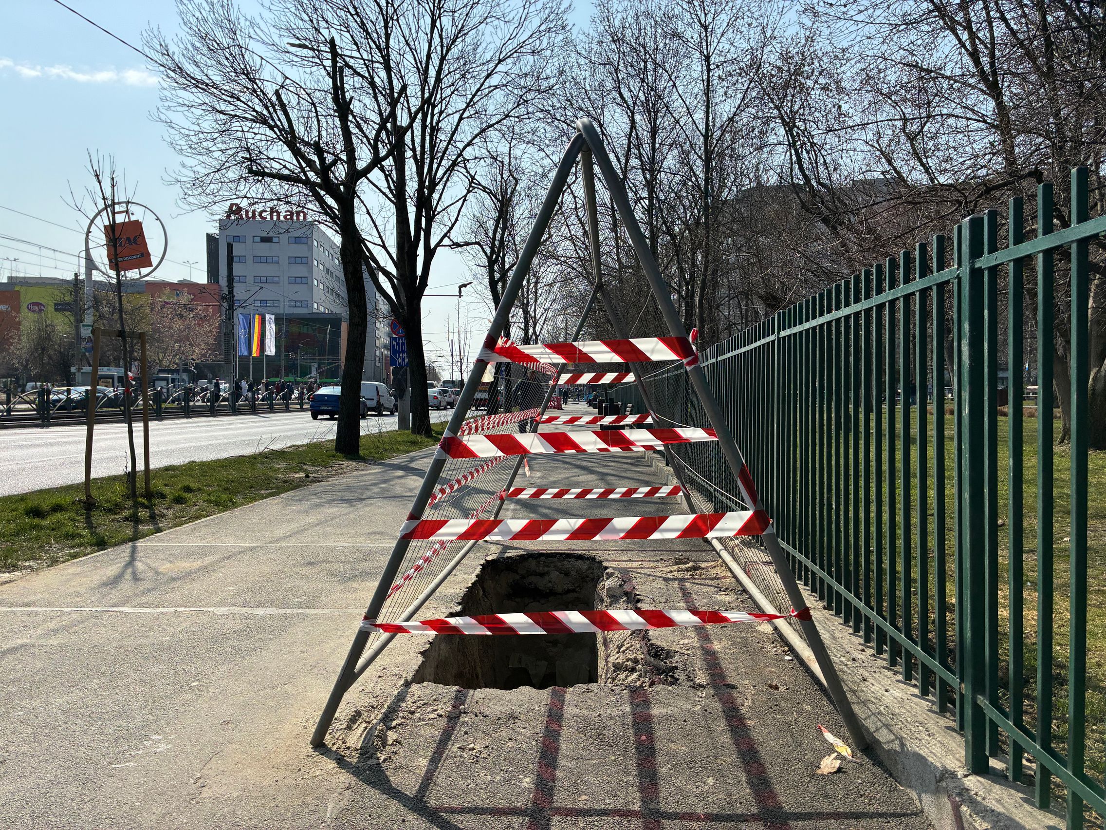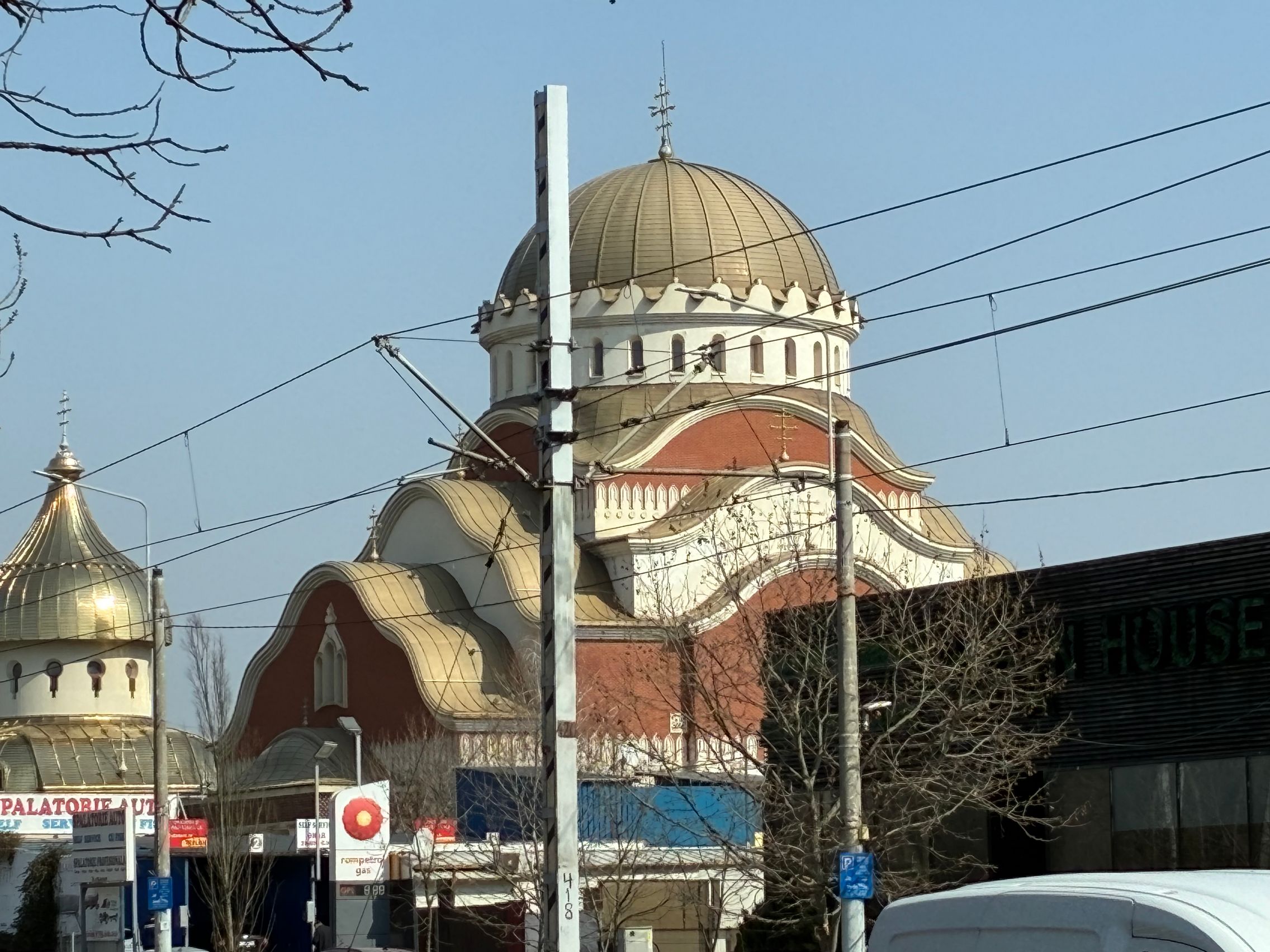 Nu există ultra-wide, dar sunt mulțumit de unghiul prins de această cameră principală și dacă mă gândesc ultra-wide-ul e pentru mine camera pe care o folosesc cel mai rar. Cu soarele în față camera rămâne în continuare capabilă, iar roșul Vodafone de la magazin e prins vibrant și văd diferențe între roșul de lângă, de la bancă. Roșul gardului e cuminte, după ani și ani la rând în care soarele i-a furat din măreție.