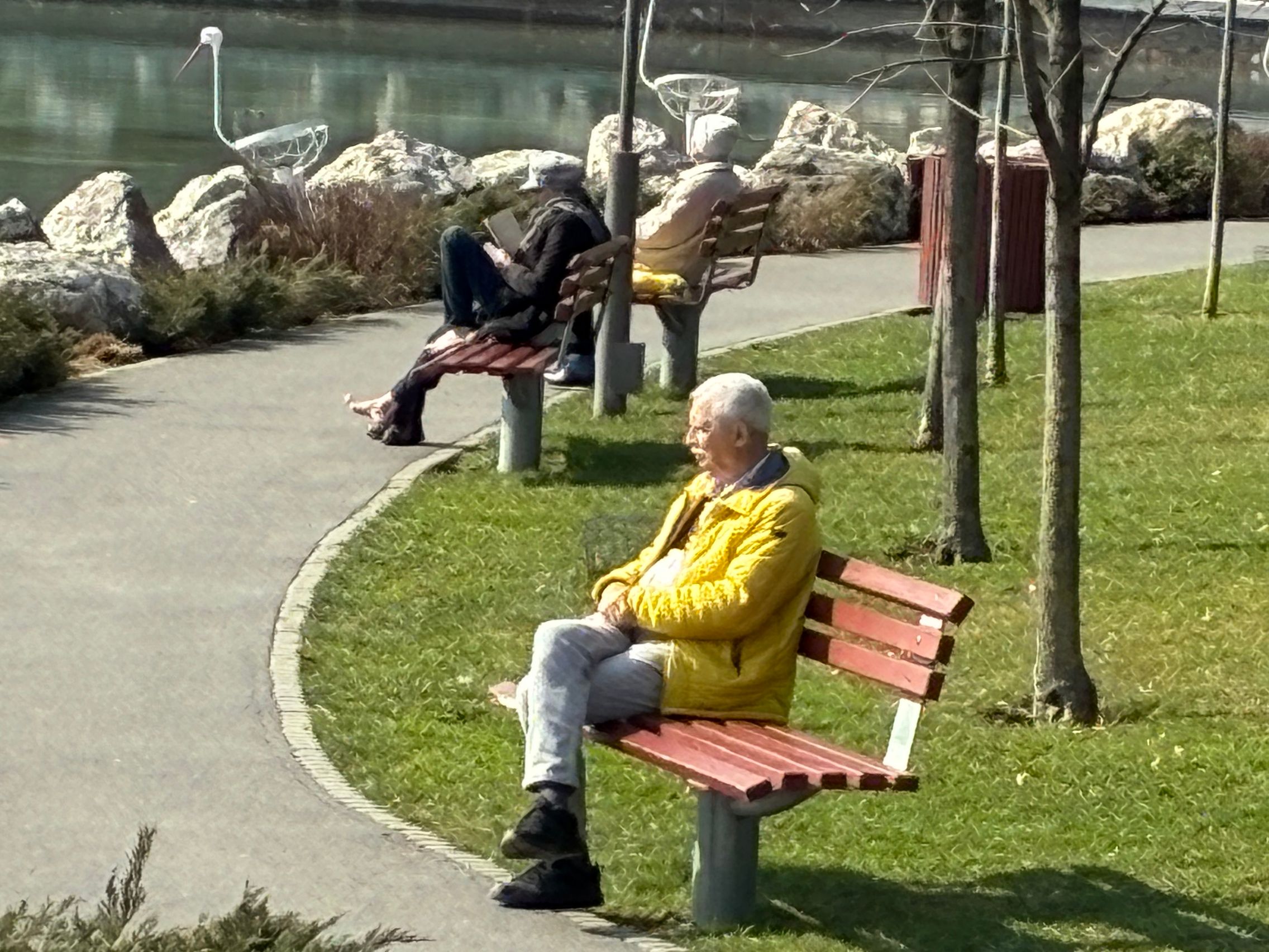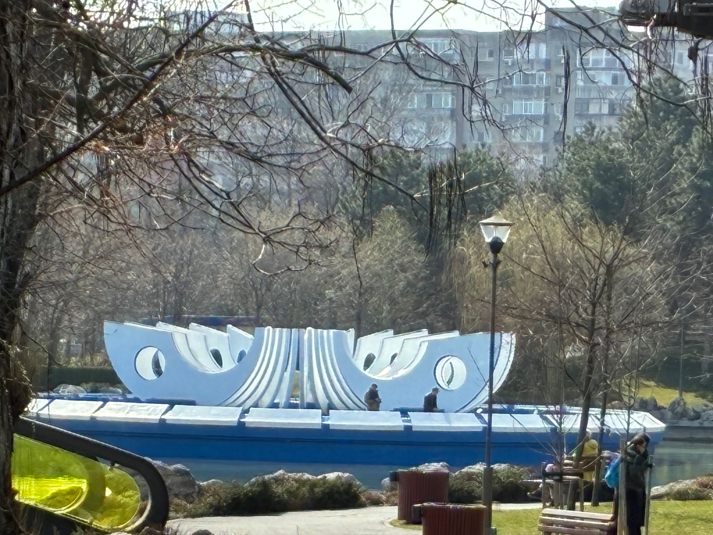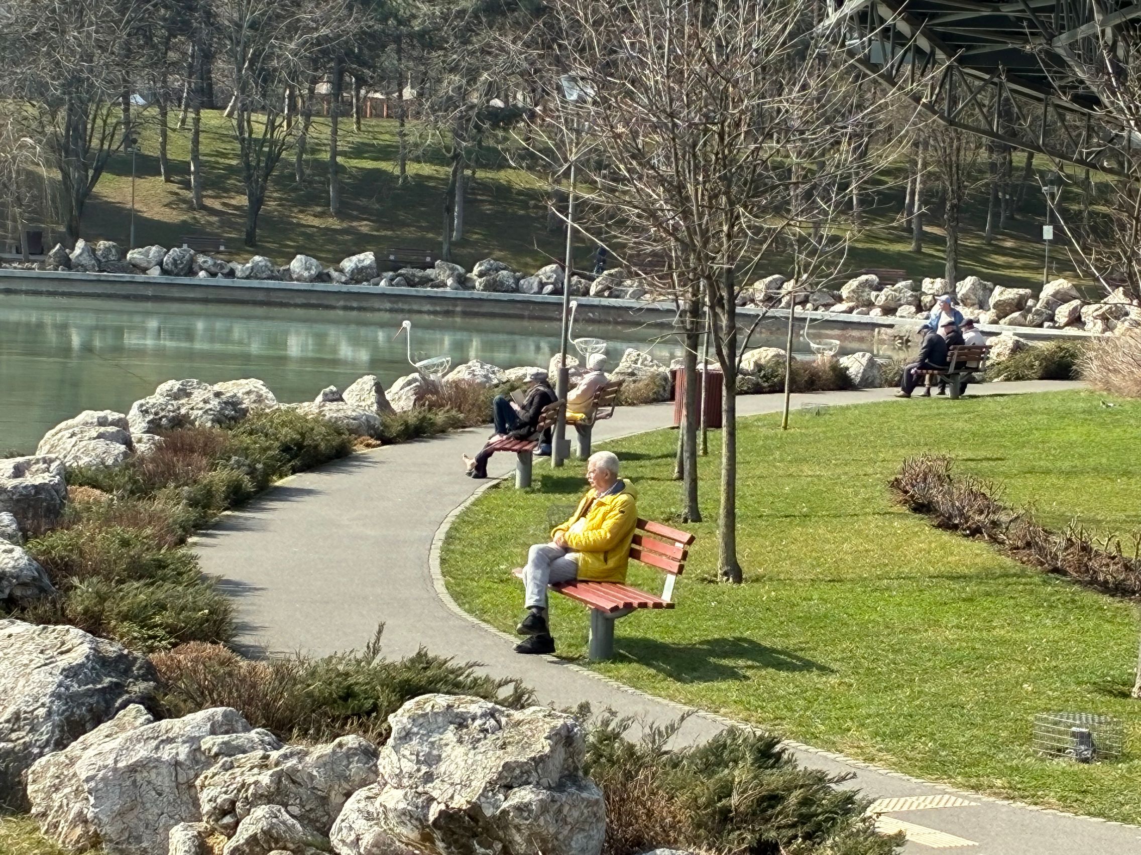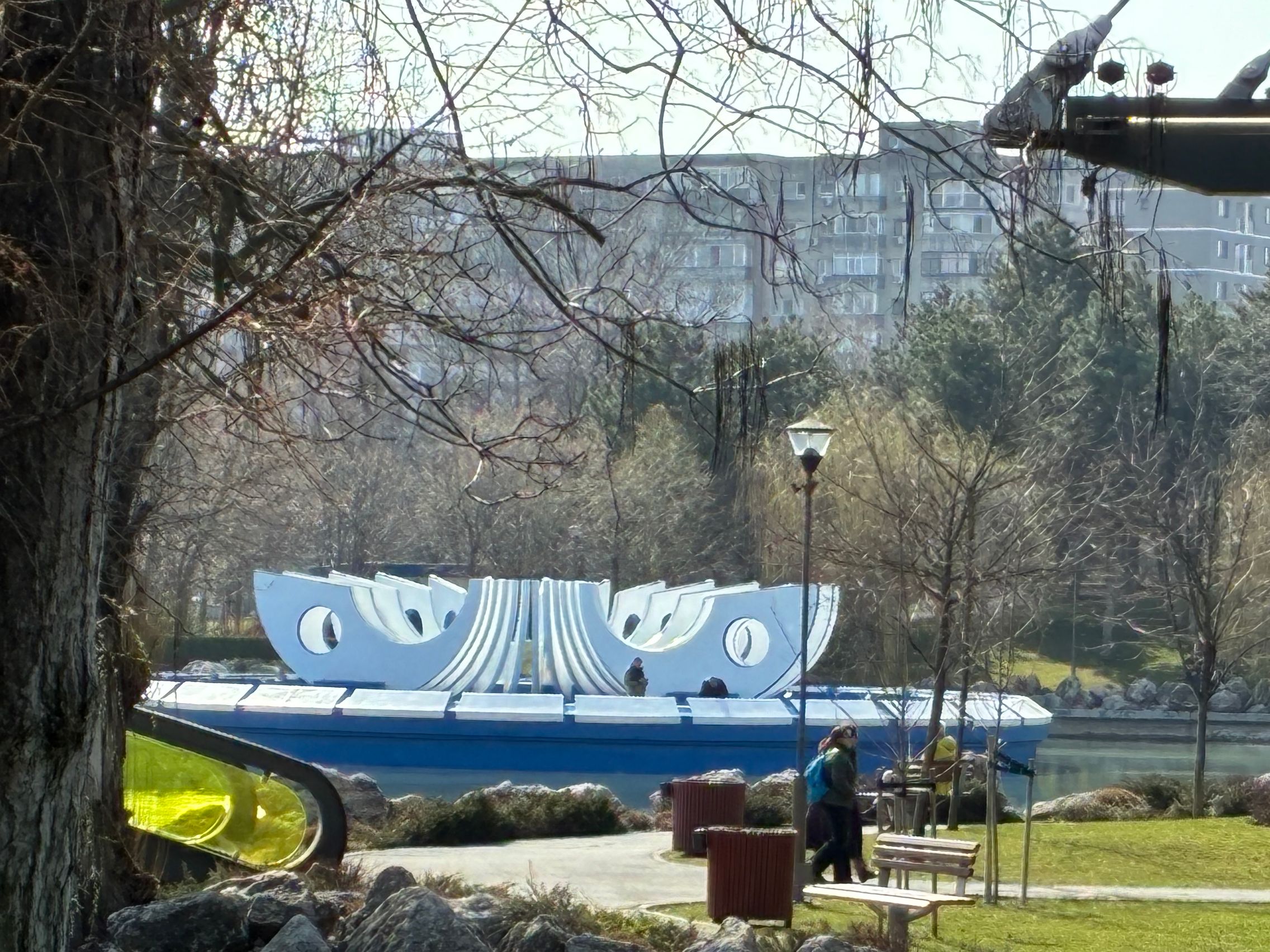 Culorile gardului sunt 1:1 cu ce am văzut și la foto și în realitate. Testul de stabilizare este reușit și la urcarea treptelor din parc. Am dat apoi și zoom spre fântâna din mijlocul lacului, iar pentru nivelul 6x maxim nu e tocmai rău. Am dat zoom și spre un nene cu geacă galbenă care se bucura de soarele cald de primăvară, iar panomarea e smooth, fără trepidații sau ezitări.