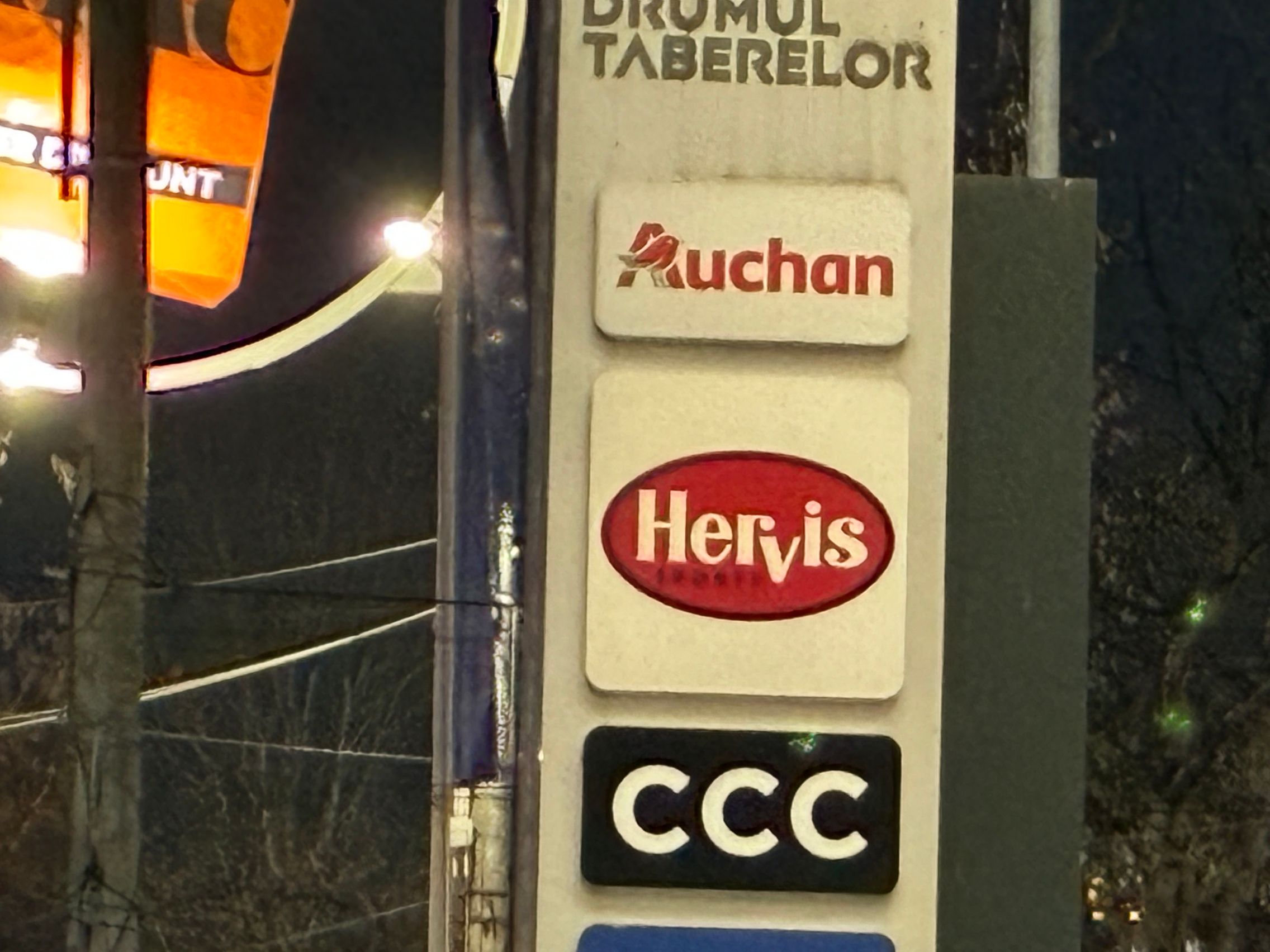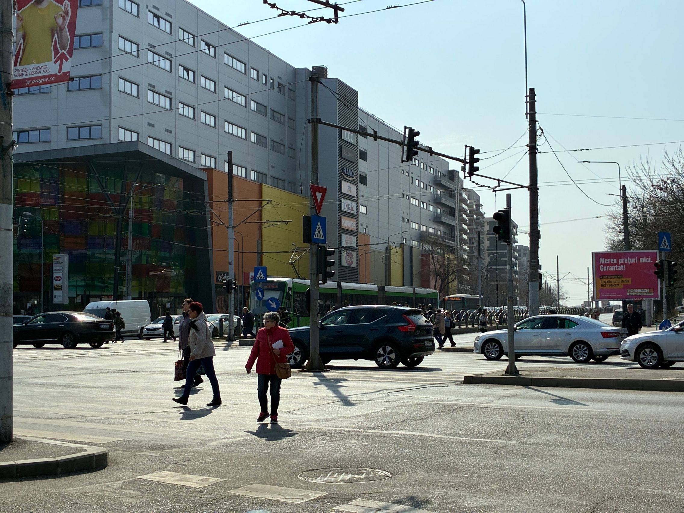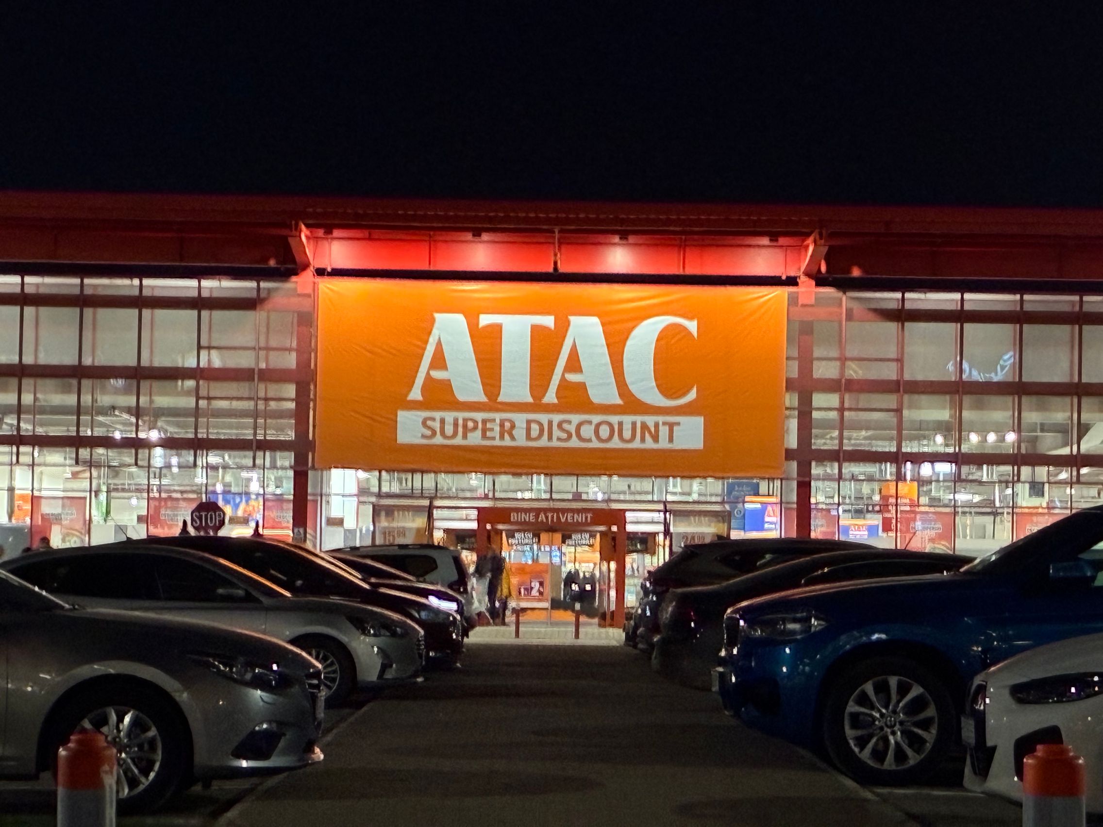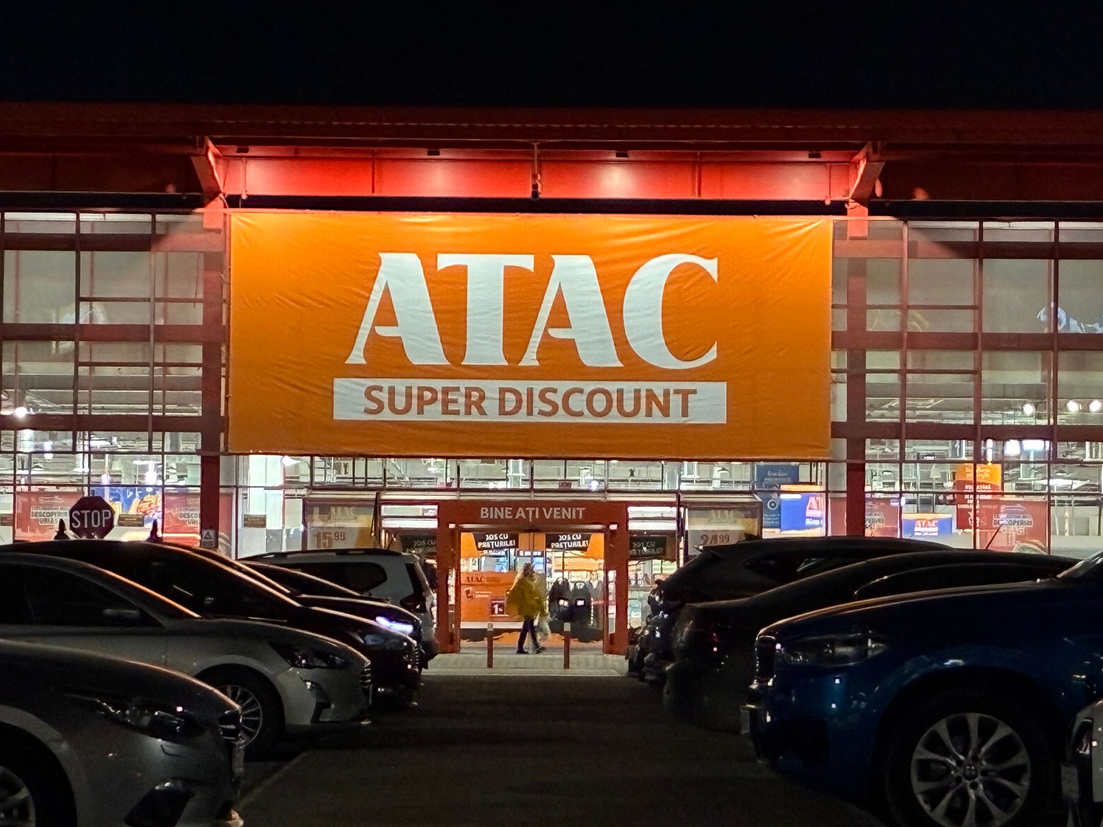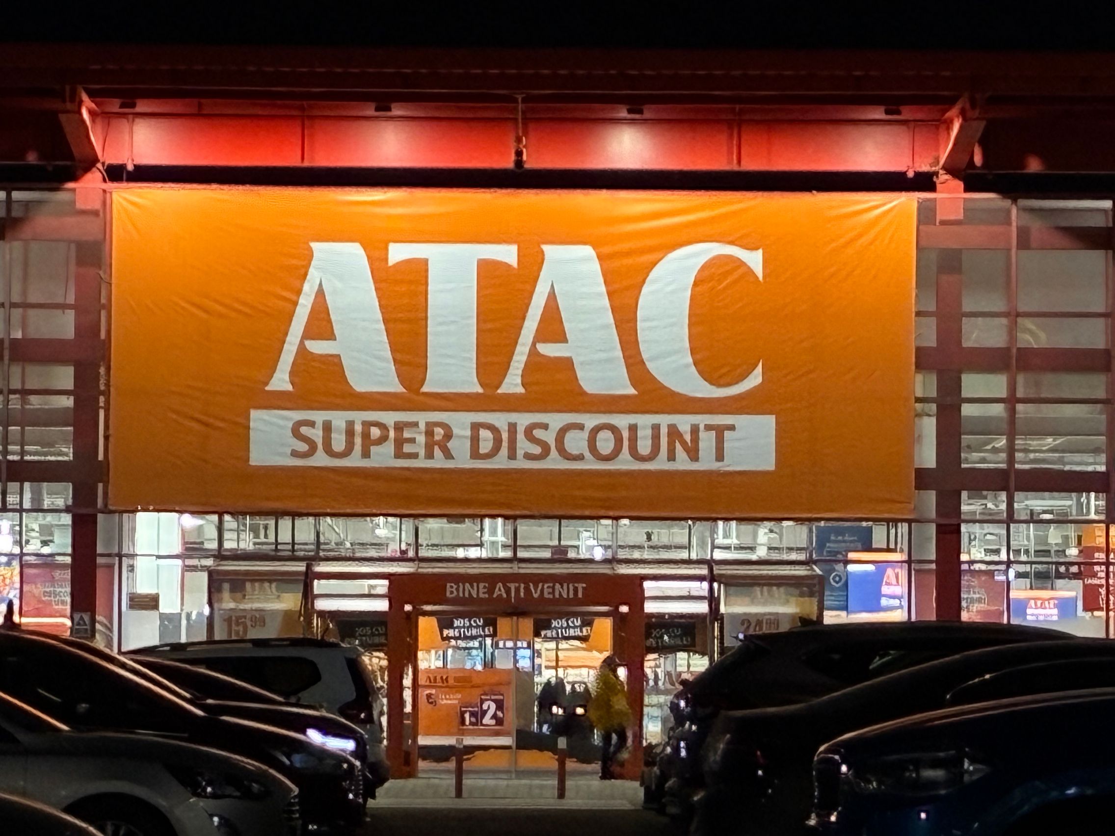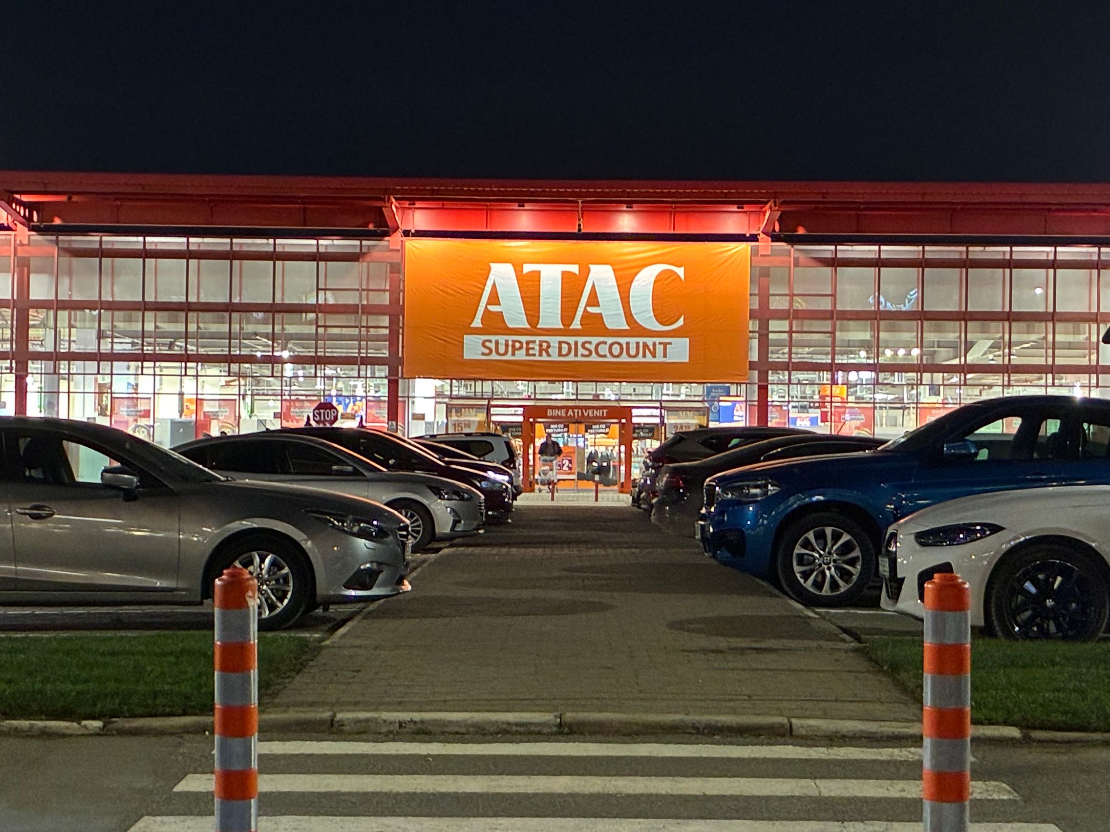 Fațada de sticlă de la Auchan multicoloră îmi place mult iar dacă tot vorbeam de zoom nocturn, parcă la cadrele pe magazinul Atac camera face o impresie mai bună decât la început. Posterele stradale arată savuros, la fel și tramvaiul cu mesaje motivaționale. Sunt bine reprezentate și siglele luminoase de la magazine, mai ales Ciorbe și Plăcinte cu acel roșu vibrant.