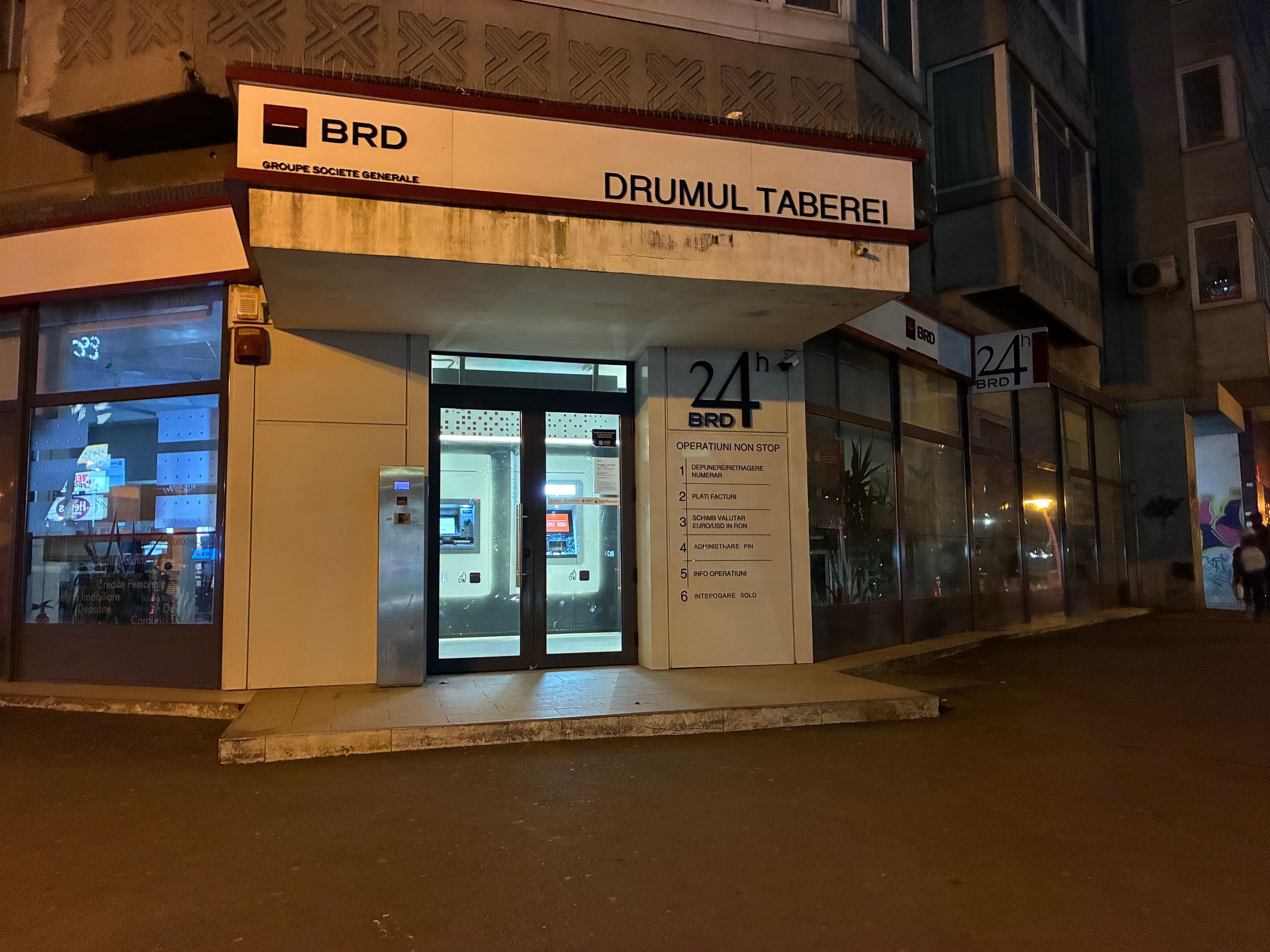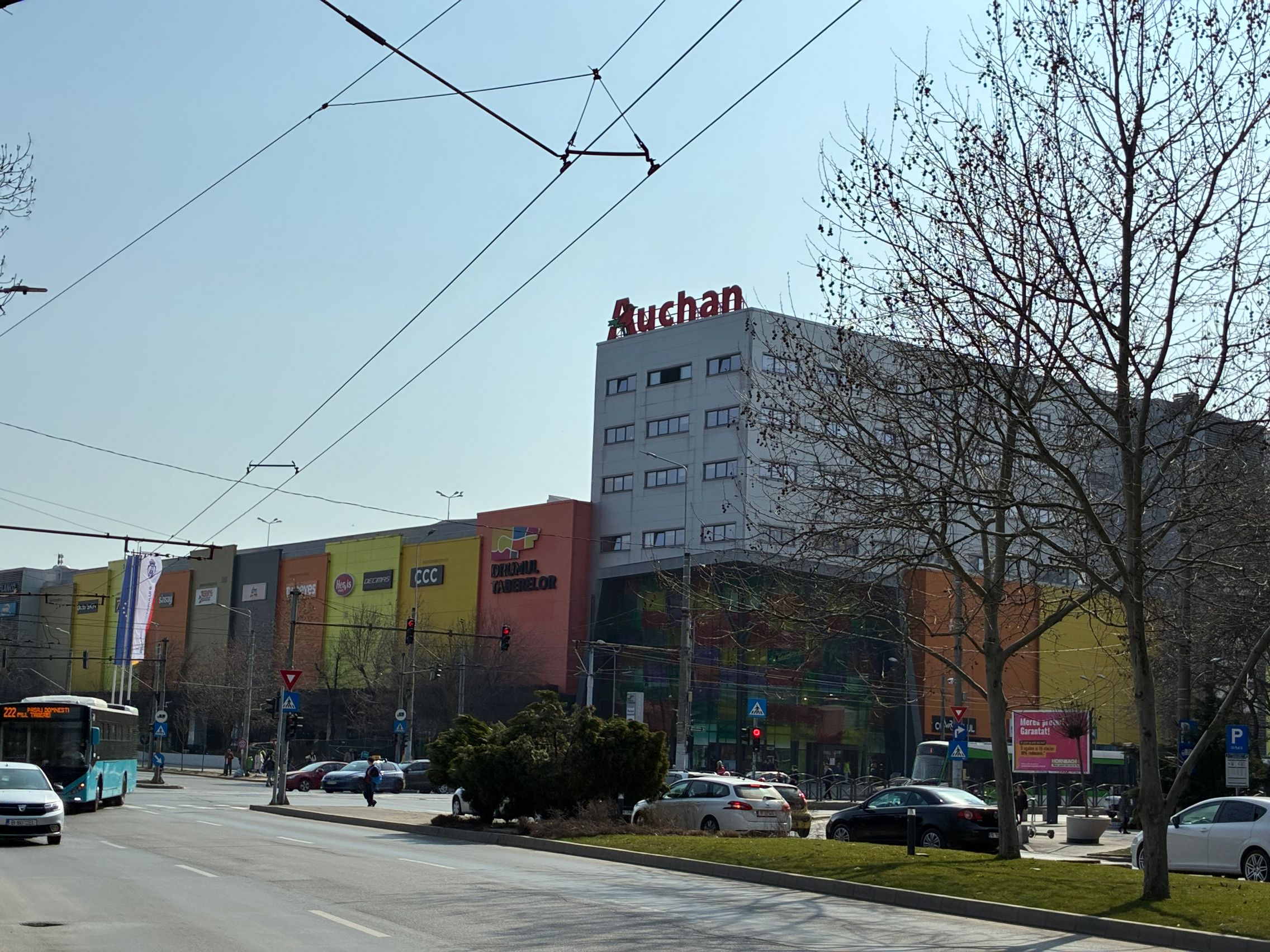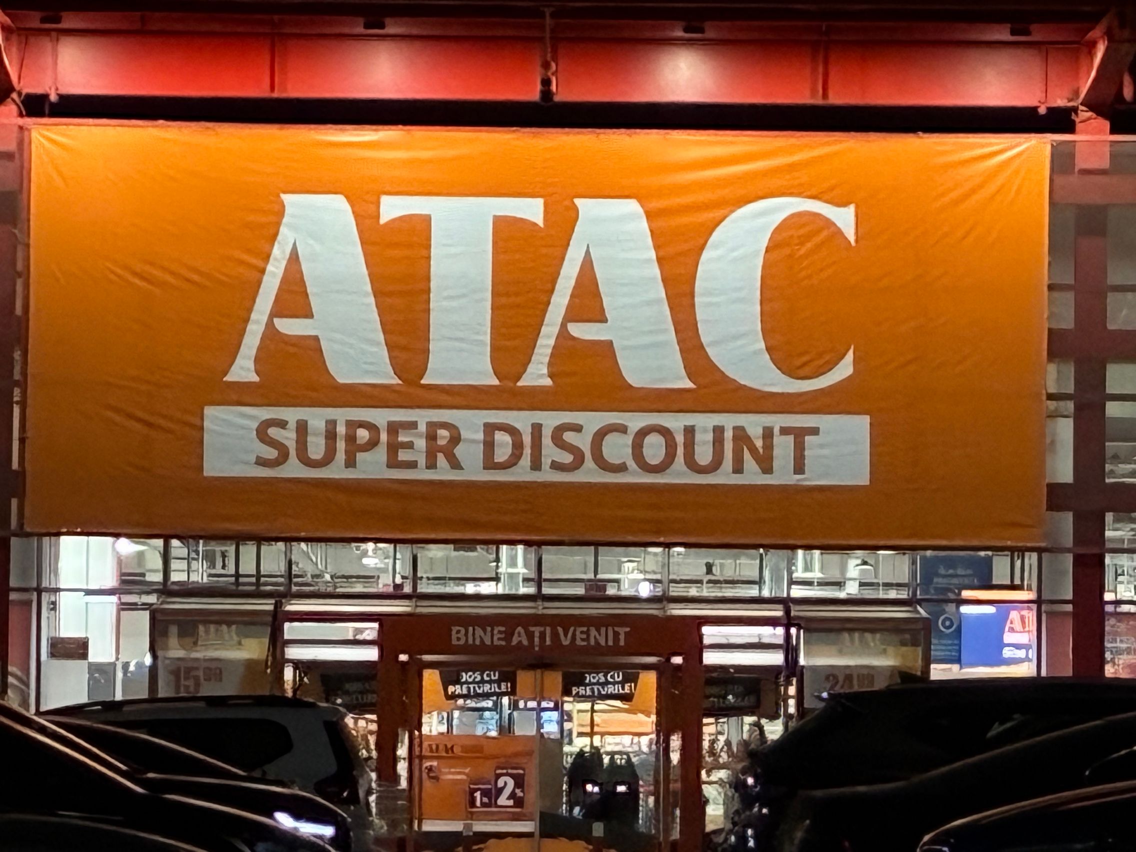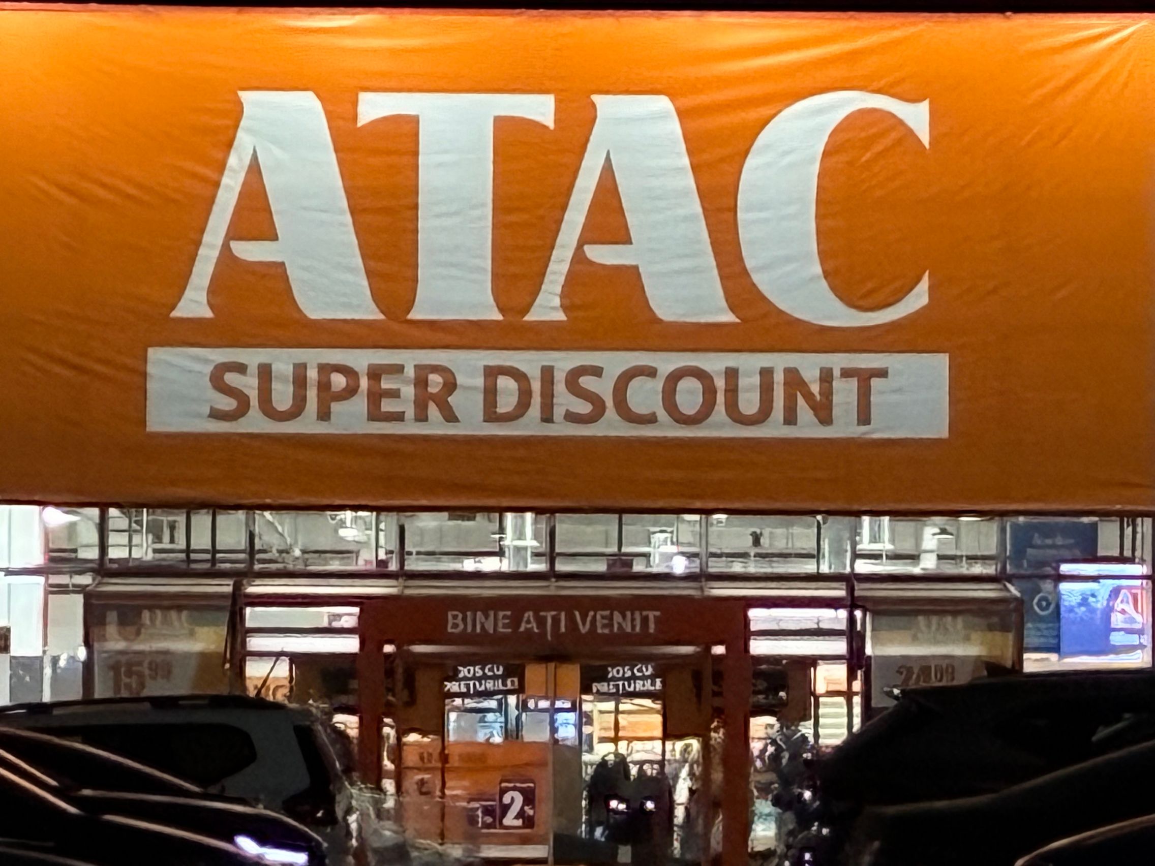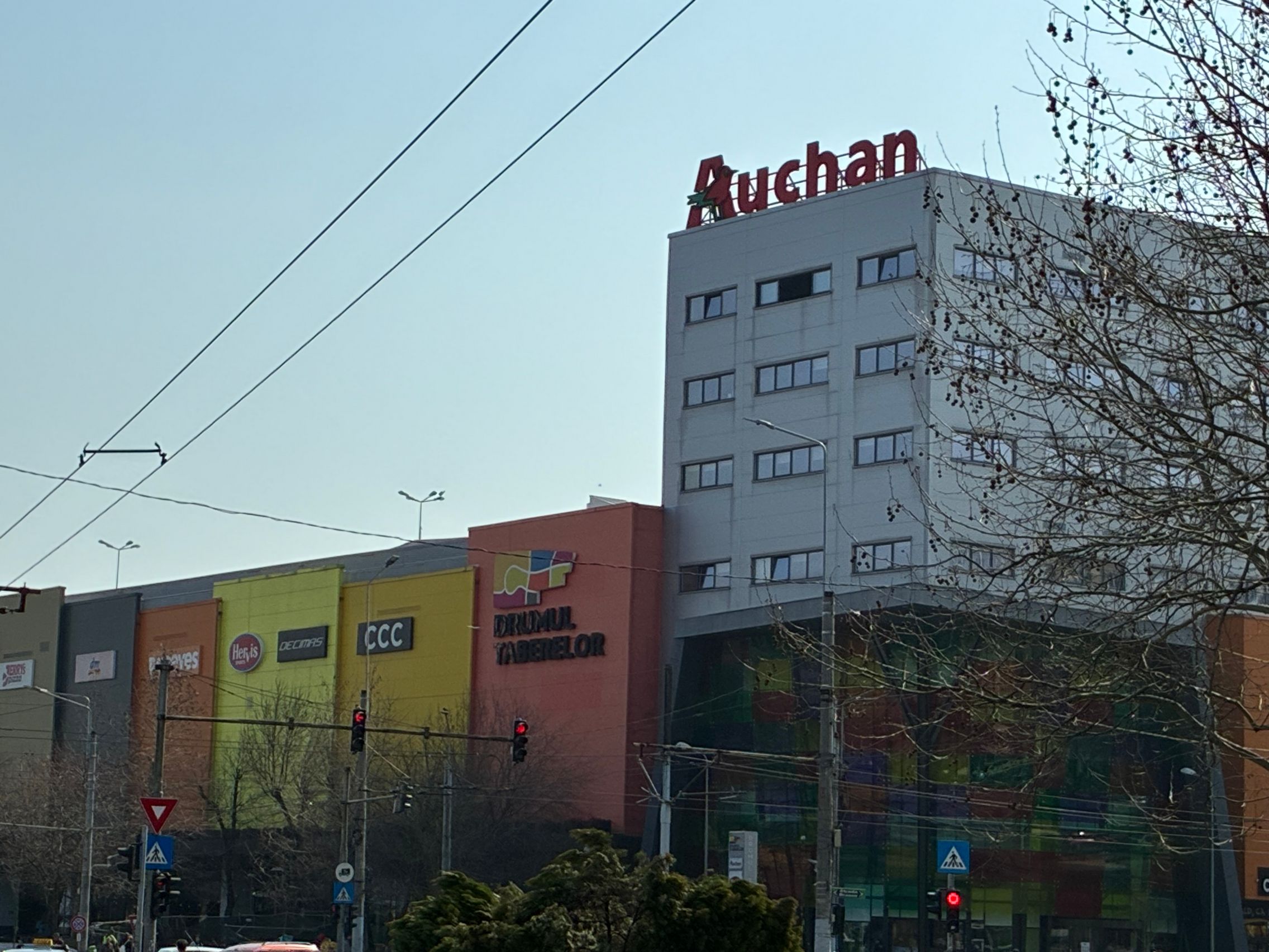 Fațada de sticlă de la Auchan multicoloră îmi place mult iar dacă tot vorbeam de zoom nocturn, parcă la cadrele pe magazinul Atac camera face o impresie mai bună decât la început. Posterele stradale arată savuros, la fel și tramvaiul cu mesaje motivaționale. Sunt bine reprezentate și siglele luminoase de la magazine, mai ales Ciorbe și Plăcinte cu acel roșu vibrant.