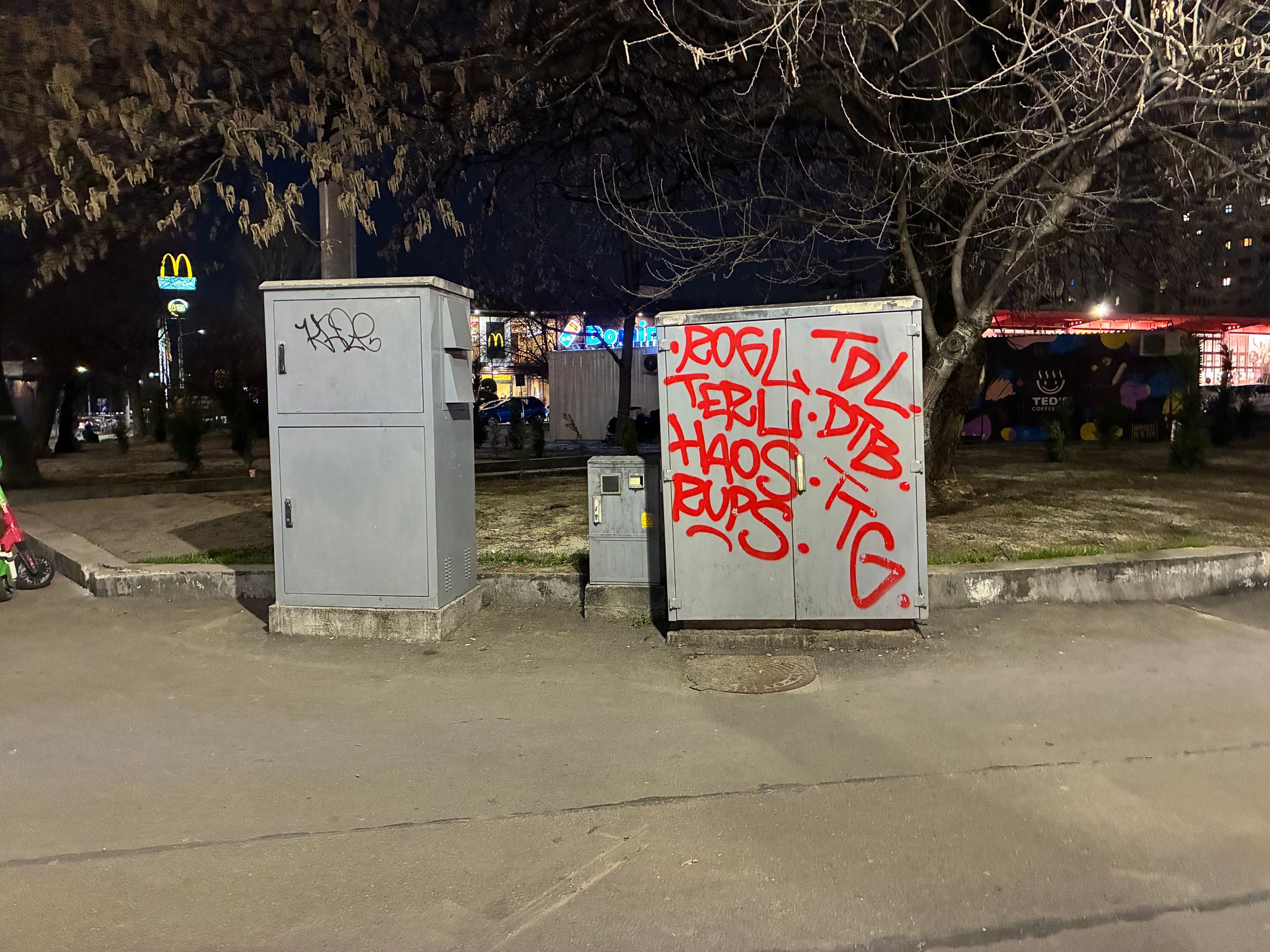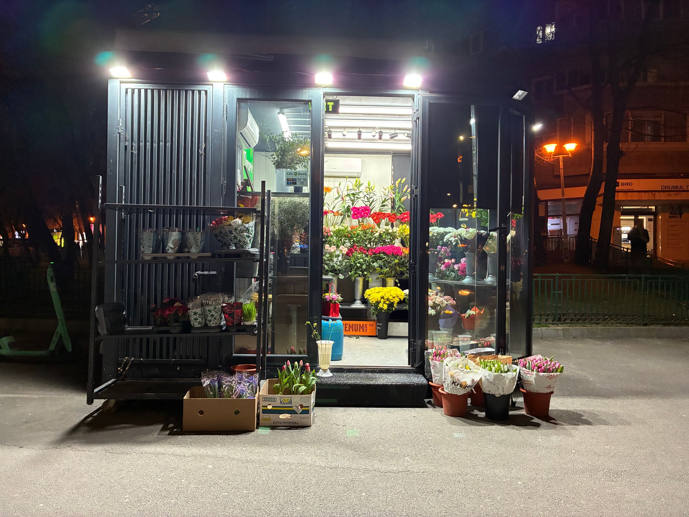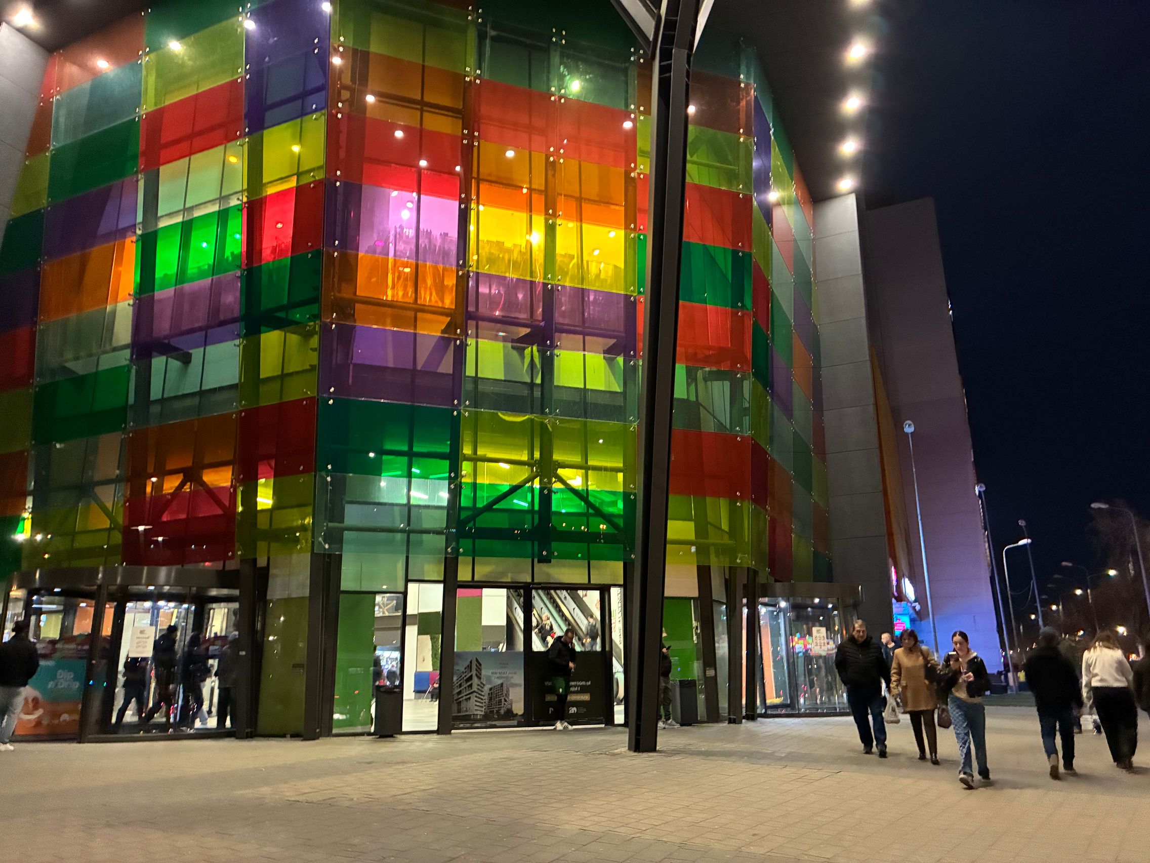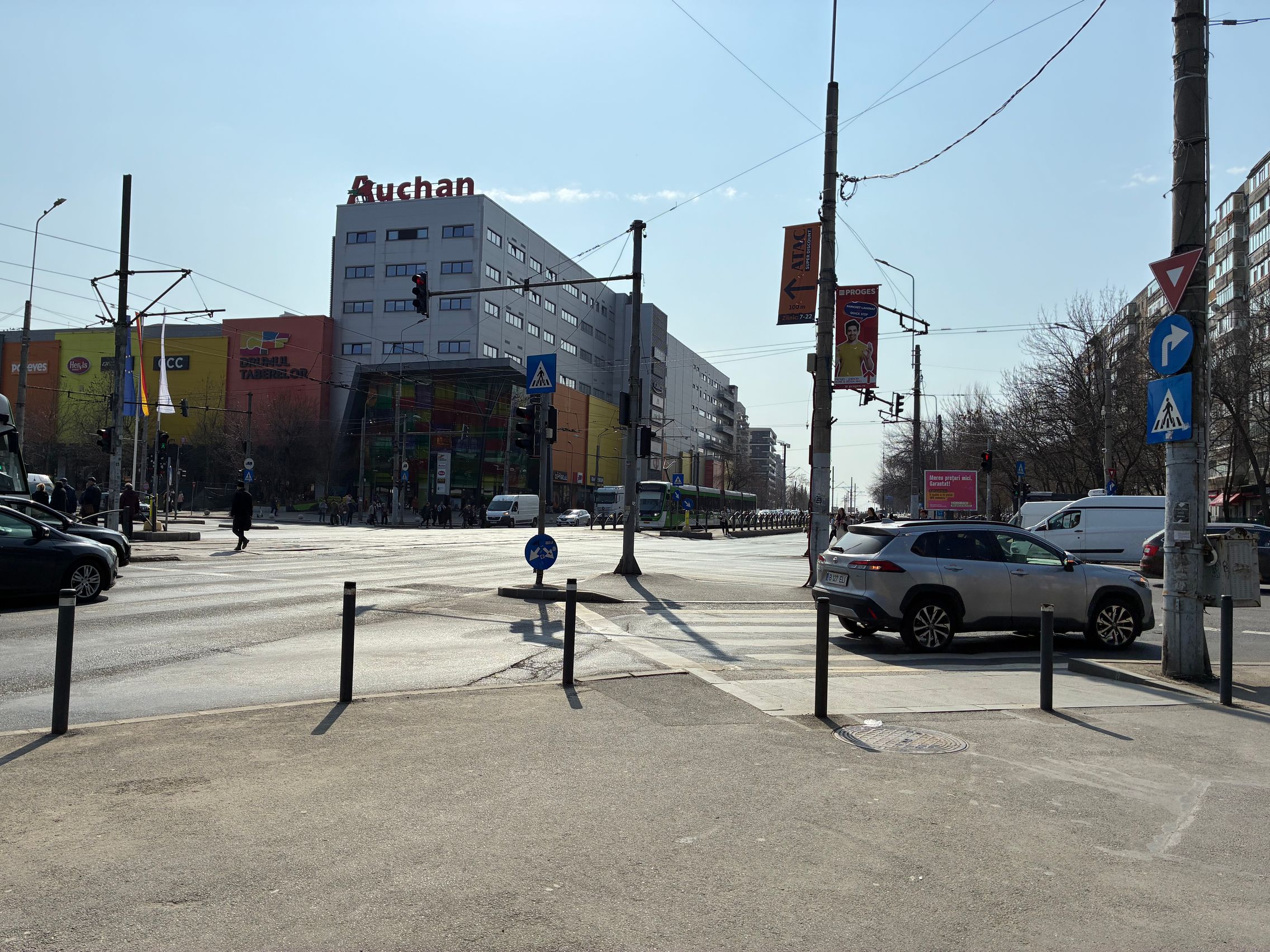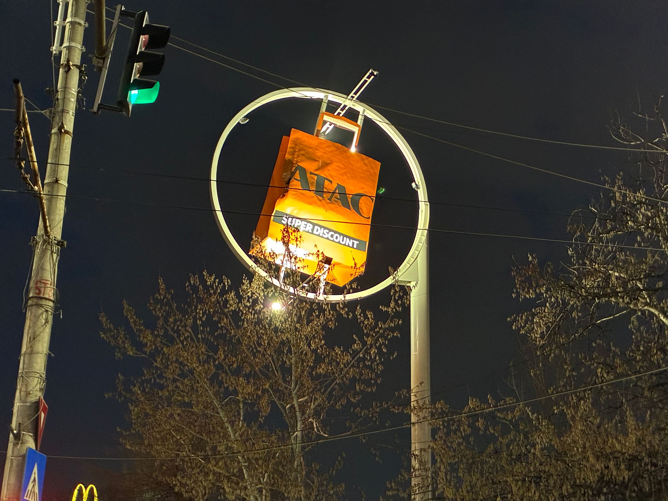 Fațada de sticlă de la Auchan multicoloră îmi place mult iar dacă tot vorbeam de zoom nocturn, parcă la cadrele pe magazinul Atac camera face o impresie mai bună decât la început. Posterele stradale arată savuros, la fel și tramvaiul cu mesaje motivaționale. Sunt bine reprezentate și siglele luminoase de la magazine, mai ales Ciorbe și Plăcinte cu acel roșu vibrant.
