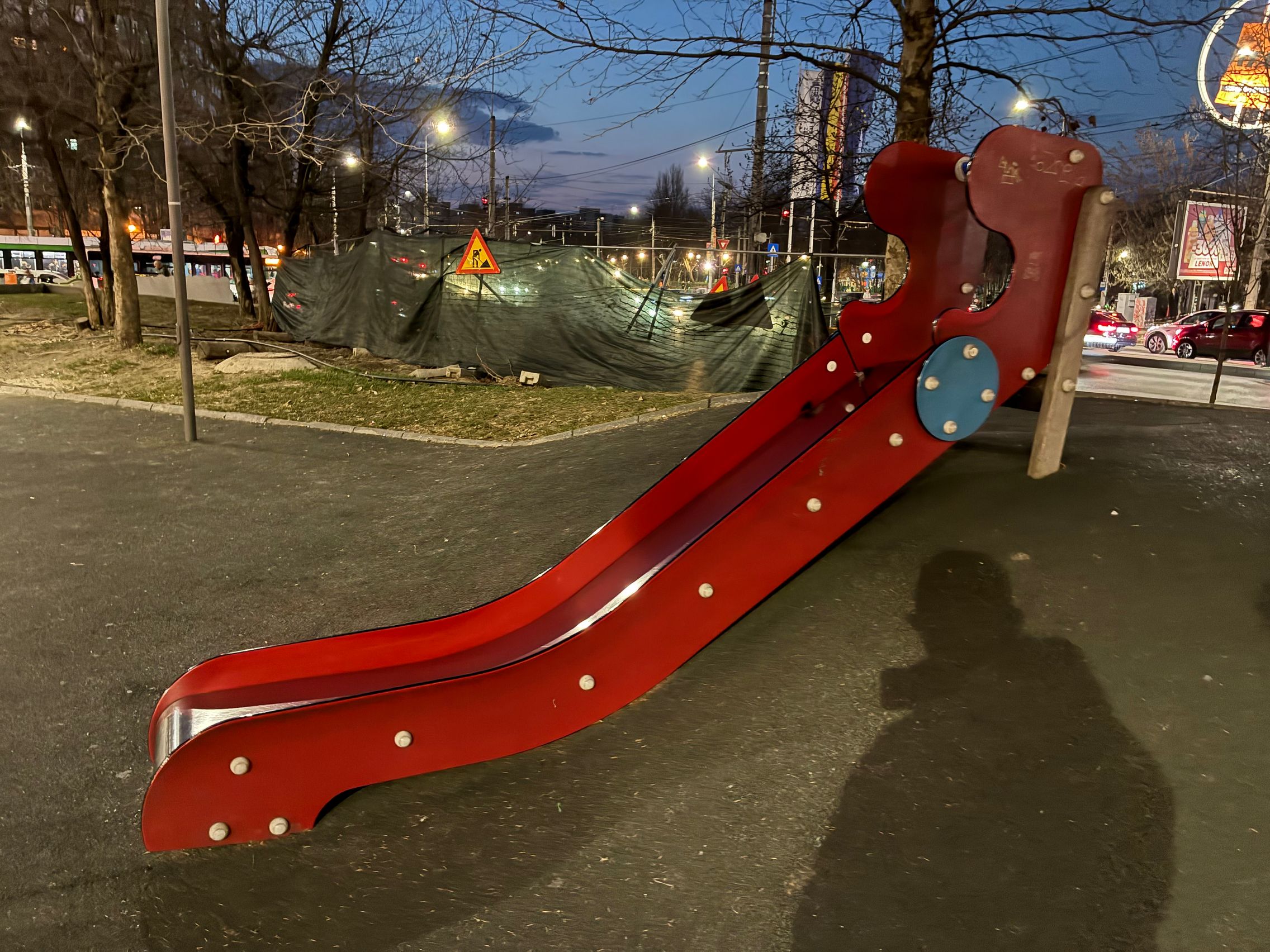 Odată ce s-a lăsat seara am pornit și la mostrele nocturne, cu un prin cadru de apus primăvăratic și halouri portocalii strălucitoare, un golden hour de Drumul Taberei. Camera rămâne capabilă la closeup și îmi plac și selfie-urile, cele realizate cu lumină suficientă în cadru. Roșul acelui tobogan arată foarte bine, vezi diferența umbră-lumină. Am dat uneori și zoom dar nu e prea bună treaba aici, cu zgomot prezent.
