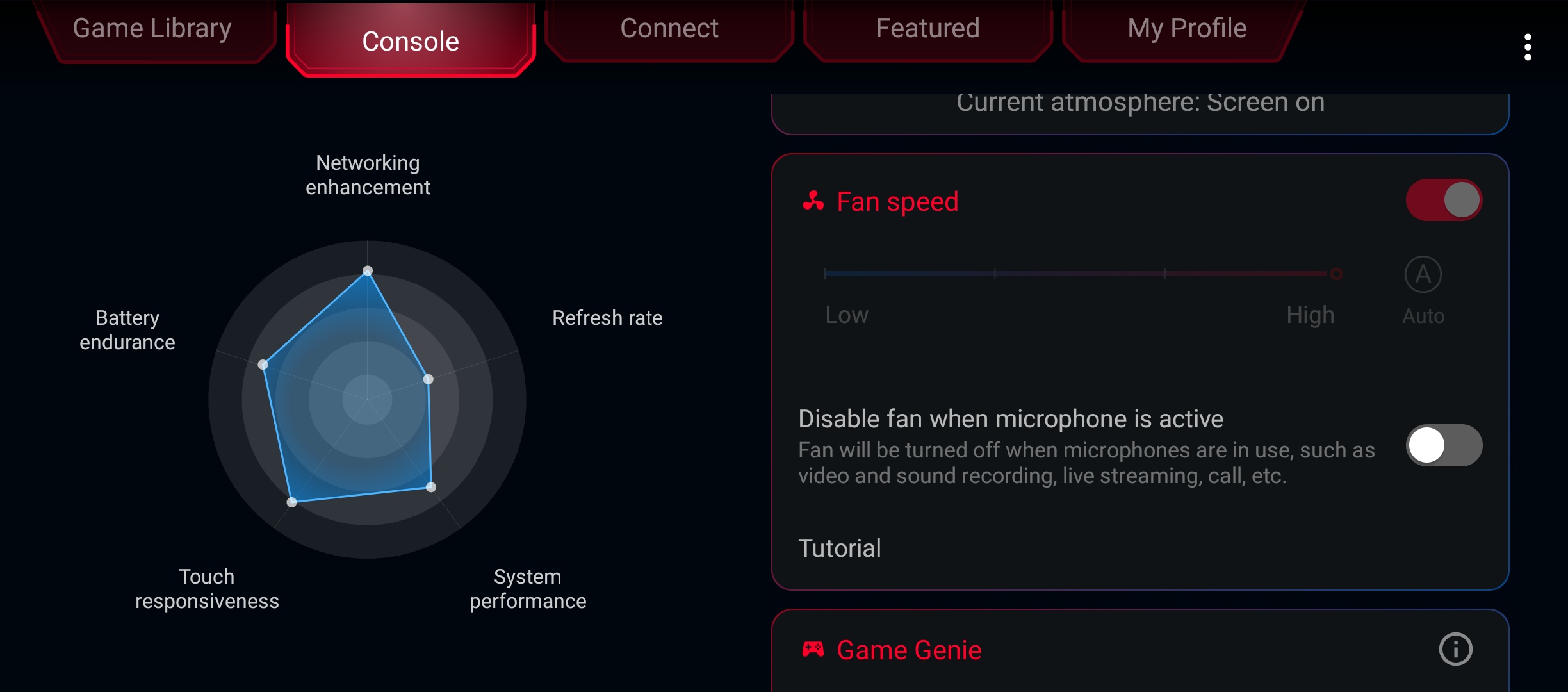 Game Genie se află și el aici și aduce o mulțime de opțiuni pentru gaming. Putem face capturi in-game, dar și streaming pe YouTube sau Twitch. Putem activa modul DND, face key mapping, optimizări și schimba facil iluminarea logo-ului de pe spate și viteza ventilatorului atașat. Avem profiluri pentru fiecare joc, iar butoanele trigger laterale pot fi mapate cu ușurință. Interfața are acum sunete specifice, SF, dar și o ușoară muzică de fundal.