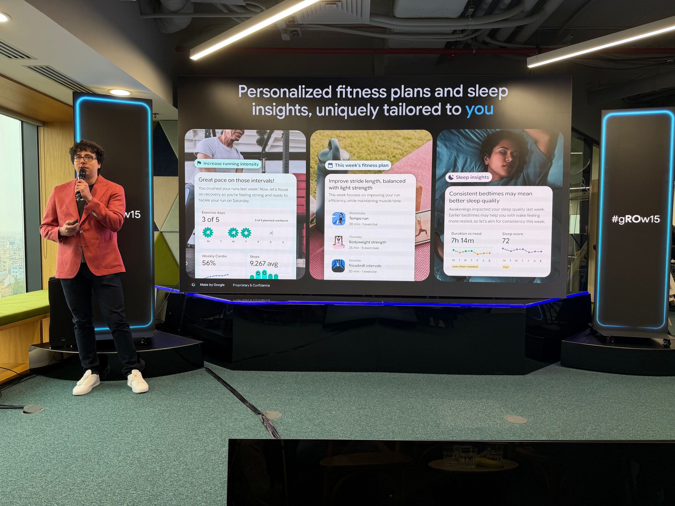 Am văzut de altfel nouă versiune de aplicaţie Fitbit, dar şi un Coach cu AI, care te ghidează să fii mai sănătos. În această toamnă echipă locală de ingineri Google a integrat funcţiile dezvoltate la noi într-un "Antrenor Personal de Sănătate". Experienţa începe cu o "discuţie" de 5-10 minute cu el, ca să îţi înţeleagă obiceiurile. Poţi seta ţinte, etape de progres, sesiuni de sport, verifica progresul şi ajustă programul, dar şi memora preferinţe.