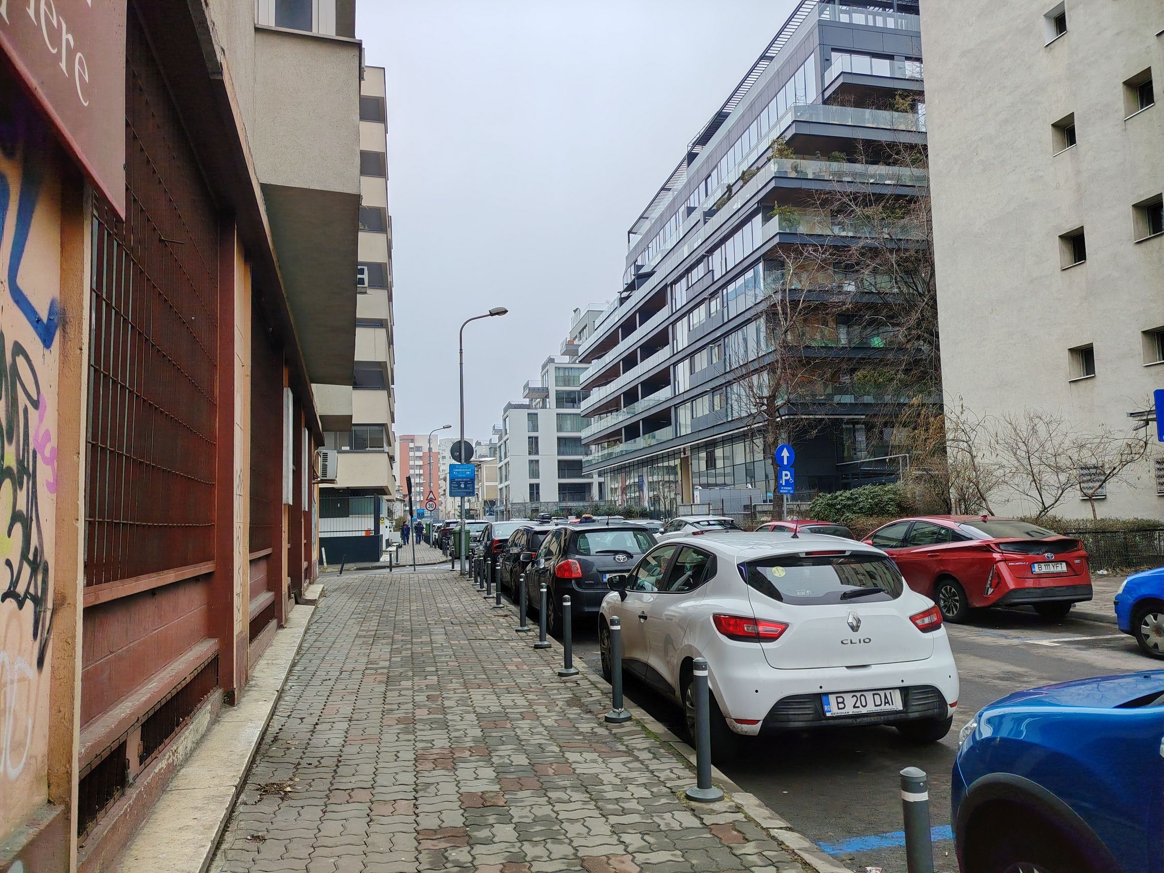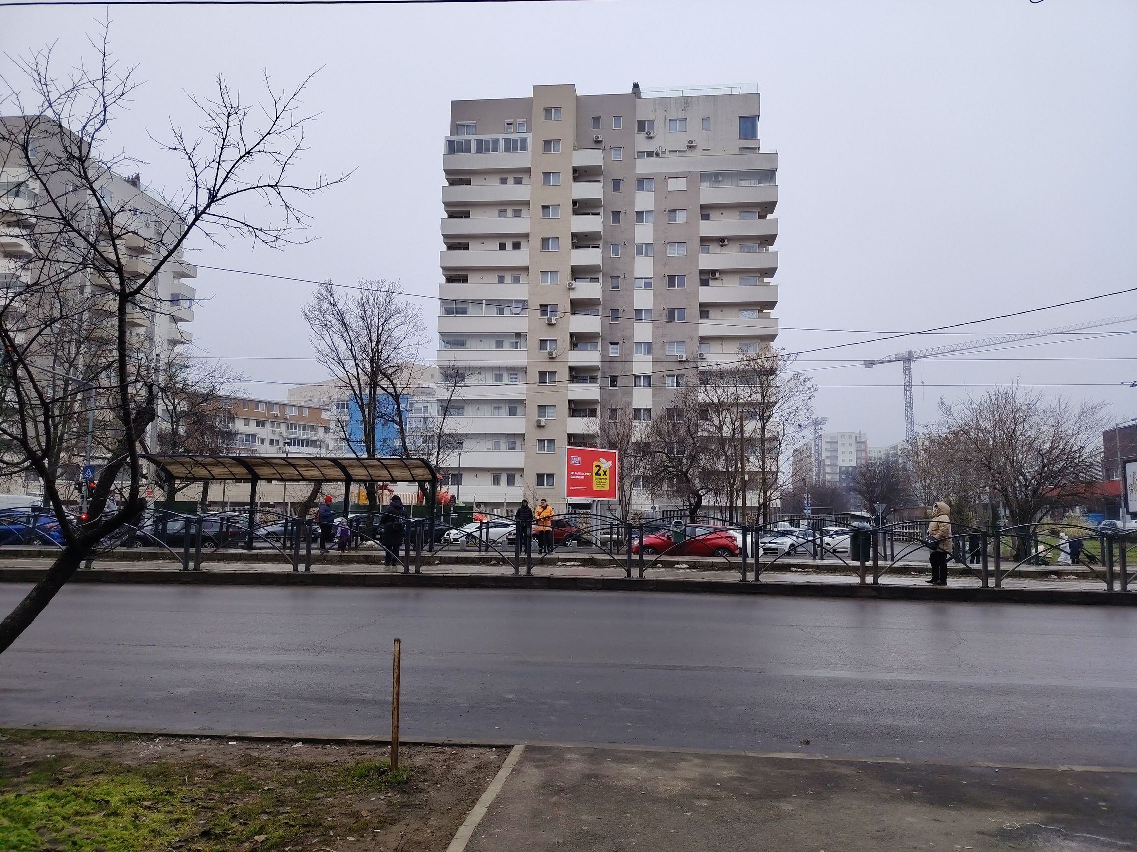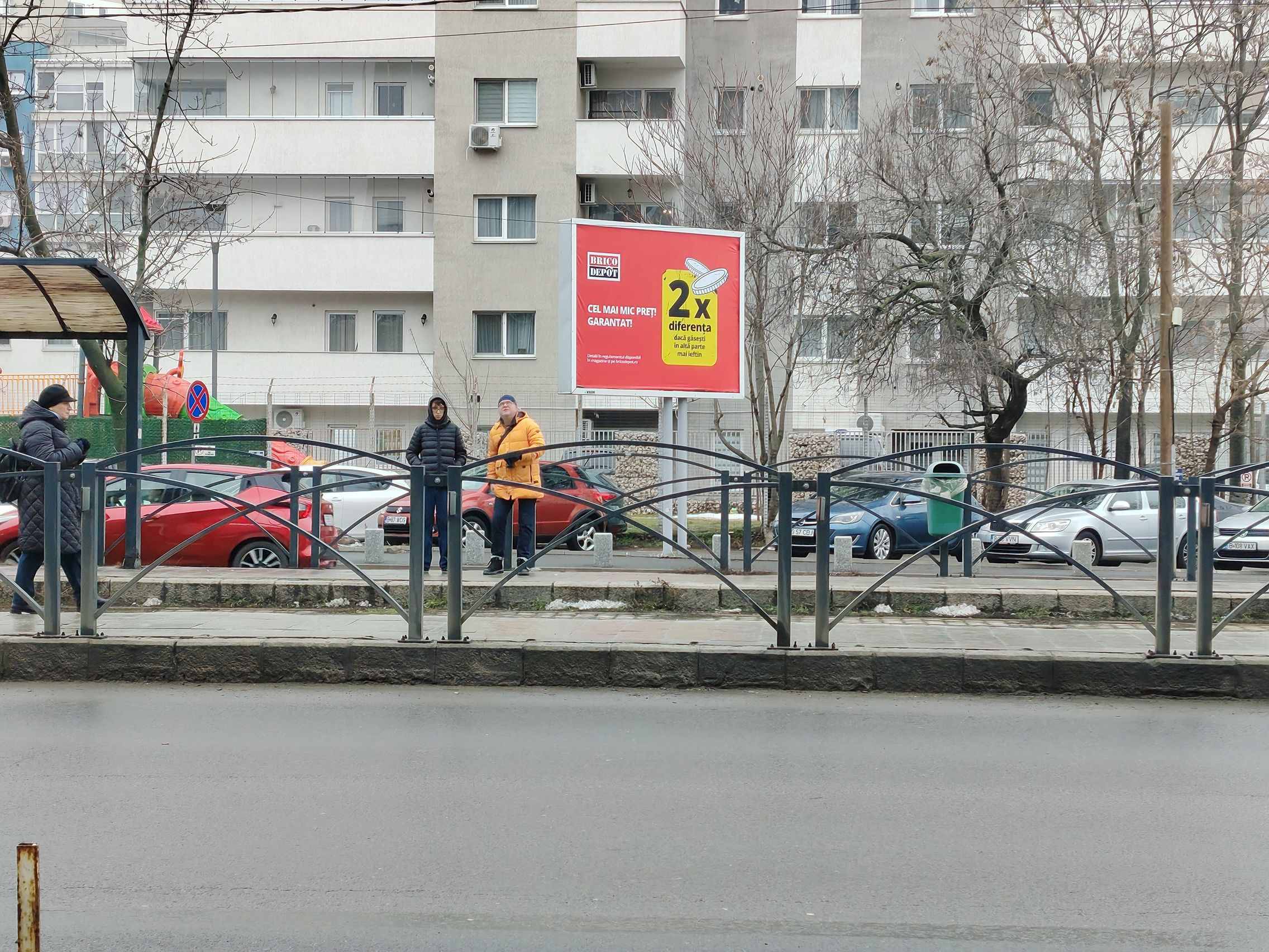 Ultrawide-ul e clar verigă slabă, am remarcat cadre cu detalii slabe şi uşor mov ca tenta. Paradoxal ultrawide-ul produce şi cadre mai luminoase, cu cer complet alb totuşi. Pozele cu camera principală sunt pline de contrast, cu roşu intens şi merg pe realism şi o paletă oarecum limitată de culori. Ziua mohorâtă şi-a pus amprentă şi pe coloristica de aici.