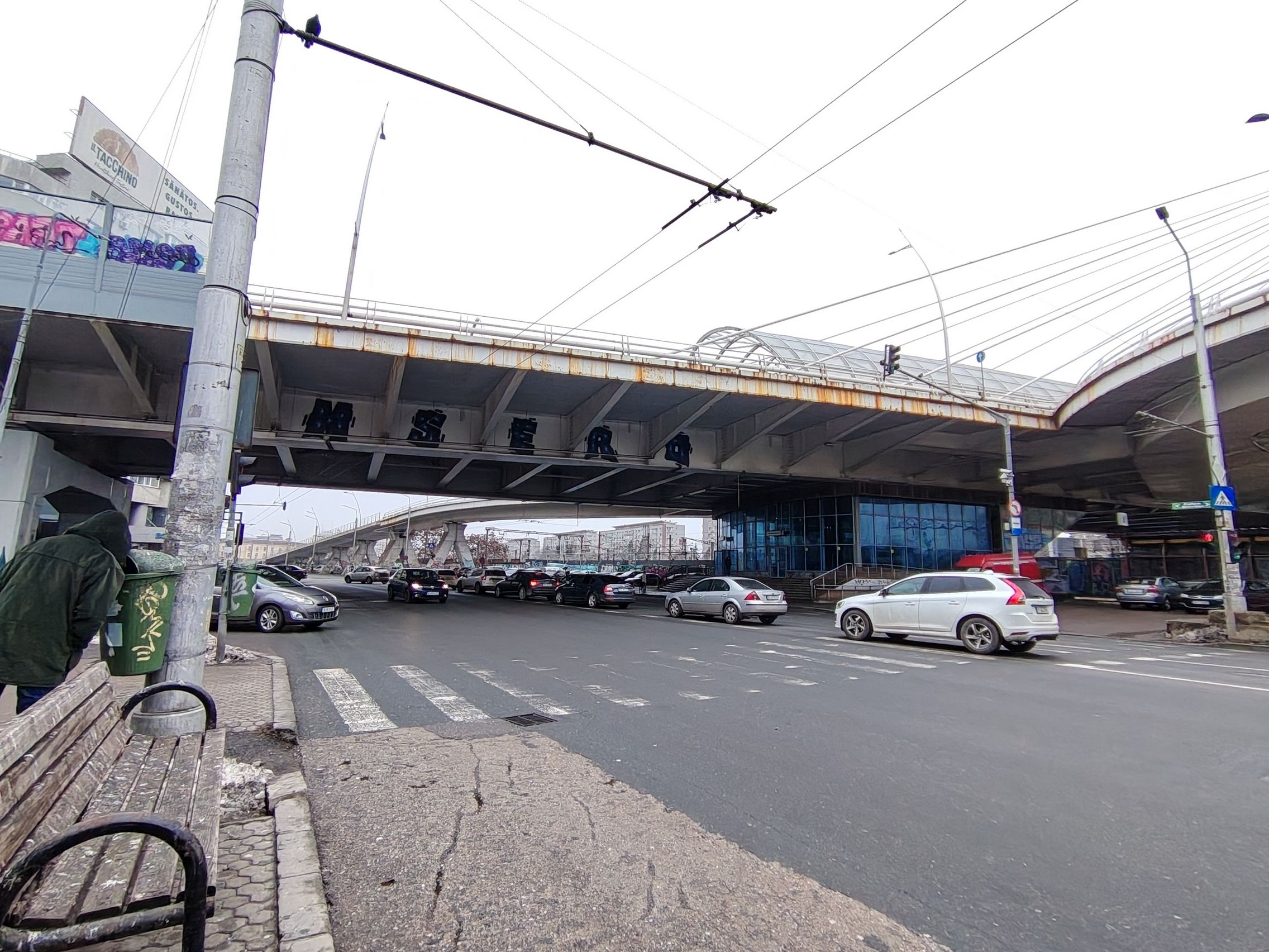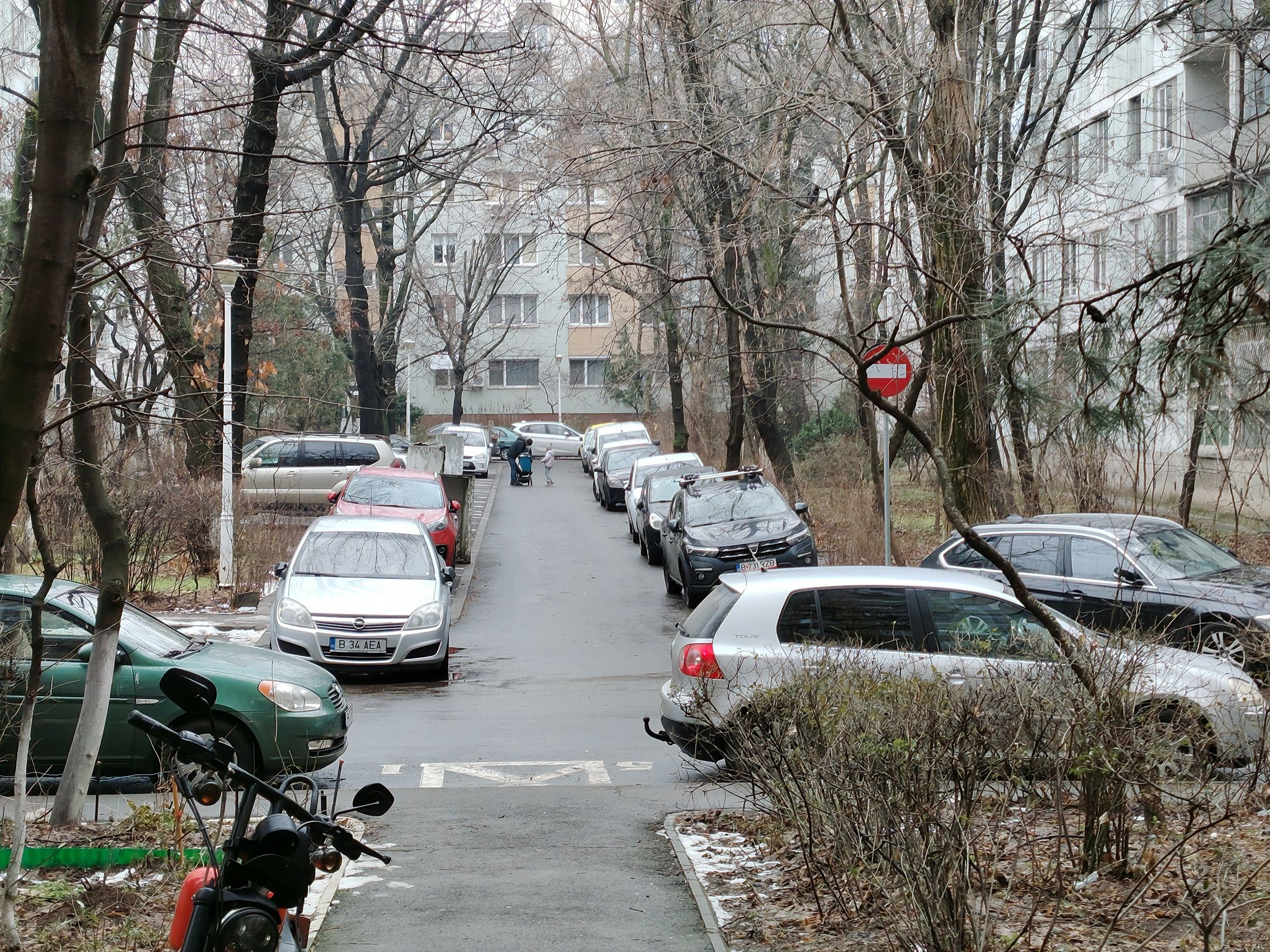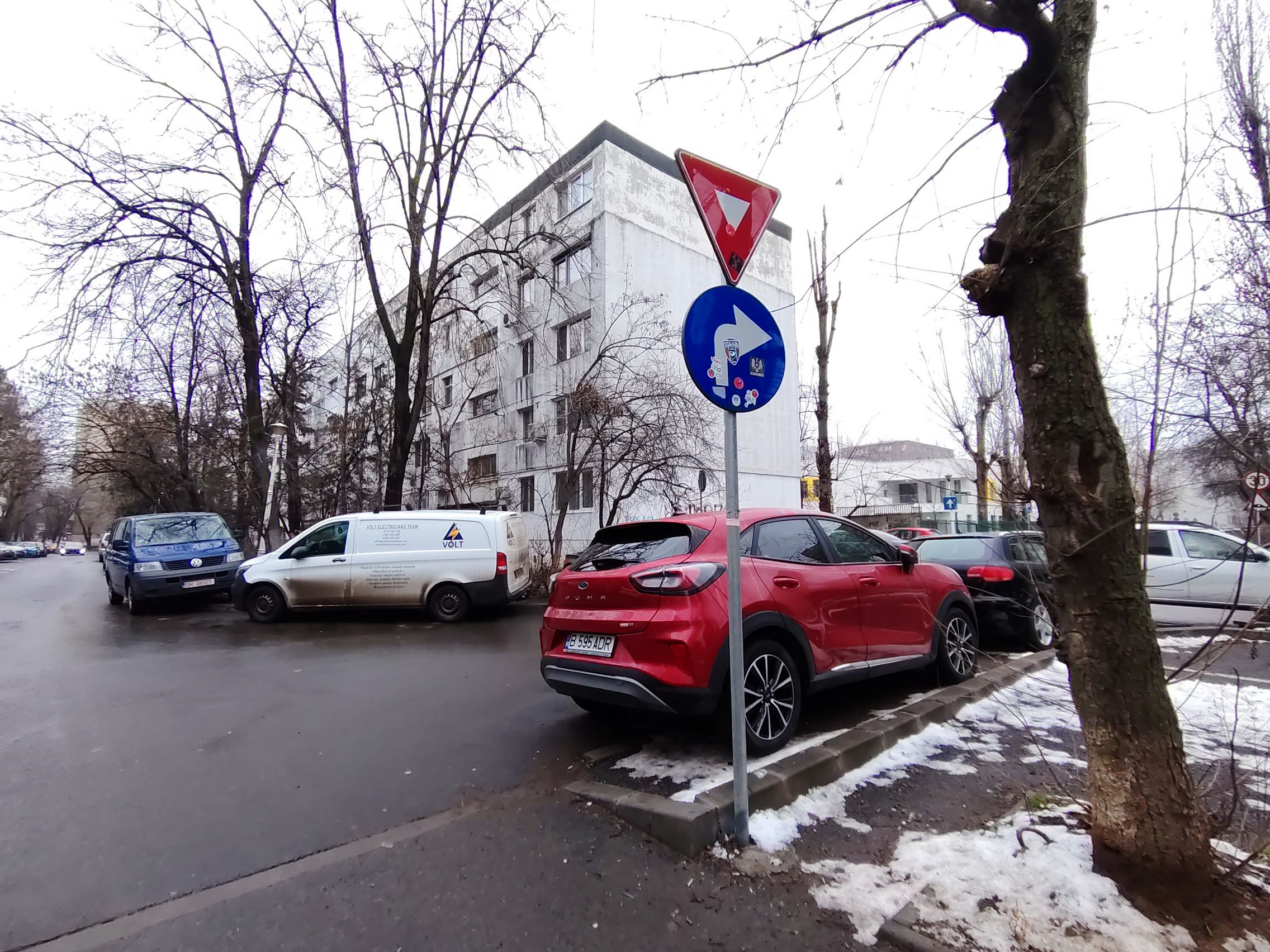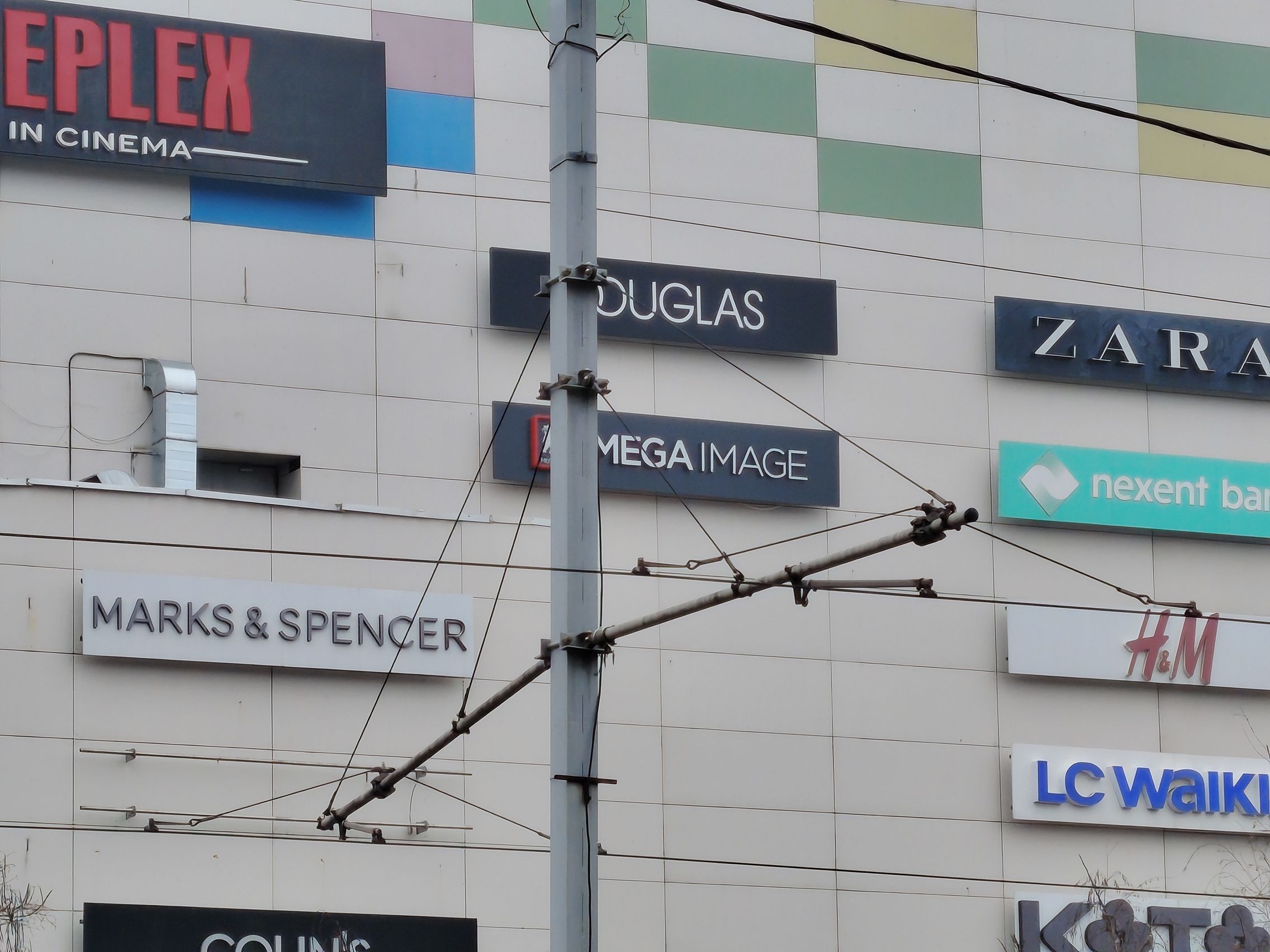 Ultrawide-ul e clar verigă slabă, am remarcat cadre cu detalii slabe şi uşor mov ca tenta. Paradoxal ultrawide-ul produce şi cadre mai luminoase, cu cer complet alb totuşi. Pozele cu camera principală sunt pline de contrast, cu roşu intens şi merg pe realism şi o paletă oarecum limitată de culori. Ziua mohorâtă şi-a pus amprentă şi pe coloristica de aici.