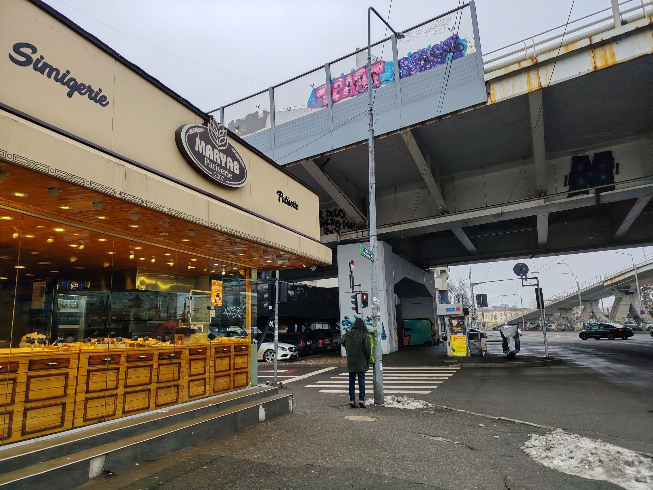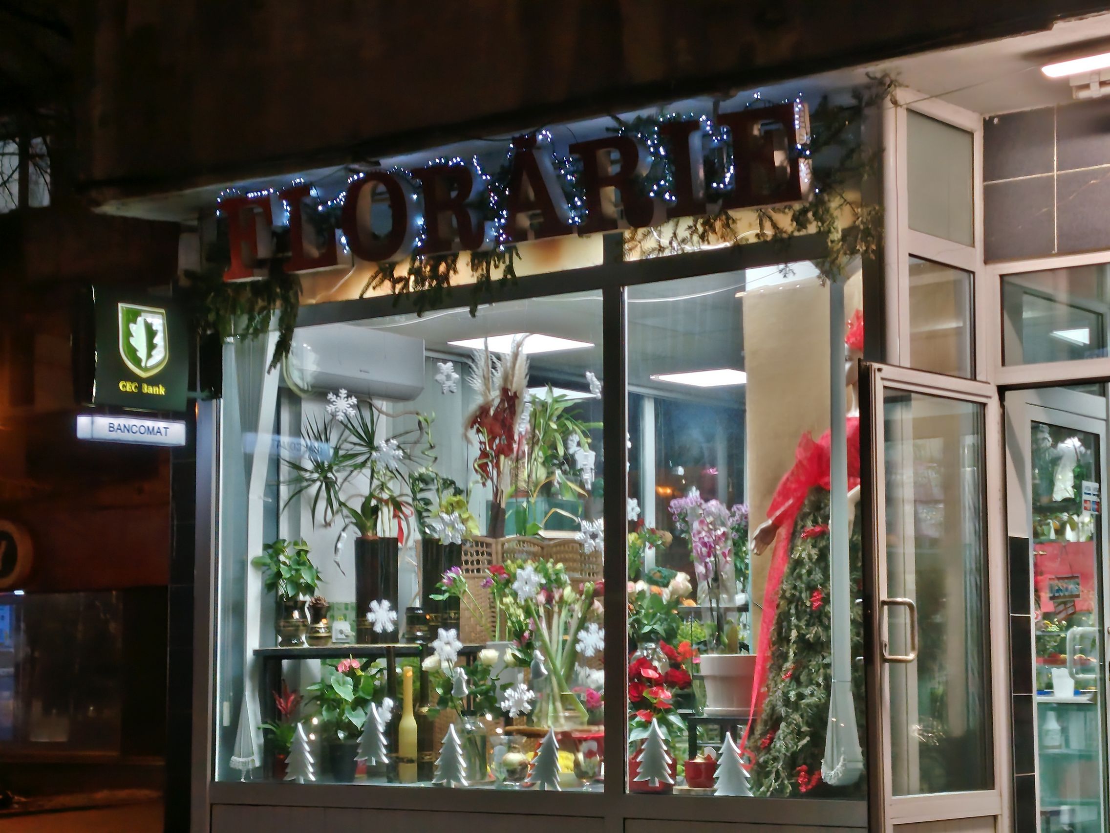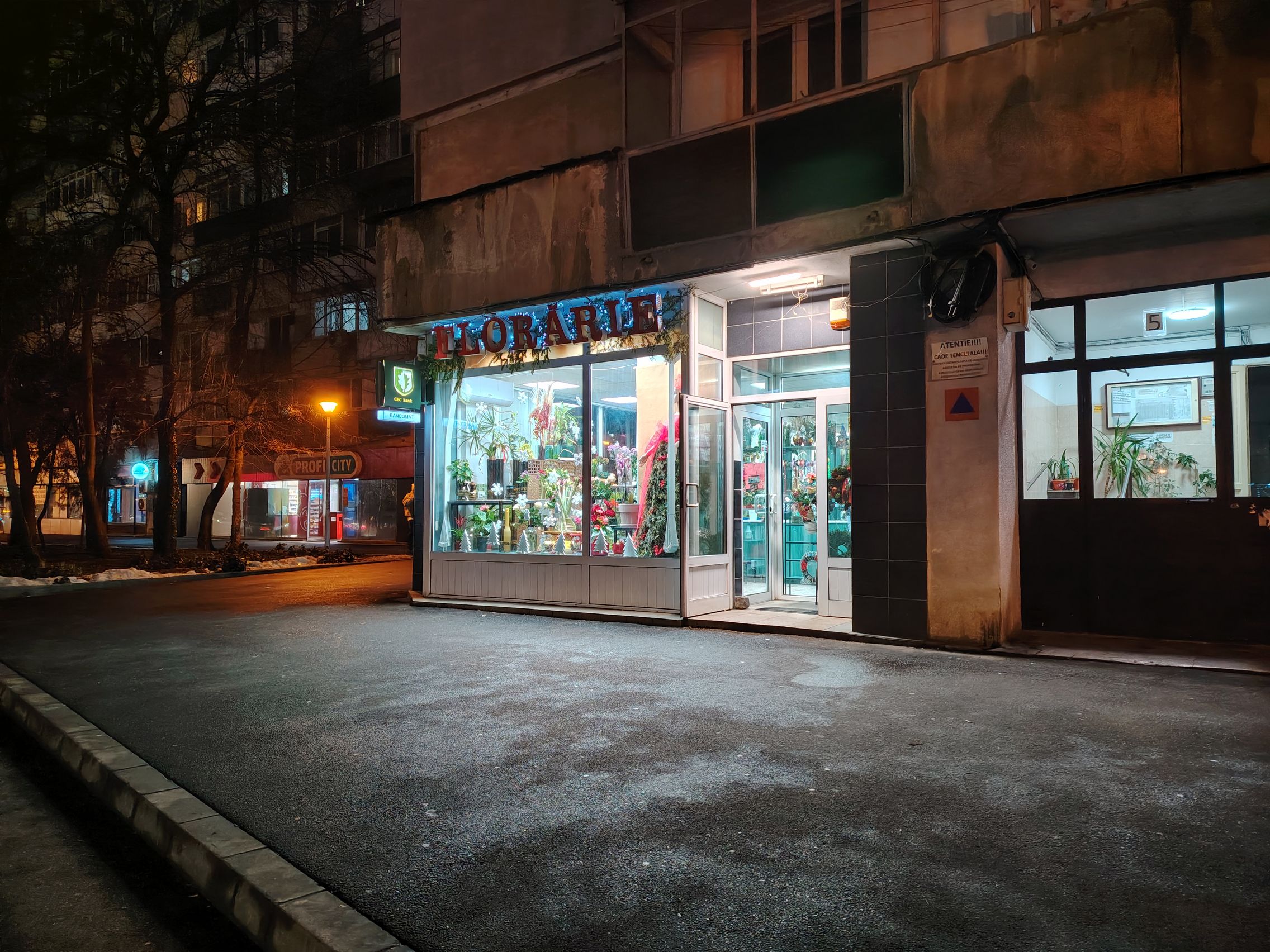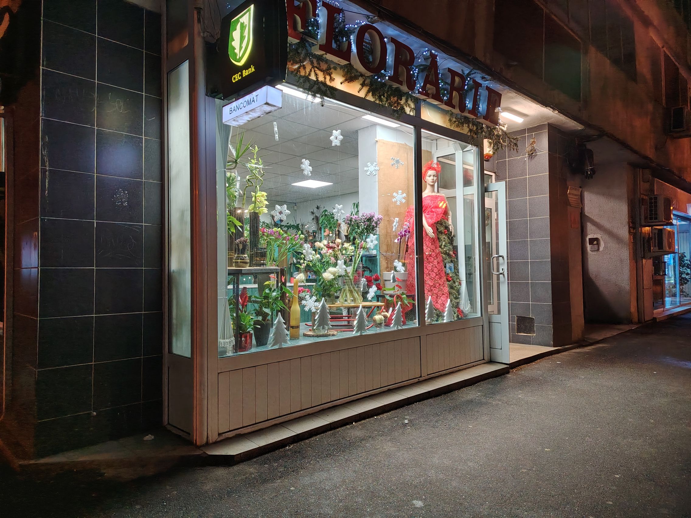 Ai NEVOIE de Night Mode la firmele luminoase ale magazinelor şi la intrarea la metrou, altfel va fi totul alb, prea alb şi aprins. La "Constantin Brâncuşi" nici nu se vede scrisul clar, de exemplu. Iar iluminarea stradală e roşiatică sau portocalie uneori. Zoom-ul chiar şi 2X e noisy la acea florărie, dar roşul arată OK. Prefer totuşi cadrele 1X şi cu Night Mode.