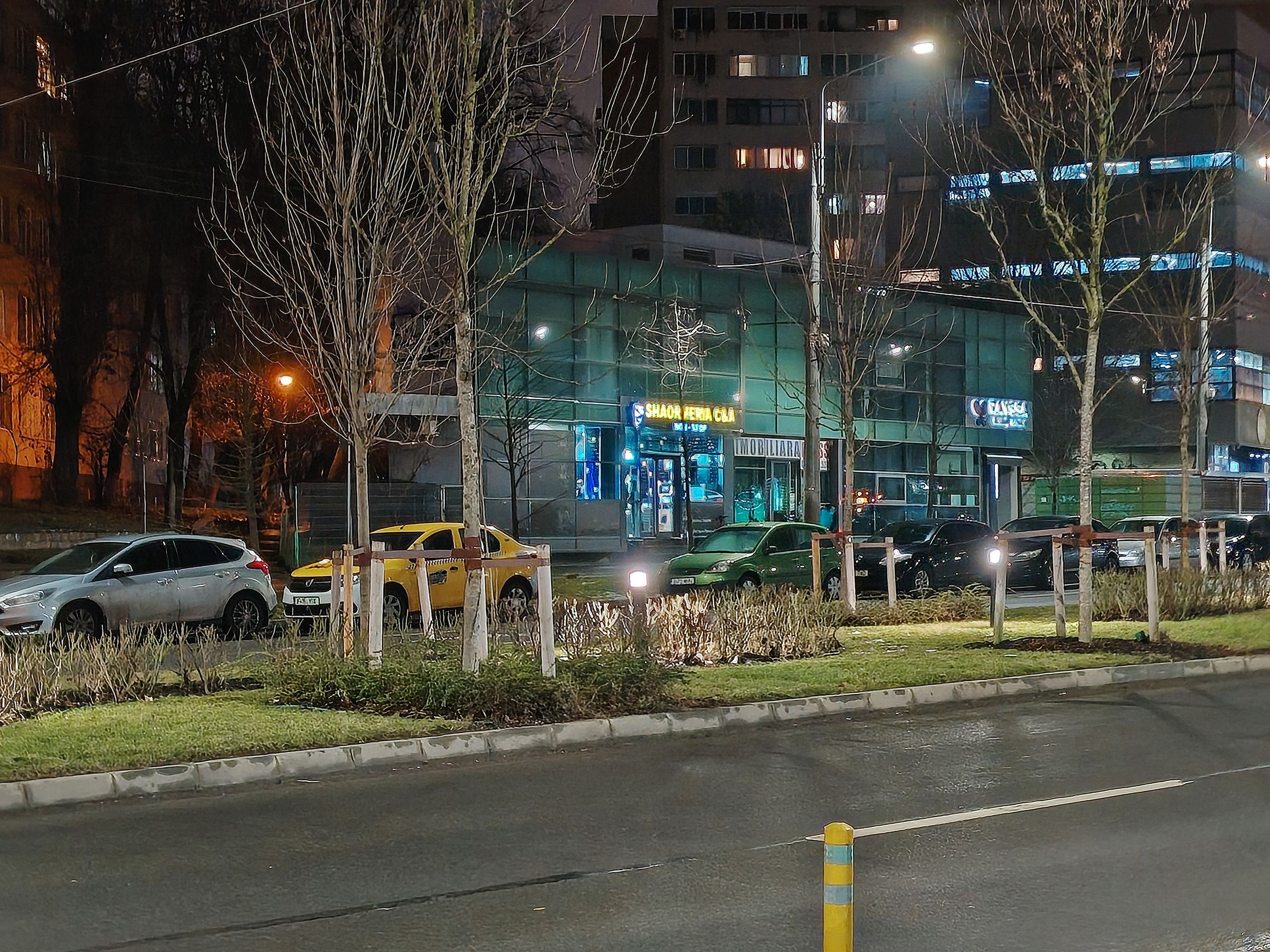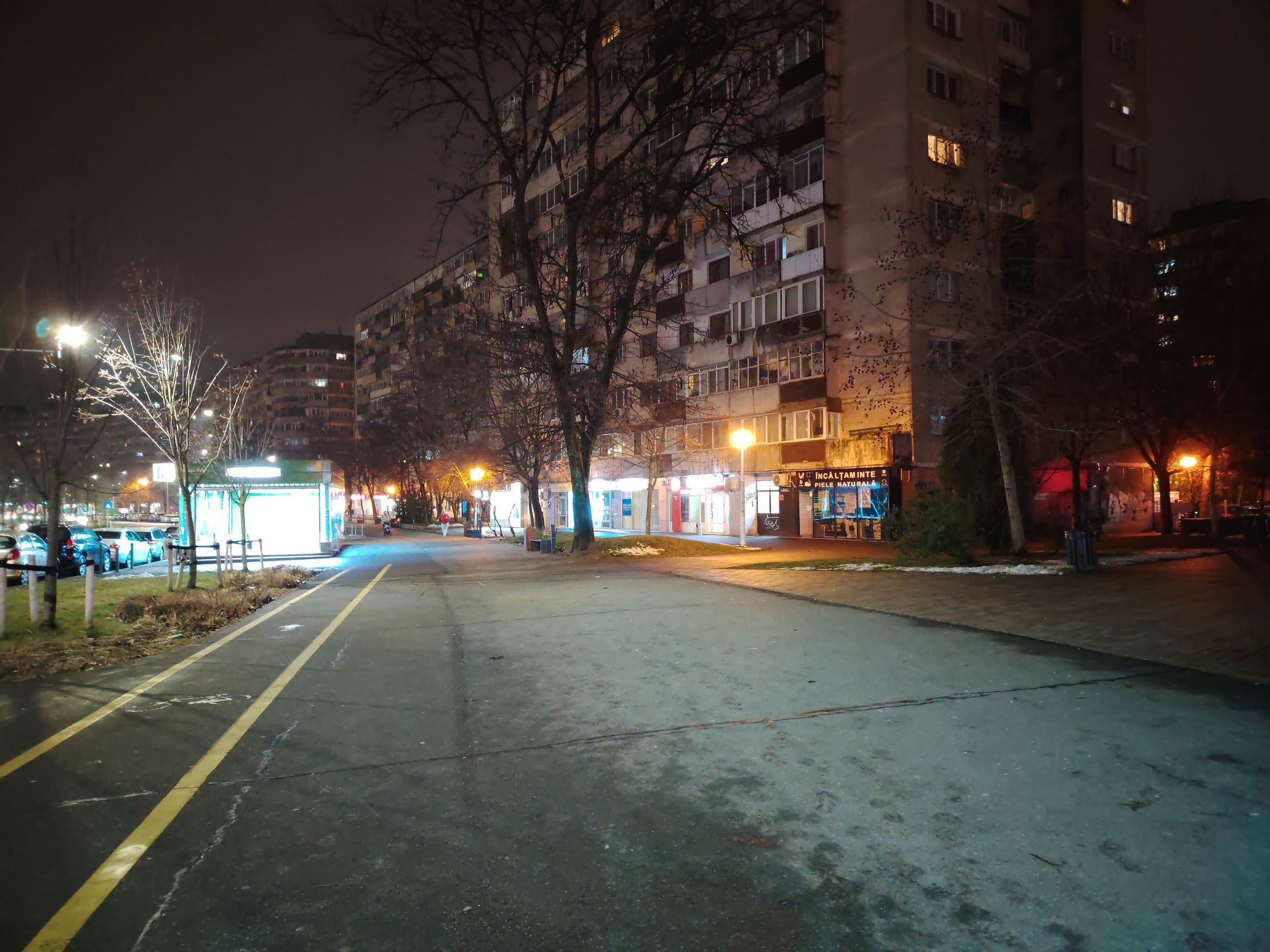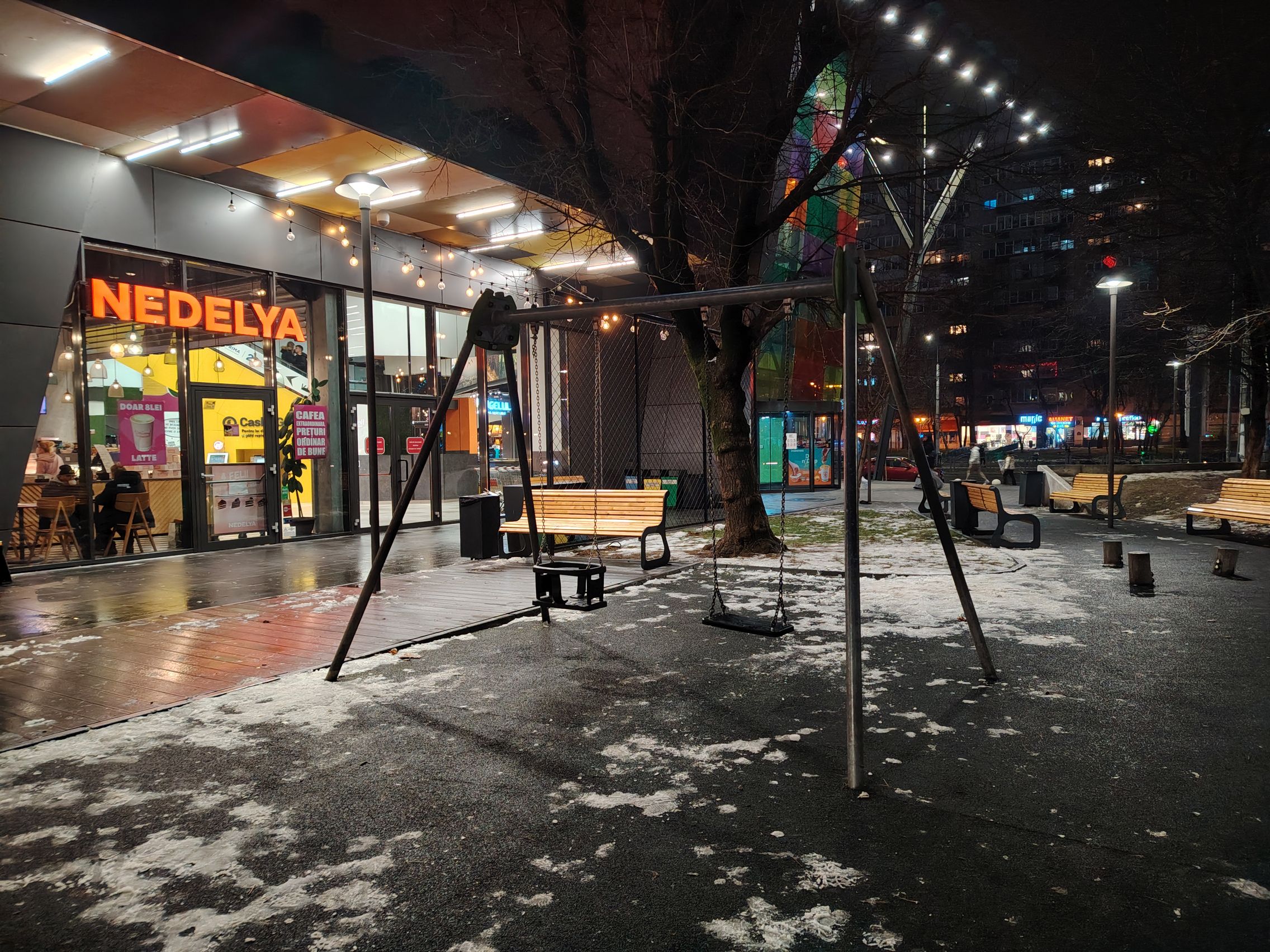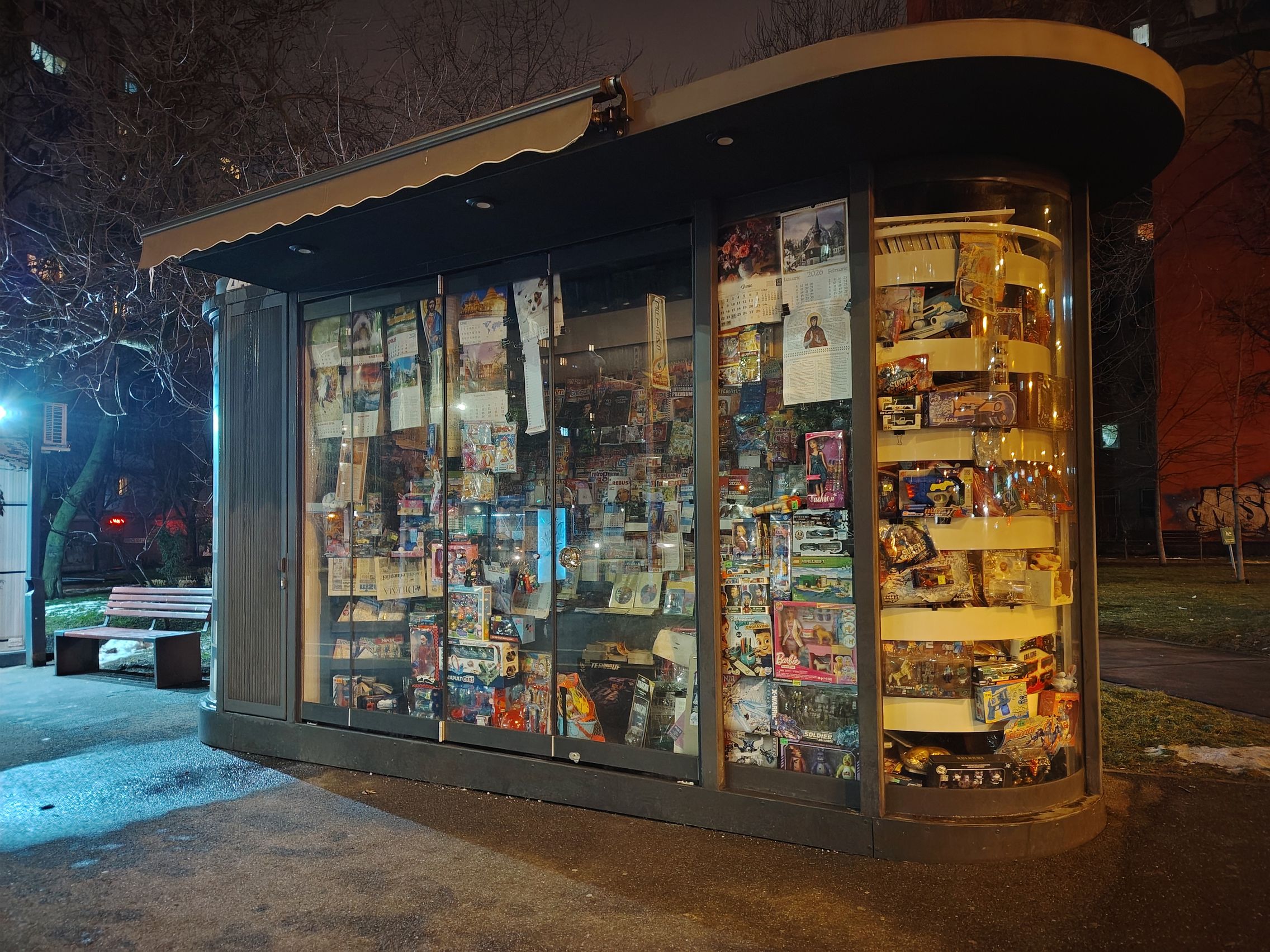 Multe, multe probleme cu sursele de lumină în cadrul cu ambulanţa, pot doar să sper că era ultrawide... deşi ştiu că nu era. Focalizarea de aproape, pe creanga de brăduţ e reuşită, ca şi ziua. Night Modee eficient, nu exagerează cu iluminarea şi scoate în evidenţă mai bine detaliile jucăriilor de la chioşcul de ziare.