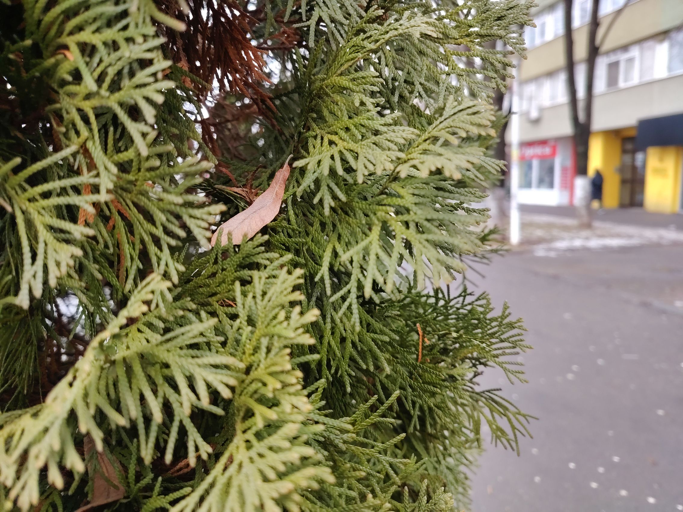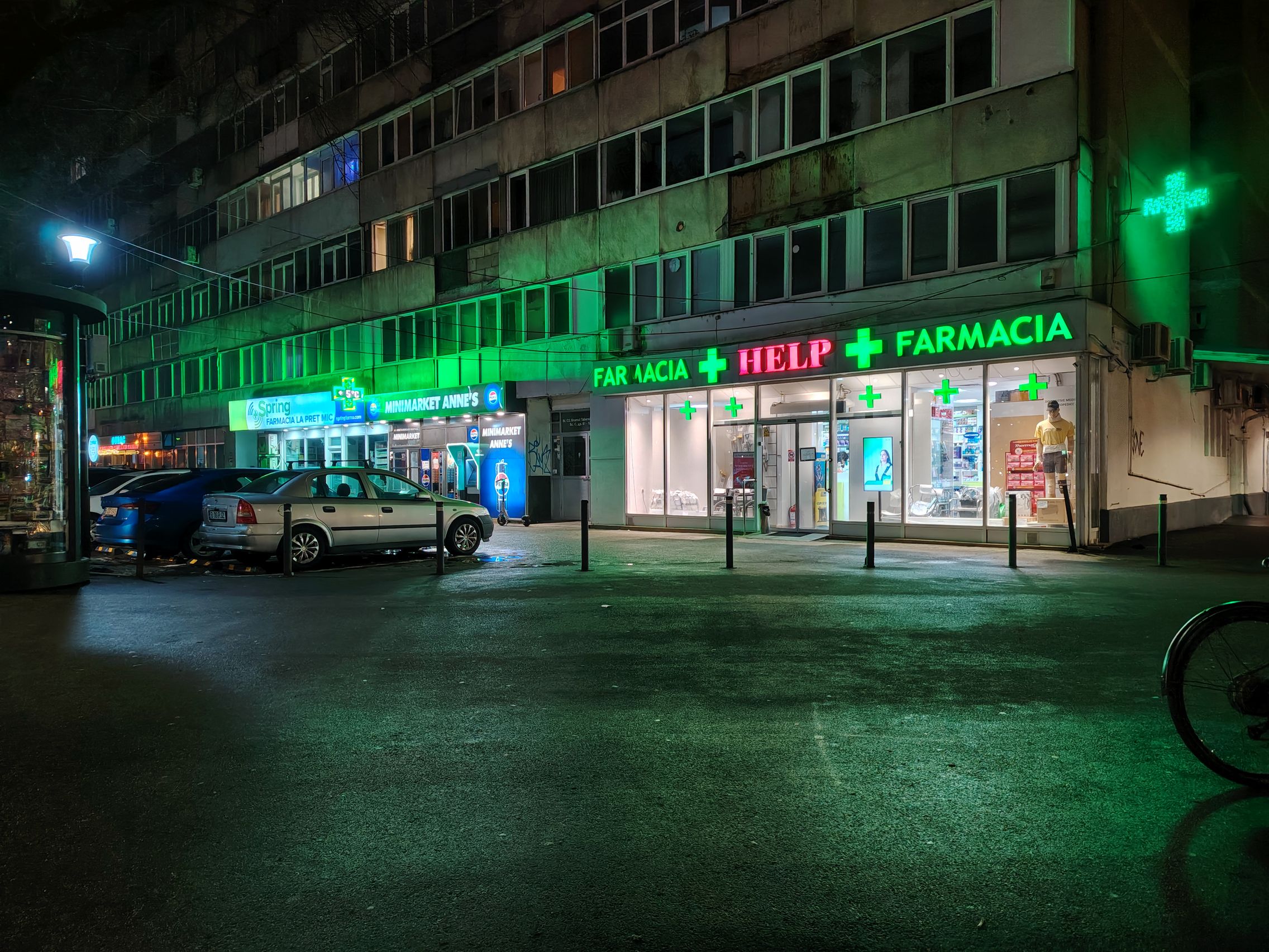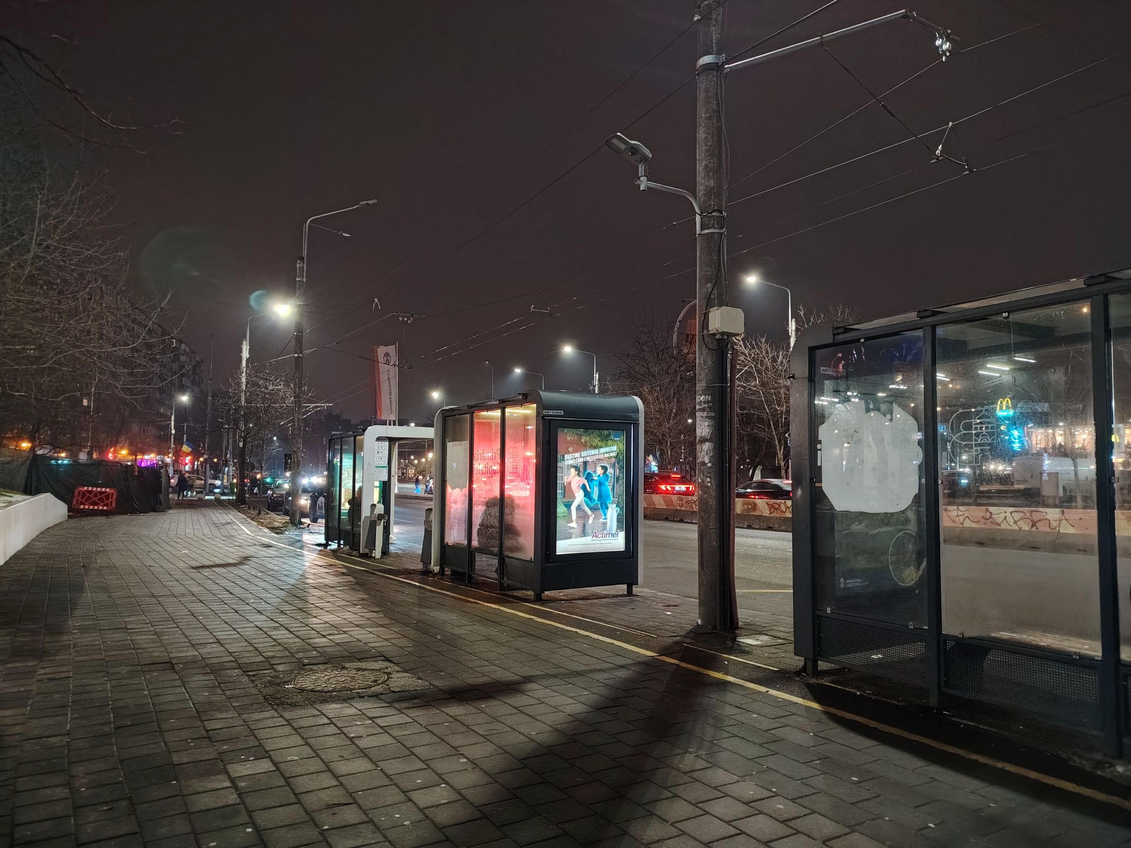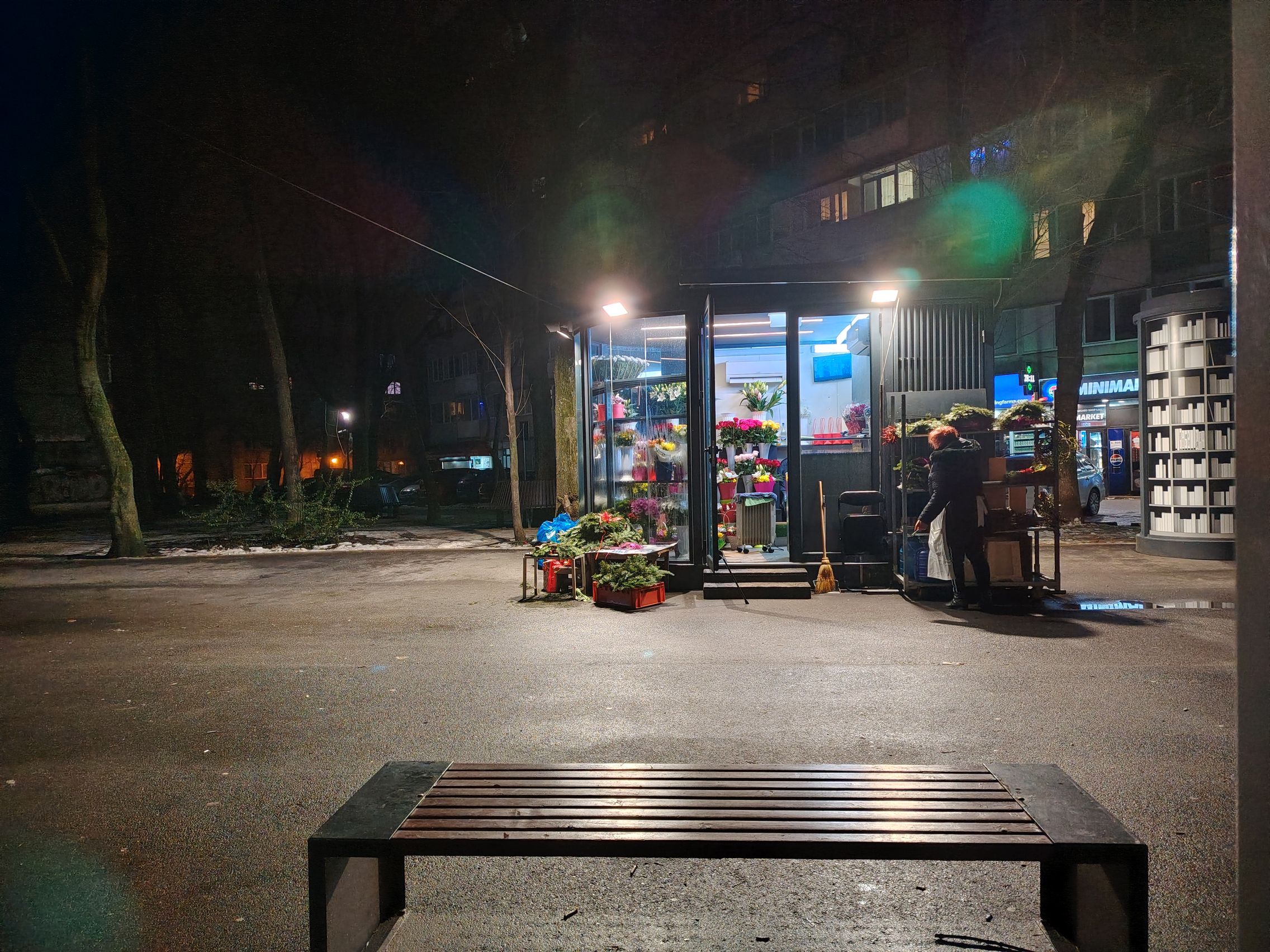 Multe, multe probleme cu sursele de lumină în cadrul cu ambulanţa, pot doar să sper că era ultrawide... deşi ştiu că nu era. Focalizarea de aproape, pe creanga de brăduţ e reuşită, ca şi ziua. Night Modee eficient, nu exagerează cu iluminarea şi scoate în evidenţă mai bine detaliile jucăriilor de la chioşcul de ziare.