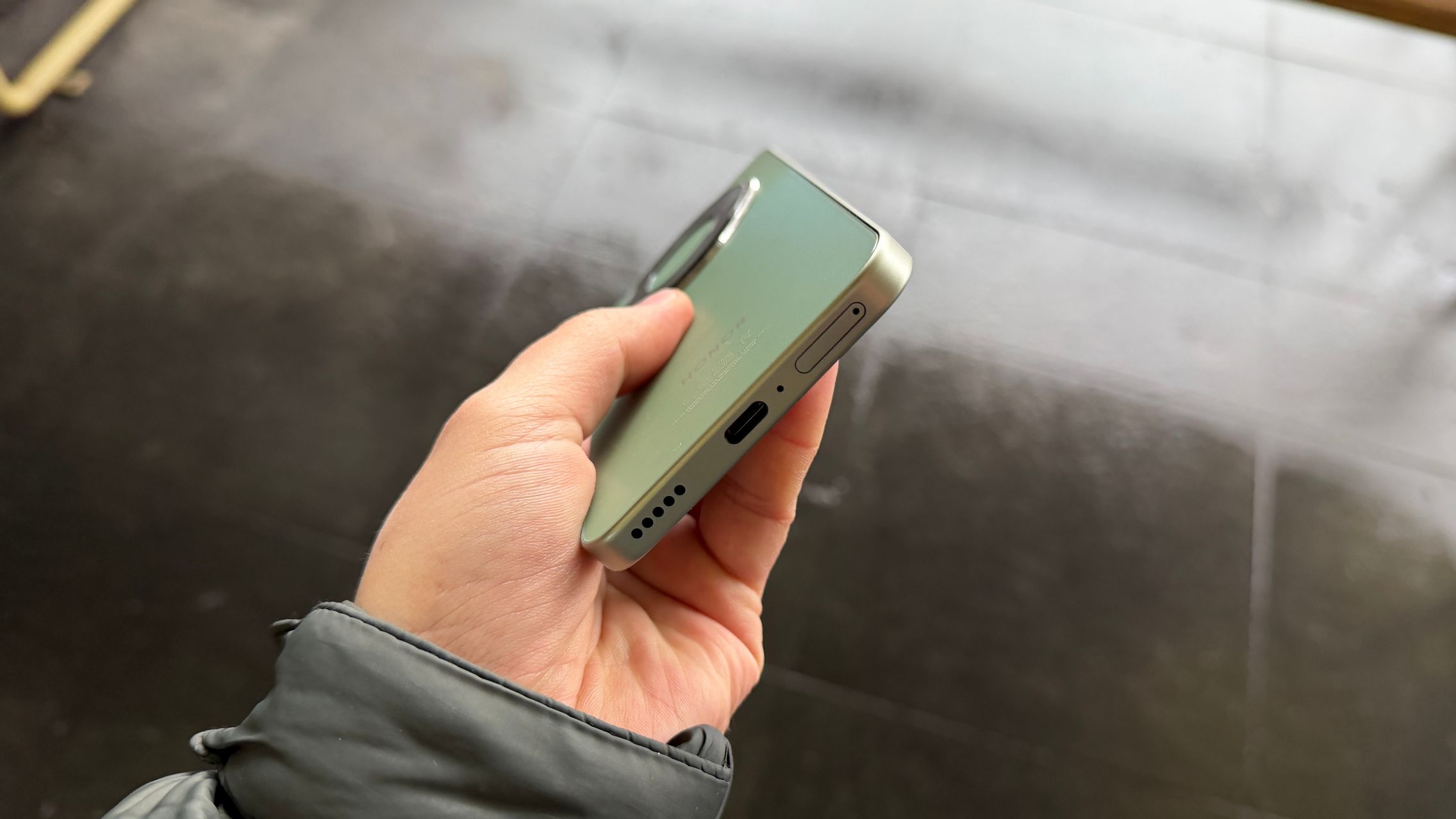 Vine pe Midnight Black, Forest Green sau Reddish Brown, iar la mine a sosit varianta verde care arată fresh, cu gândul la primăvară și natură, departe de tonurile gri de iarnă. Are 7.8 mm în grosime, în scădere de la 8 mm ai predecesorului și greutatea rămâne acolo la 189 grame. În funcție de culoare, greutatea poate ajunge și la 193 grame.