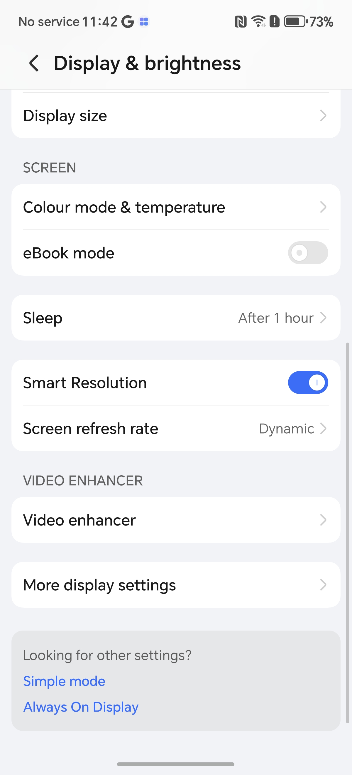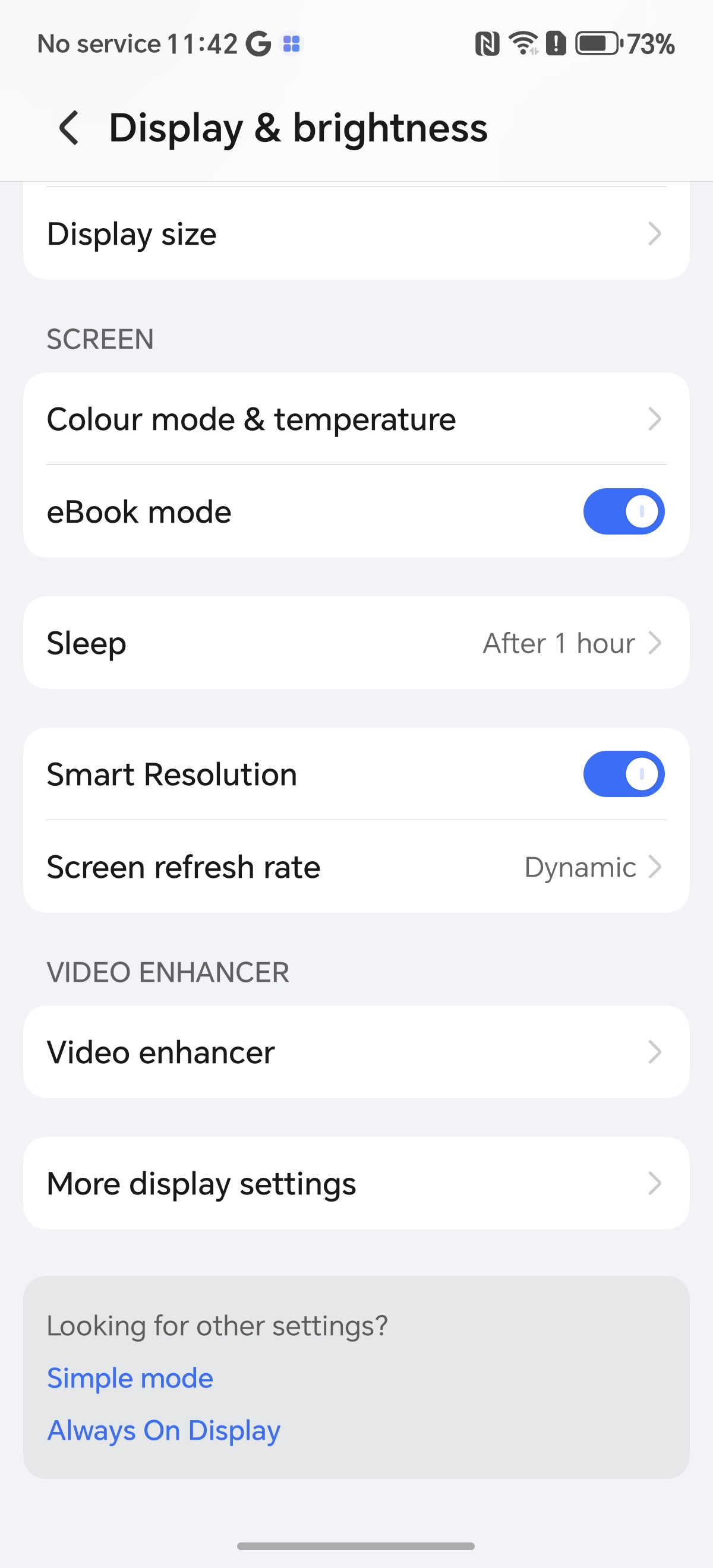 Se poate umbla și la moduri de culoare, la temperatură, avem eBook Mode și rata de refresh vine setată pe Dynamic până la 120Hz, Standard 60Hz, sau High 120Hz.