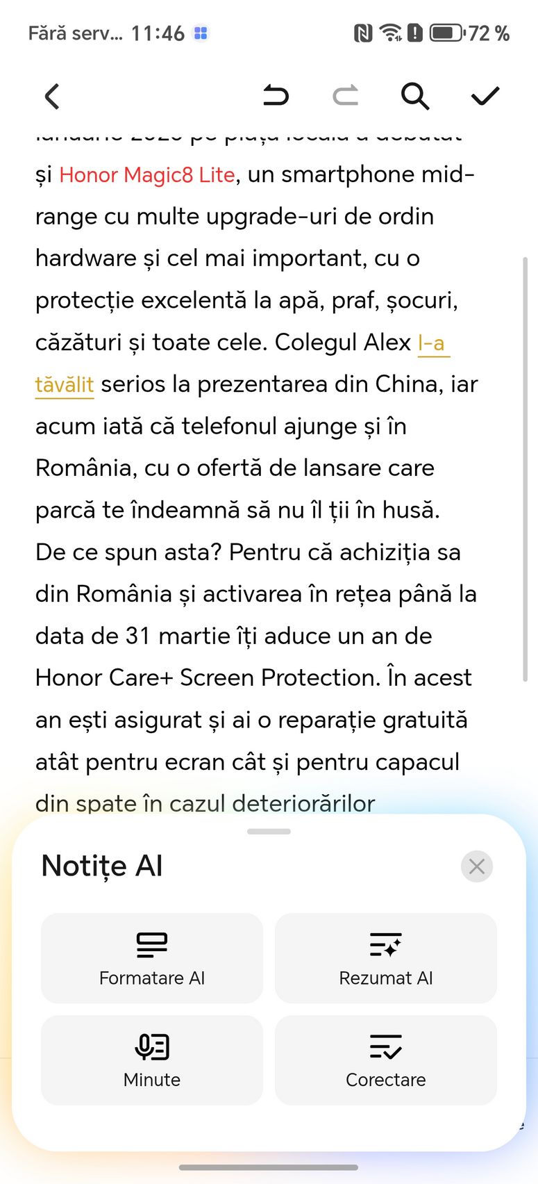 În general, telefoanele „Lite” vin cu un software cu compromisuri şi promisiuni modeste la capitolul actualizări. HONOR Magic8 Lite contrazice parțial această regulă. L-am folosit câteva zile, ca telefon principal și ce m-a surprins e modul în care MagicOS 9 reușește să fie diferit fără să incomodeze. Este în continuare un Android 15 recognoscibil, dar cu un strat de funcții inteligente care chiar ajută. Păcat că nu avem totuşi Android 16 la bord, acum ca Android 17 deja e gata să vină...